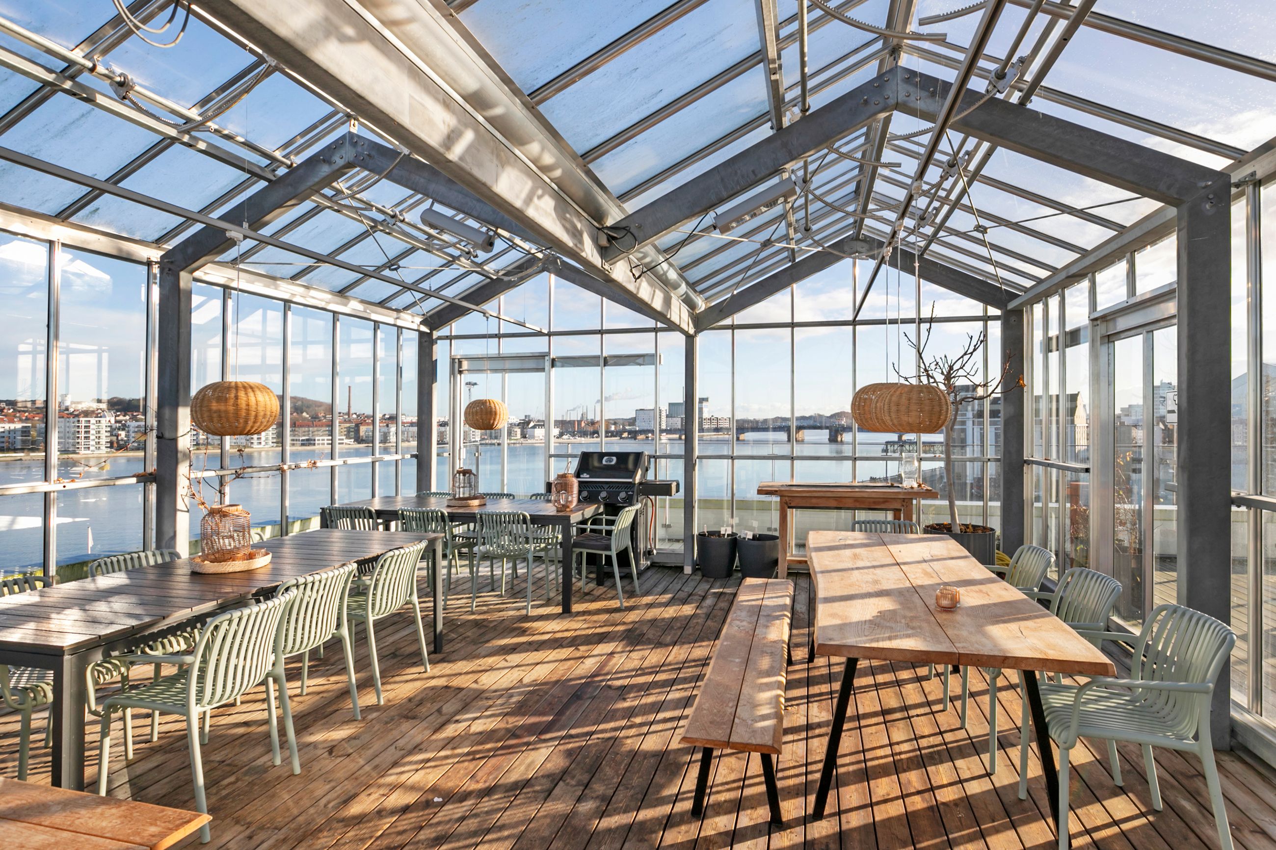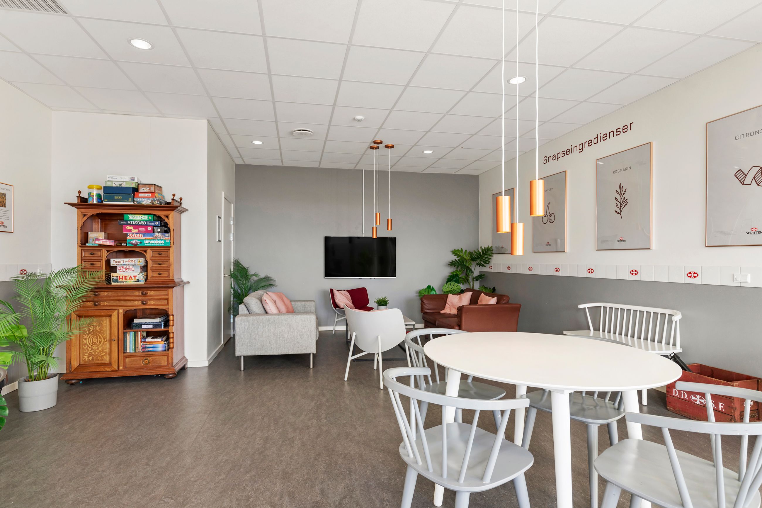 Her får du adgang til en fantastisk tagterrasse med orangeri og loungemiljøer, et fælles værksted, et lokale i stueetagen hvor der bl.a. dyrkes tai chi, samt en hyggelig fællesstue, perfekt til arbejde eller uformelle møder. I stueetagen finder du også North Urban Art Studio, som tilfører et kreativt og unikt miljø til ejendommen med kunst, keramik og skiftende udstillinger og ikke mindst en hyggelig og intim cafe.