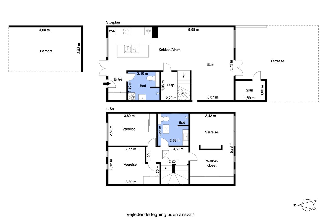 Indenfor møder I en moderne bolig med gennemført planløsning, gulvvarme overalt og genvex for optimalt indeklima.Entréen byder velkommen med god plads, og herfra går turen videre til et lyst badeværelse med bruseniche og vaskefaciliteter.