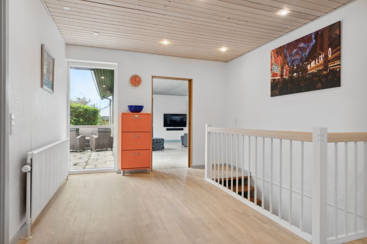 Dejlig villa med fjordudsigt. Her kan du stå i køkkenet eller sidde på den store vestvendte terrasse og nyde udsigten til Randers fjord! Villaen er beliggende i naturskønne Assentoft. På rolig villavej og med nem adgang til Assentoftskolen, idrætsanlæg, indkøb i SuperBrugsen og gåture i den skønne natur. Skal i pendle er der meget hurtig og nem adgang til E45. Her er 198 m2 bolig. Fordelt med 157 m2 i stueplan + 91 m2 kælder/underetage, hvoraf 41 m2 er registreret beboelse. Villaen er løbende moderniseret med bl.a. udskiftning af vinduer, modernisering af 2 badeværelser, nyere lækkert køkken, helt nye tagrender, m.v. Velkommen indenfor i en stor flot hall, pænt badeværelse, lækkert nyere køkken/alrum med udgang til stor nyere vestvendt terrasse med udsigt til Randers fjord, dejlig lys og rummelig stue med brændeovn. Fra stuen er der udgang til stor sydvendt terrasse og hyggelig lukket have. Værelsesafdeling med 3 værelser og soveværelse med adgang til walk in, samt badeværelse nr. 2.Underetagen indeholder en stor gang, gæstetoilet, bryggers samt en rigtig fin gildesal/stort værelse med mange anvendelsesmuligheder. Herudover carport samt en rigtig hyggelig og lukket syd/vestvendt have. Skal i være de nye ejere af denne skønne villa med fjordudsigt i populære Assentoft? Ring blot 86 43 29 33 for aftale om fremvisning.