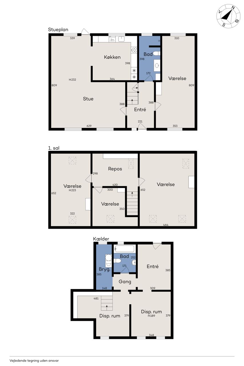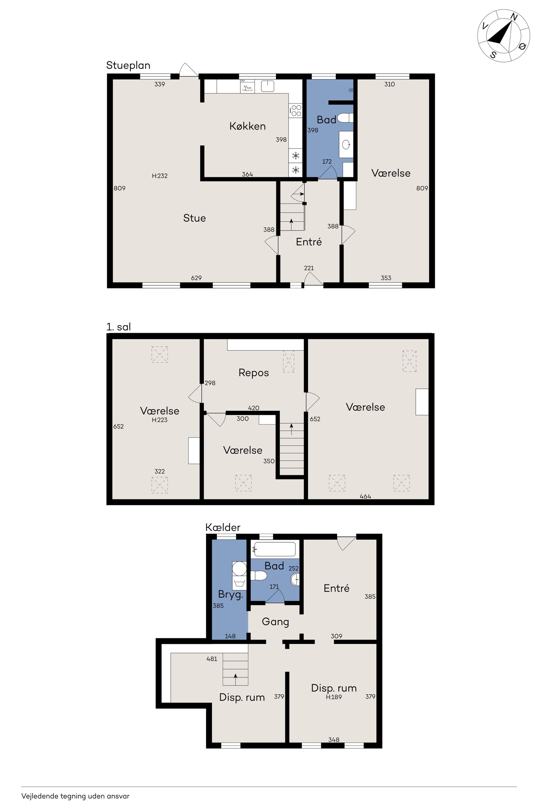 1.sal er indrettet med en lys repos, 3 værelser (2 store og lækre værelser med ovenlysvinduer samt