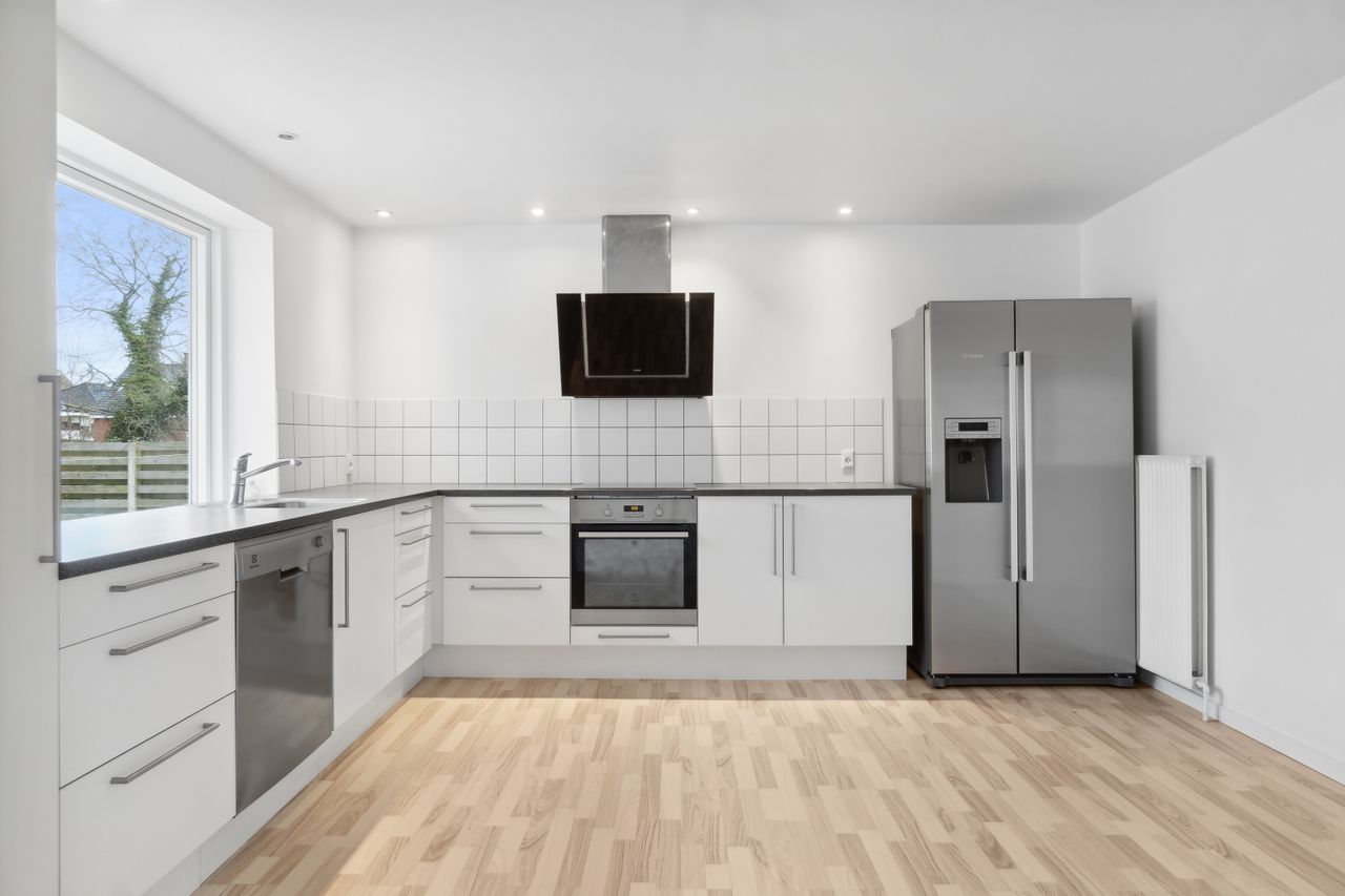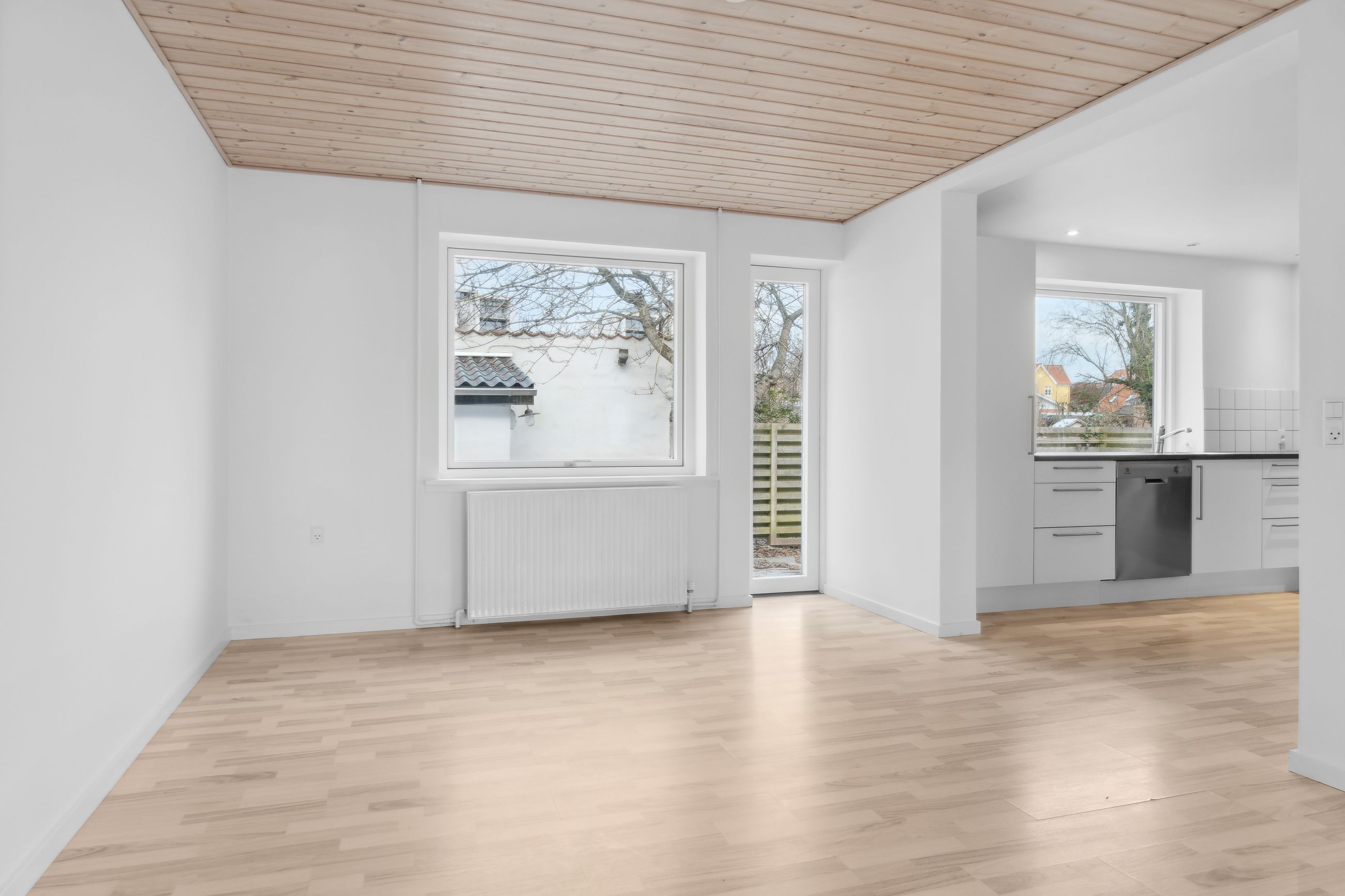 vinkelstue samt flot Svane køkken. Fra stuen er der udgang til den lukkede vestvendte gårdhave.