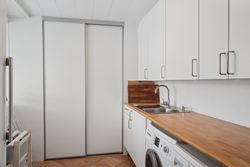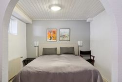 Underetagen fremstår yderst anvendelig til daglig brug og byder på flere gode disponible rum, to badeværelser, bryggers/vaskerum, gildesal samt sauna. Etagen er velindrettet med gode gangarealer og egner sig perfekt til hobbyrum, hjemmekontor, teenageafdeling eller gæsteafsnit. Her er der samtidig mulighed for at skabe en mere åben og direkte adgang til forhave/terrasse fra gildesalen ved etablering af nye, større vinduespartier eller skydedøre, hvilket kan give et markant løft i lysindfald og sammenhæng mellem inde- og uderum.