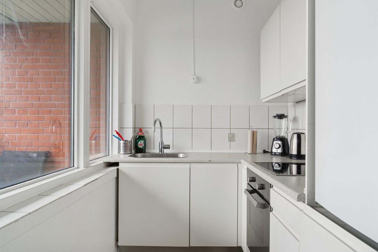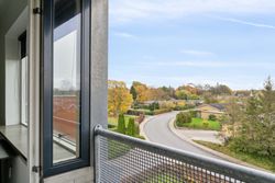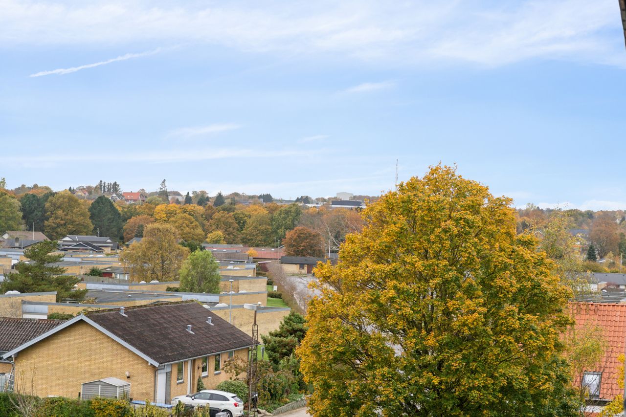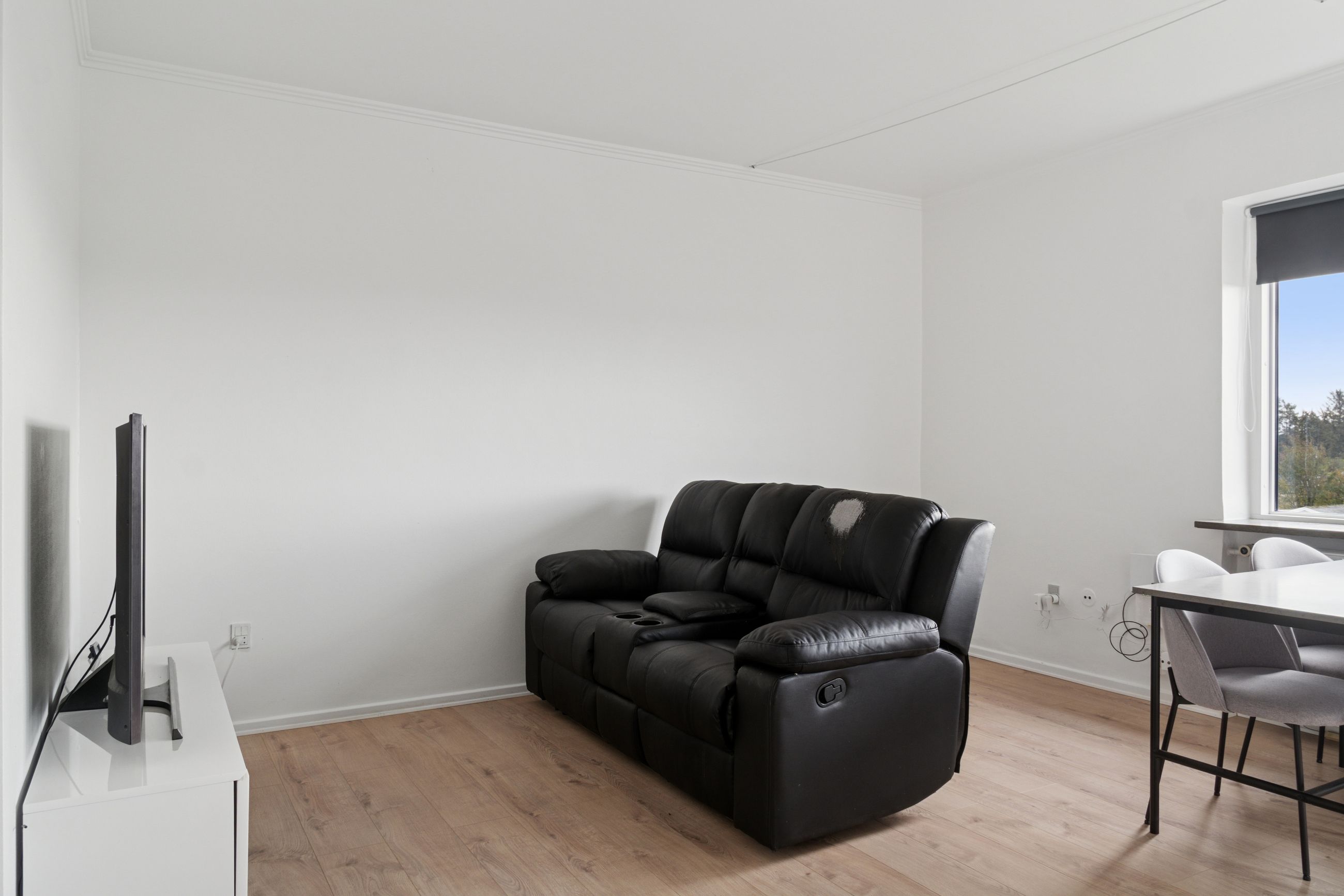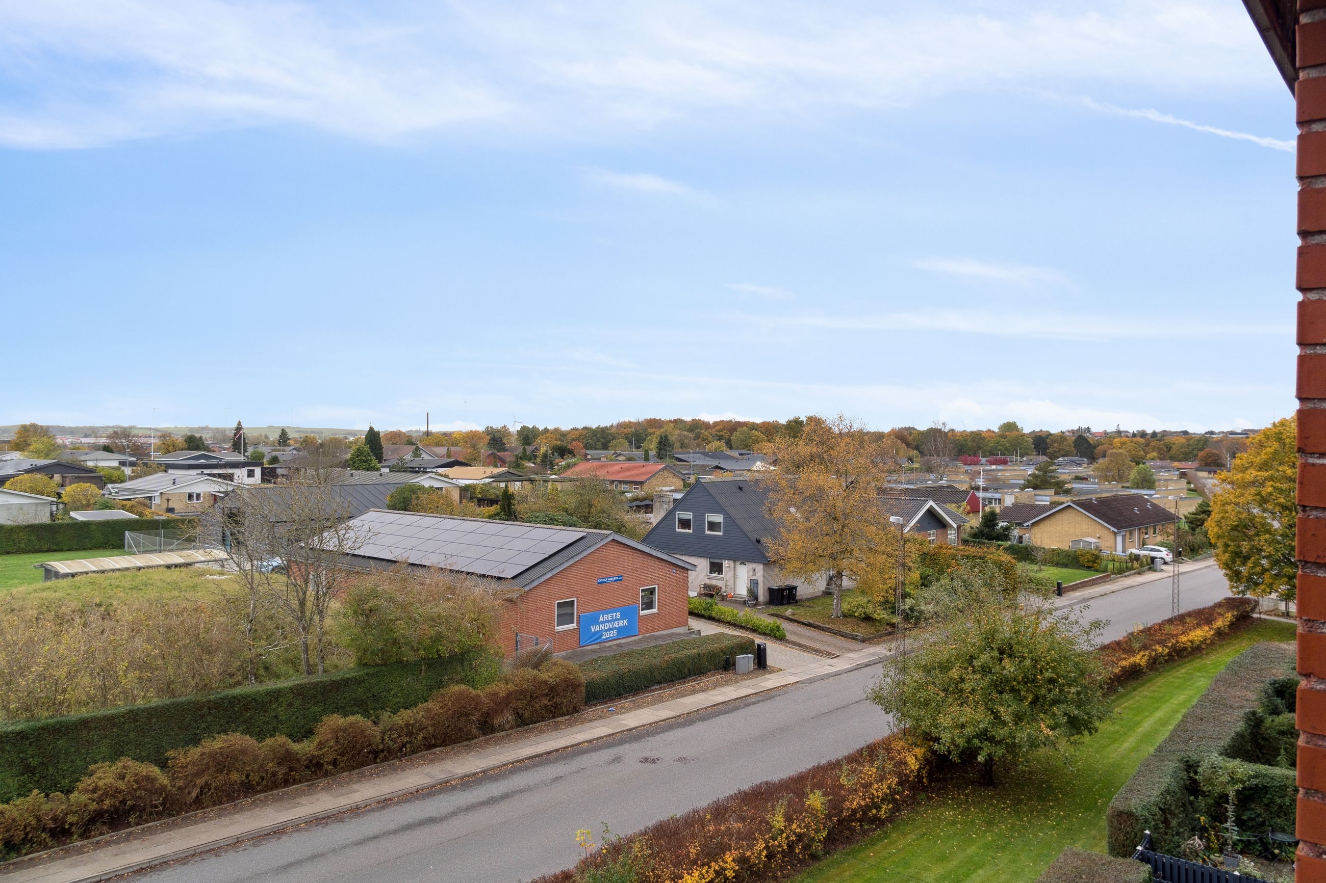 "SOLHØJ". Flot 1 1/2 vær. med udsigt, altan og elevator! BEMÆRK DE LAVE EJERUDGIFTER! Parker bilen på parkeringspladsen og tag elevatoren direkte op på øverste etage til denne flotte mindre lejlighed med altan og den skønneste udsigt. Her er bl.a. flotte nyere gulve, flot nyere køkken m.v. Lejligheden indeholder, entré, badeværelse med bruser, dejlig lys stue med den skønneste udsigt og udgang til den fine altan samt alkove med plads til sengen. Lejligheden har brugsret til gode fællesfaciliteter med fælles vaskeri, cykelrum, kælderrum m.v.