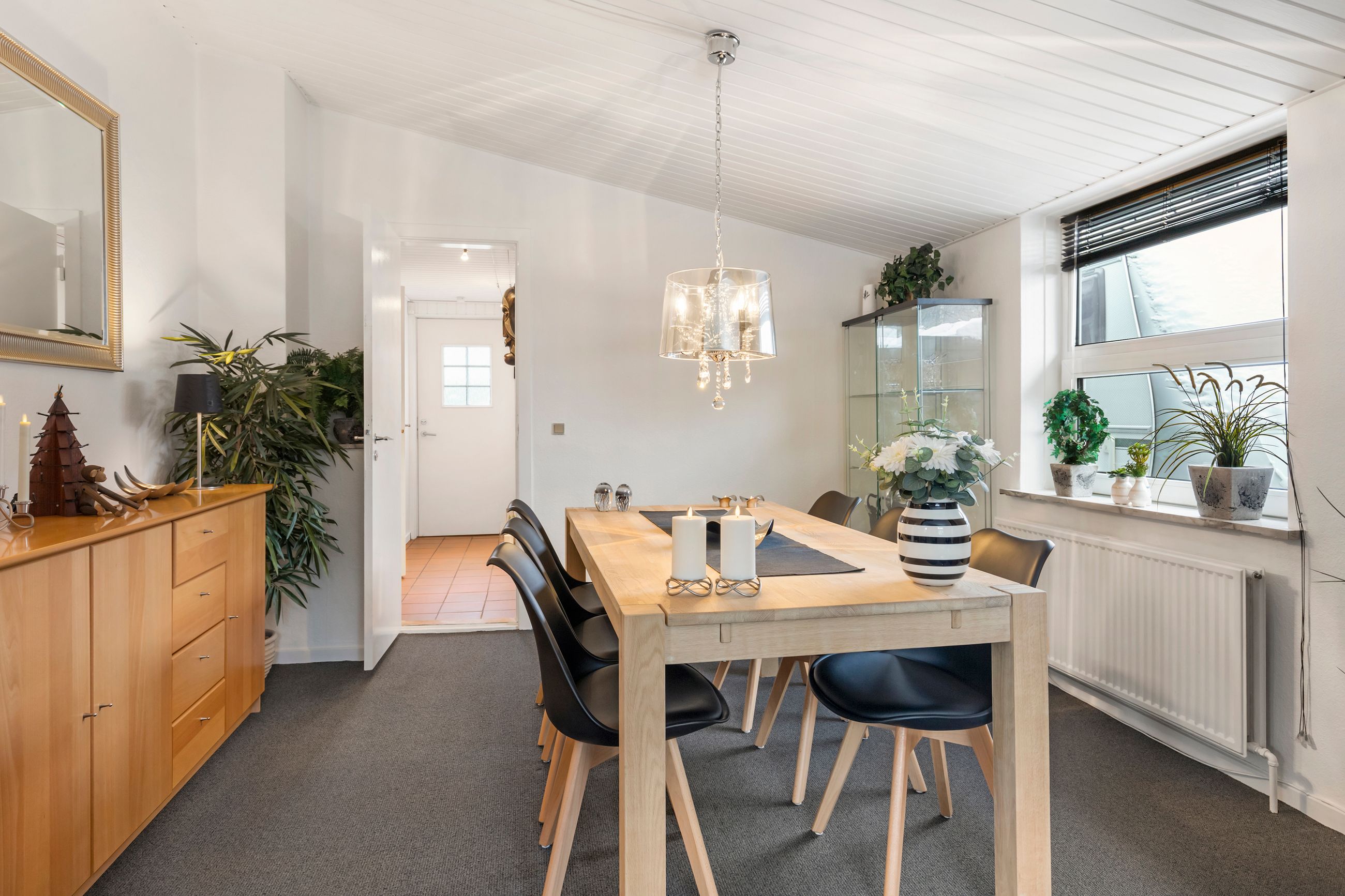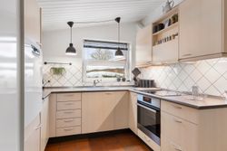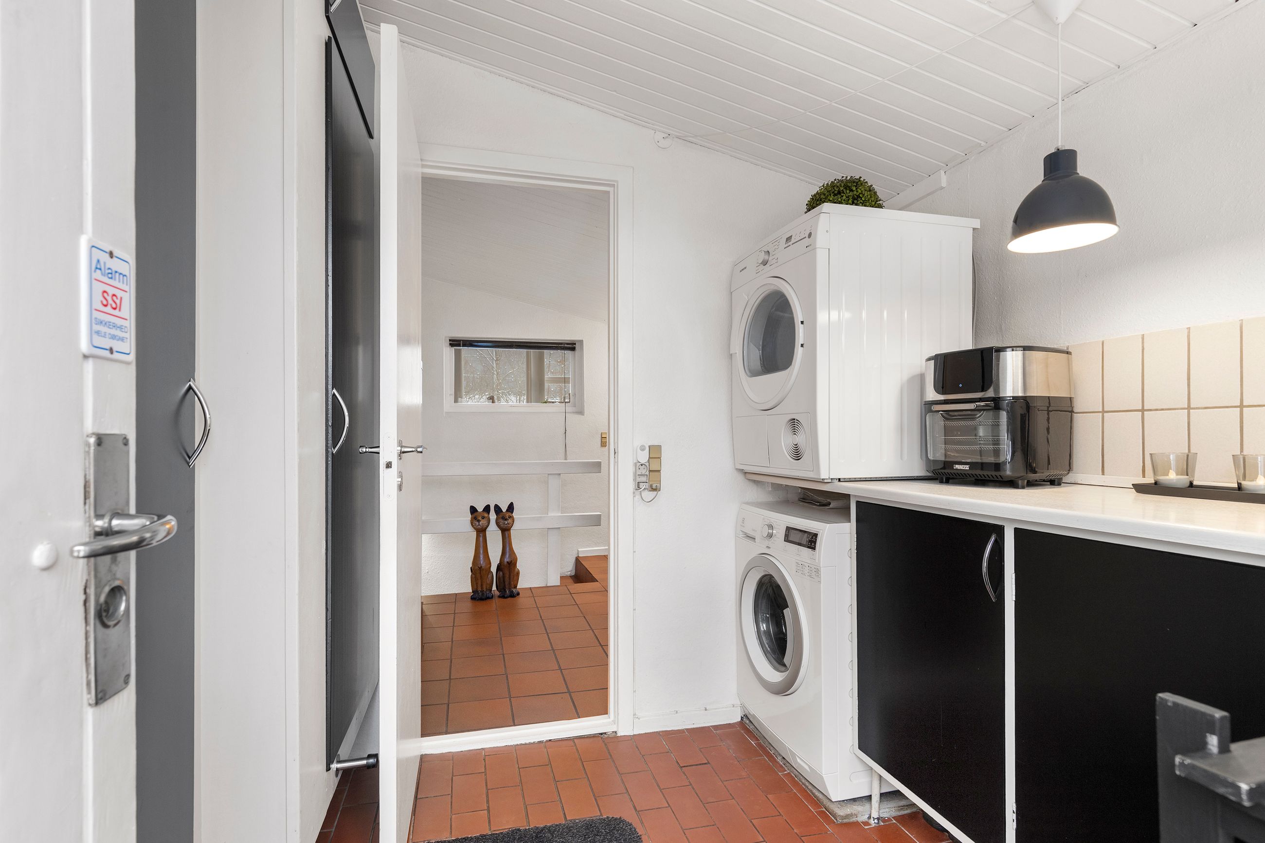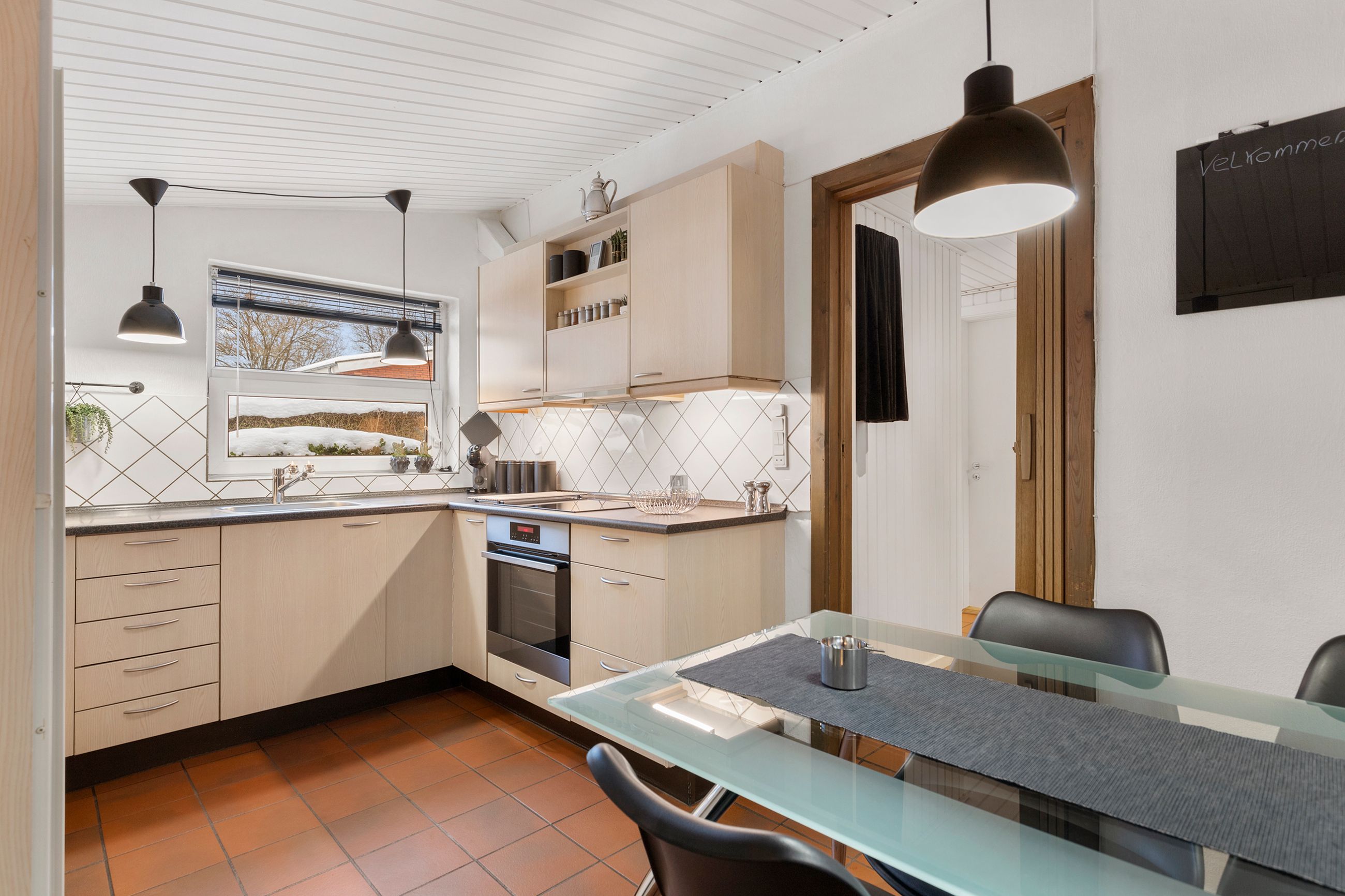 Køkkenet ligger centralt i boligen og har en funktionel indretning med god bord- og skabsplads samt mulighed for en god spiseplads – perfekt til hverdagens måltider. Der er desuden et praktisk bryggers på etagen.