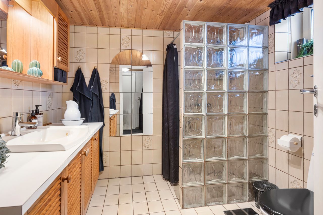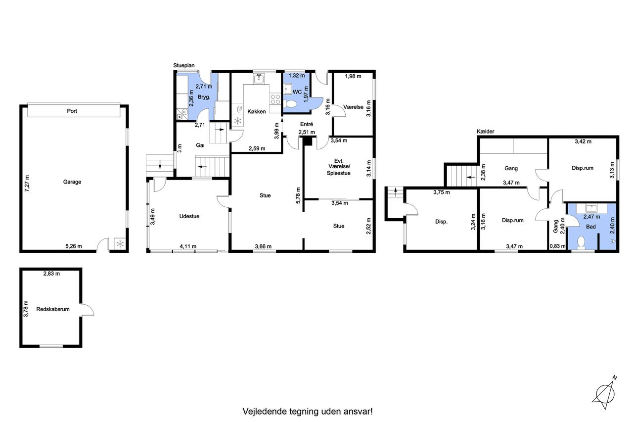 Boligens underetage byder på flere gode disponible rum, der giver masser af ekstra plads. Her er fine muligheder for at indrette hobbyrum, hjemmefitness, kontor, opbevaring eller viktualierum. Underetagen rummer desuden et stort badeværelse med gulvvarme samt en fordelingsgang perfekt til store skabe med opbevaring.