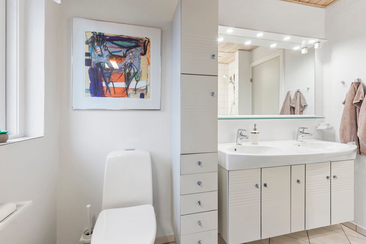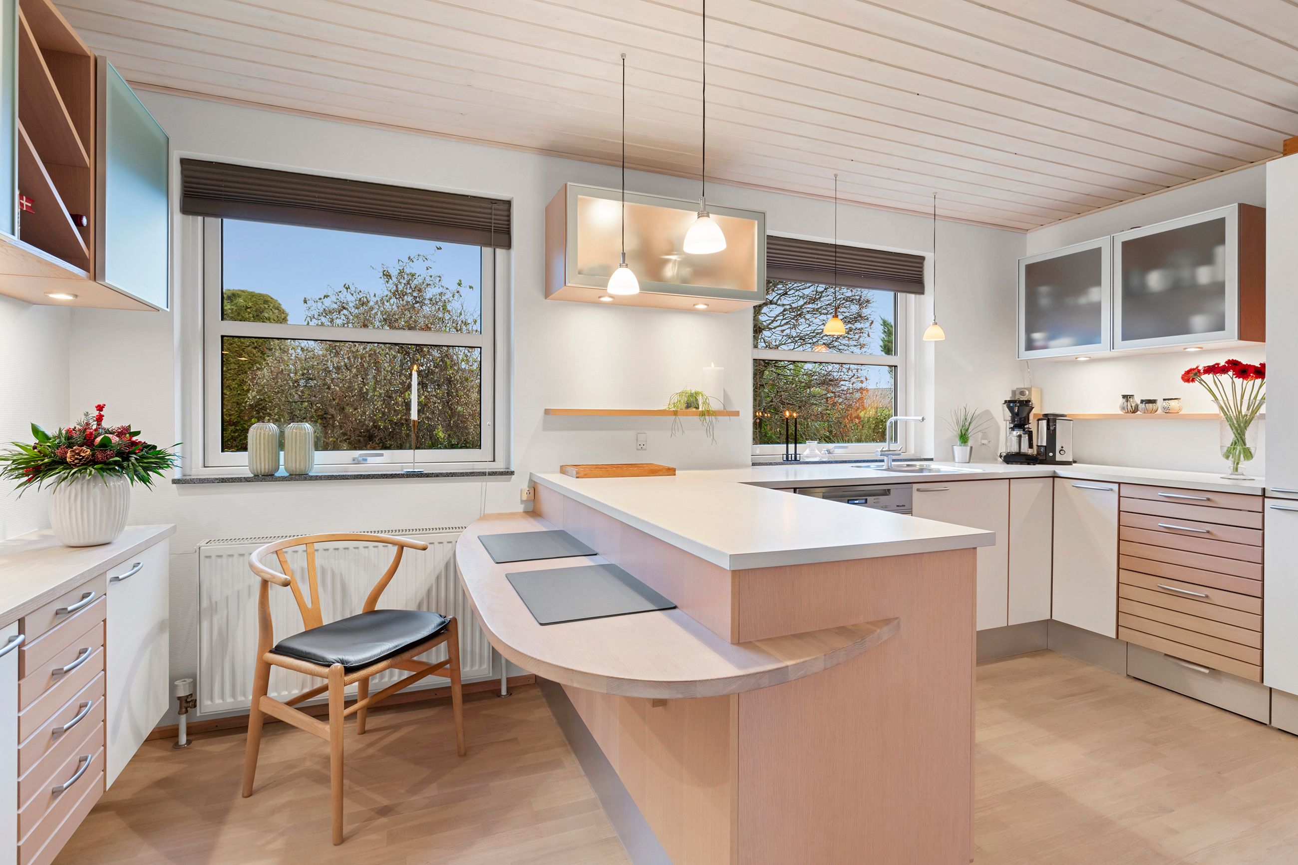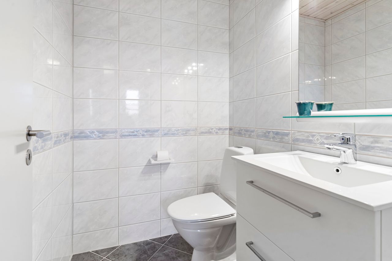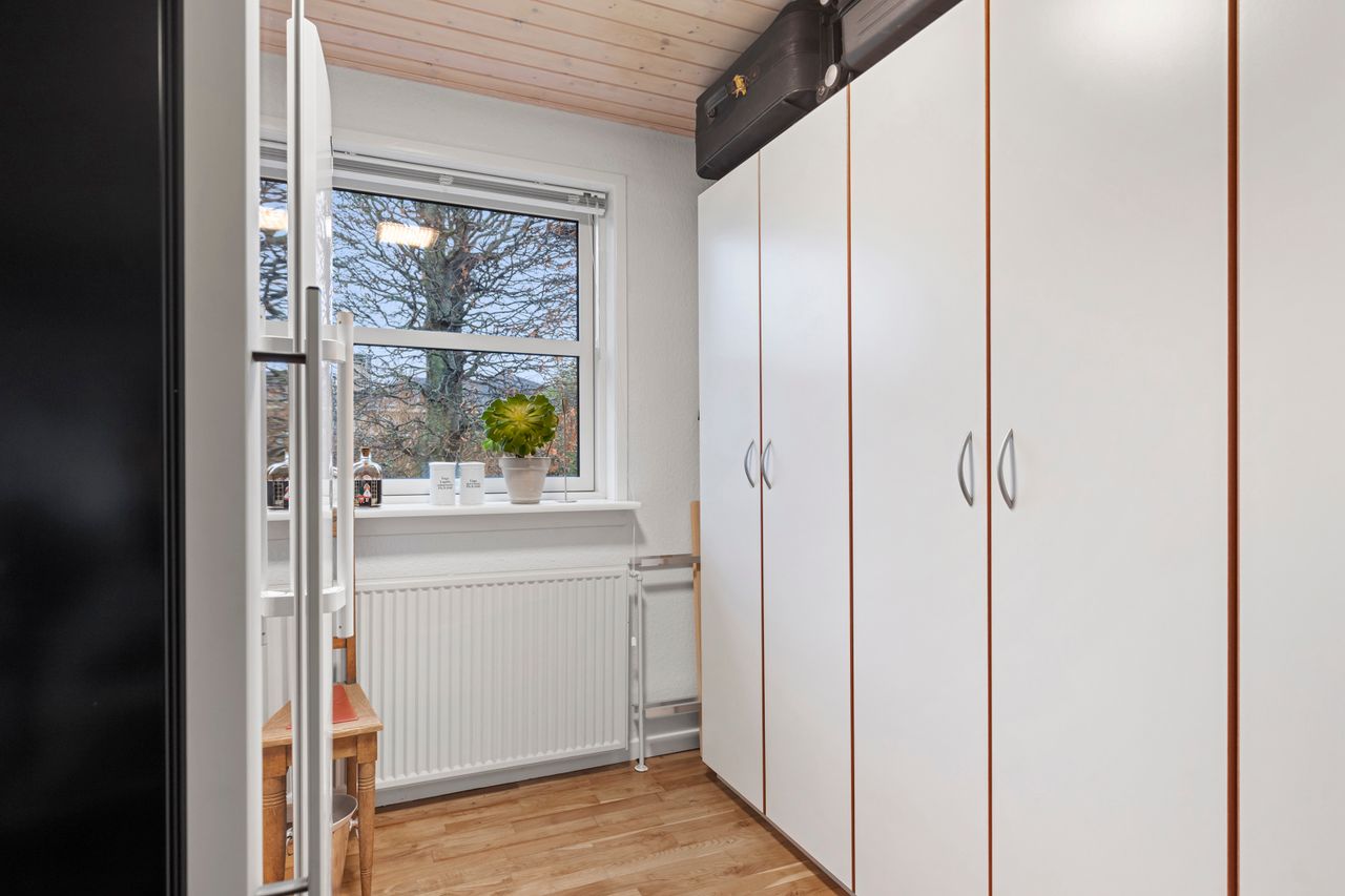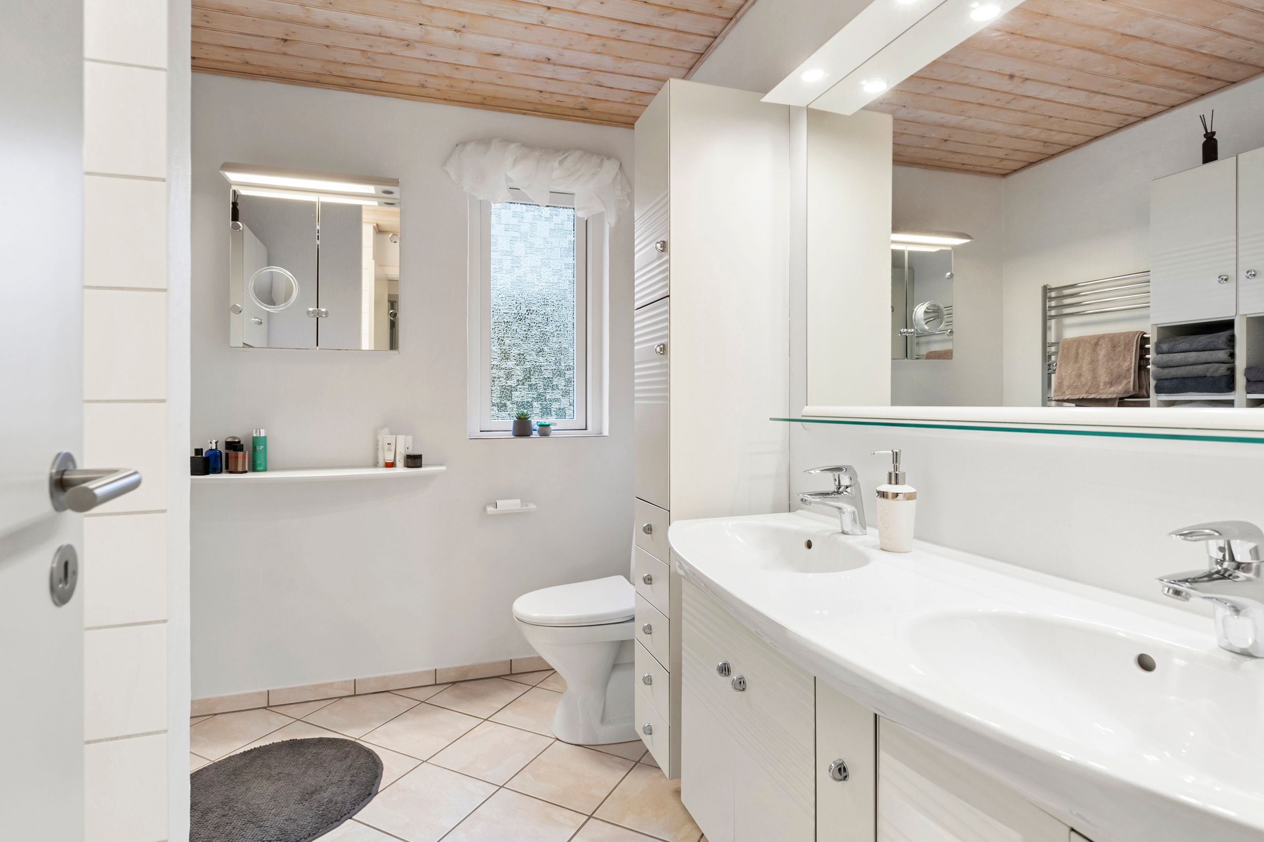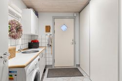 I bryggerset har du fint med skabs- og bordplads, vaskemaskine samt udgang til haven. I den anden ende af huset er det fjerde værelse, samt et flot gæstetoilet i forbindelse med gæsteentréen.