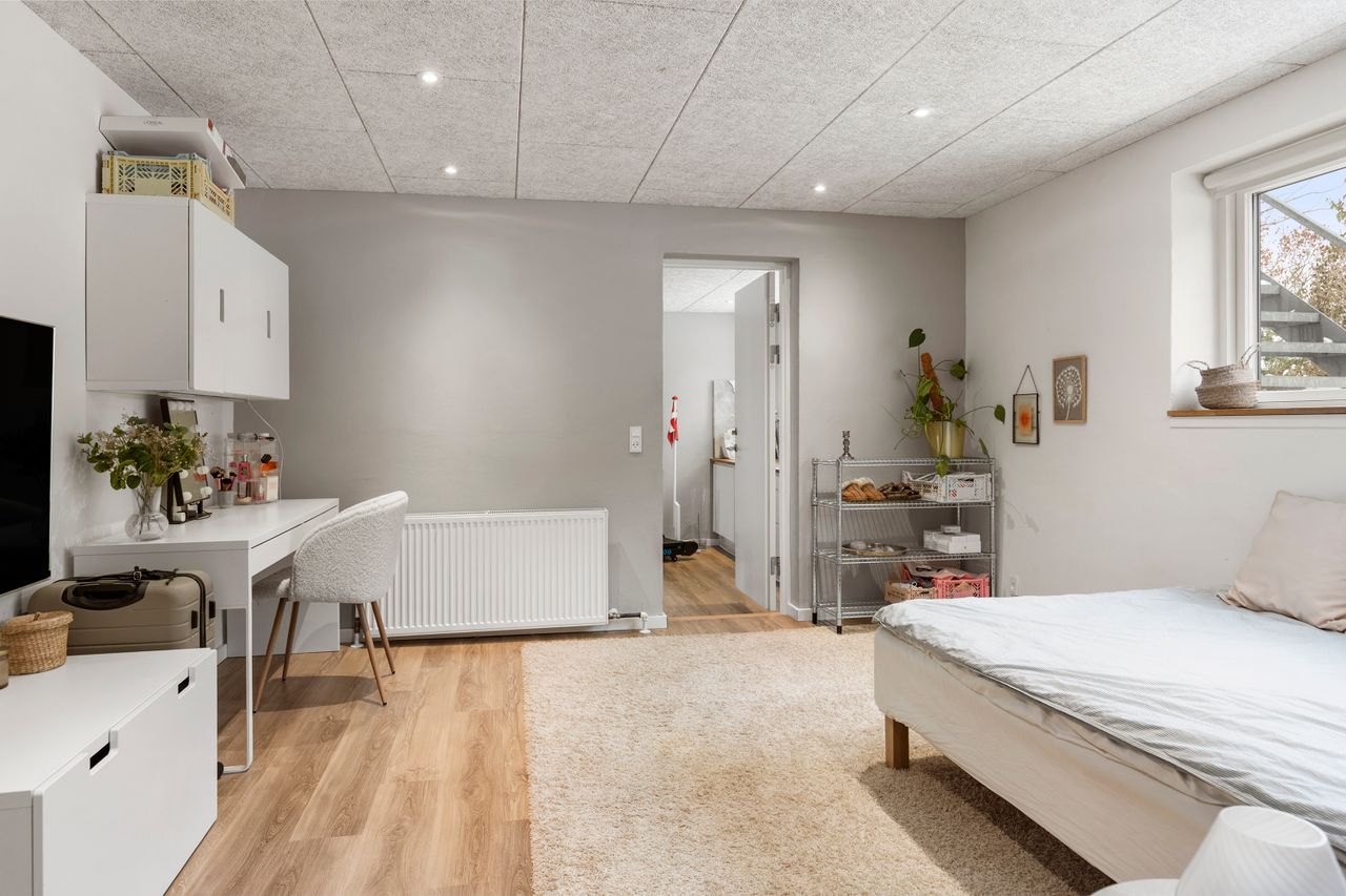 Kælderen på 63 kvm giver masser af anvendelsesmuligheder, hvad enten I drømmer om værelser, kontor, opbevaring eller hobbyaktiviteter. Det separate multirum tilfører boligen en ekstra dimension og kan indrettes helt efter behov. Herudover får I carport og skur samt en god terrasse, hvor solen og udsigten kan nydes i rolige omgivelser.