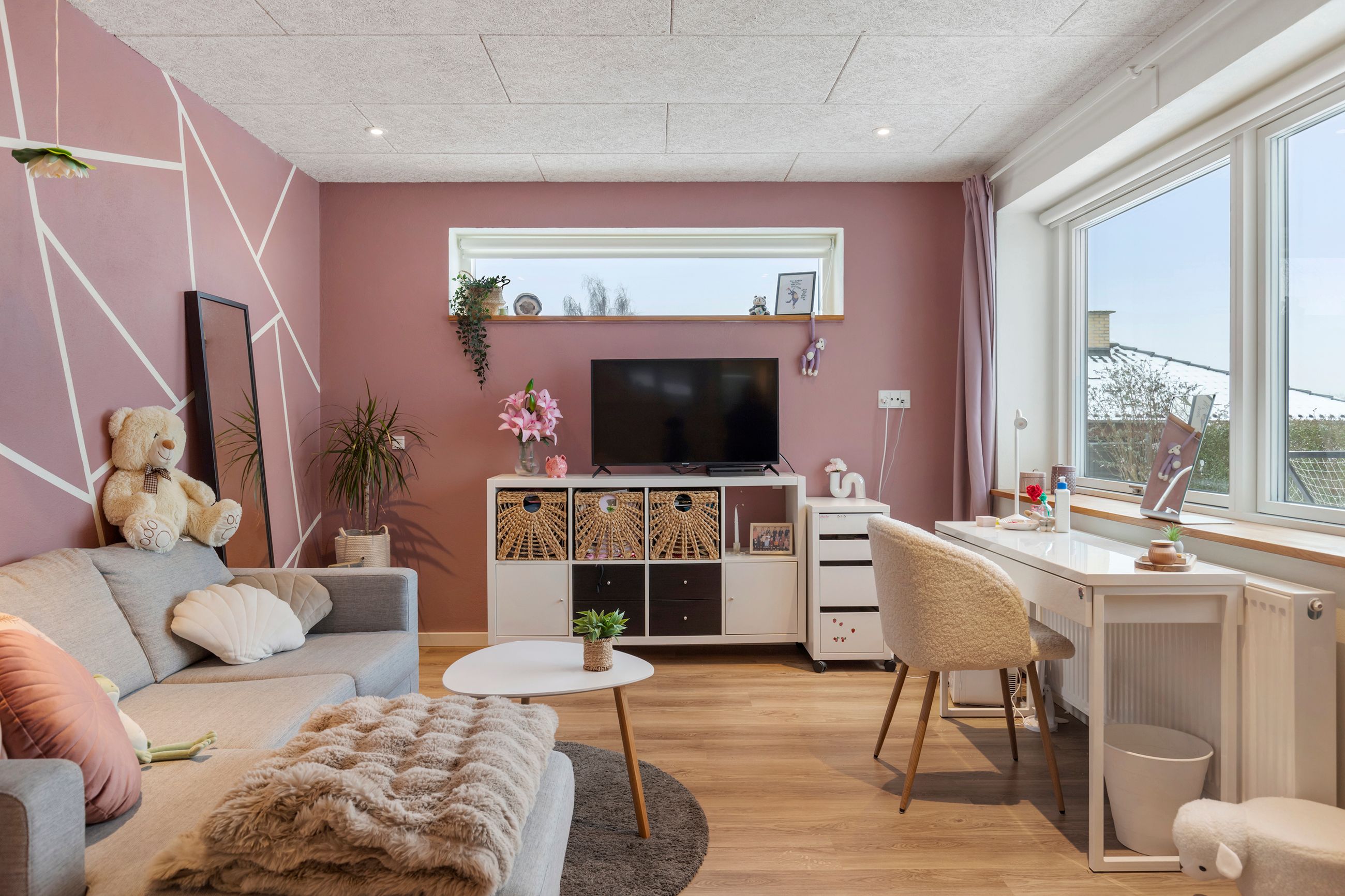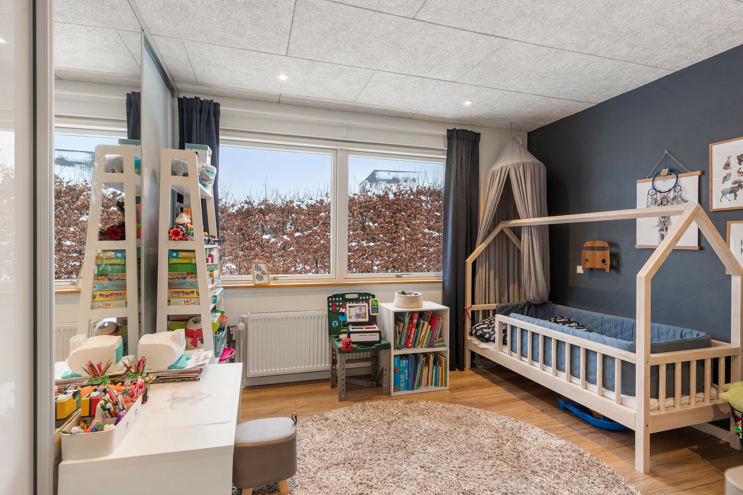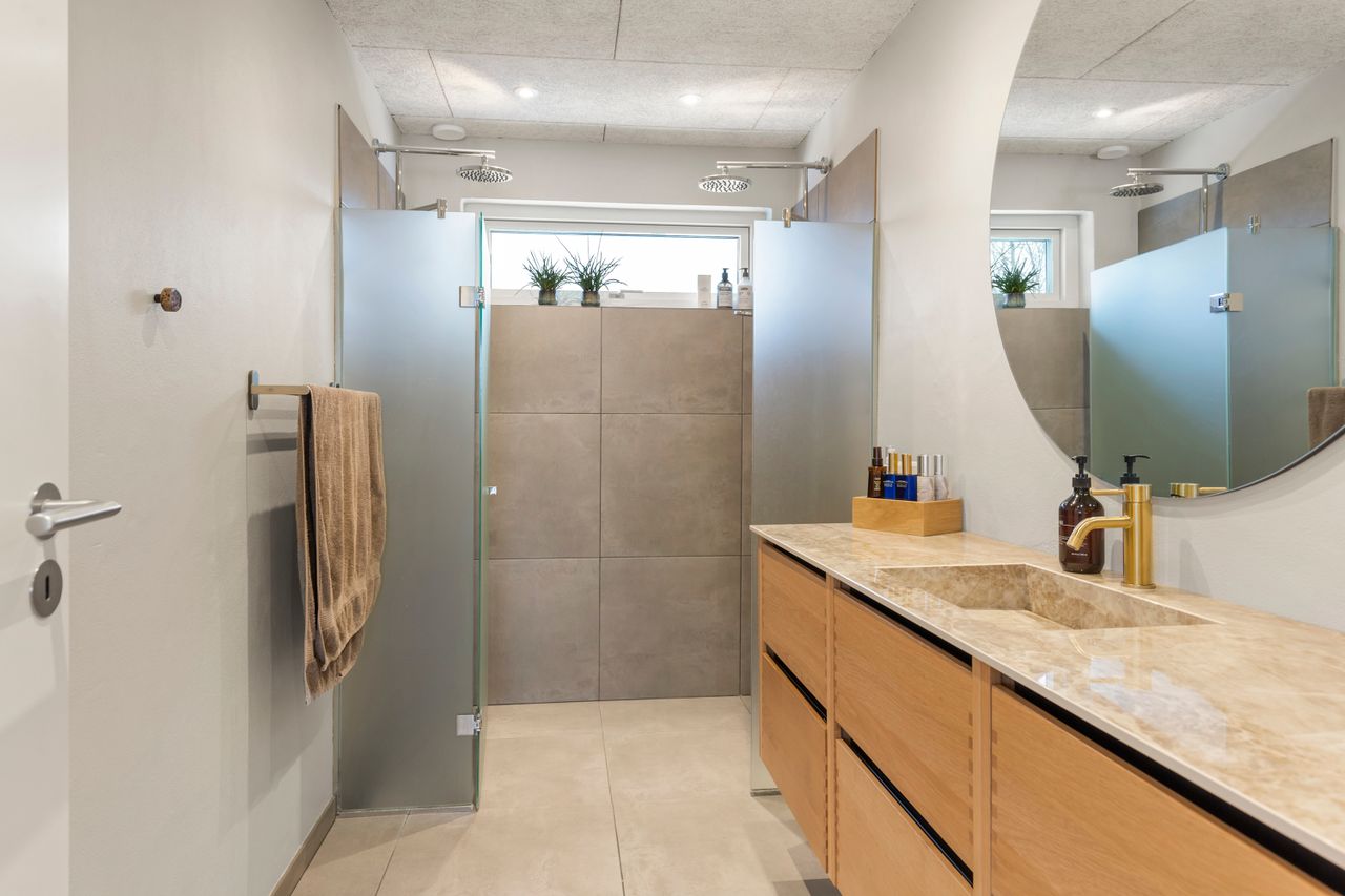 Boligen byder på hele 5 værelser, og her er der ingen, der bliver snydt, for alle værelser er store og har skønt lysindfald samt flere med udsigt. Hertil kommer 2 lækre badeværelser med gulvvarme samt et ekstra toilet – igen med inventar fra Designa.