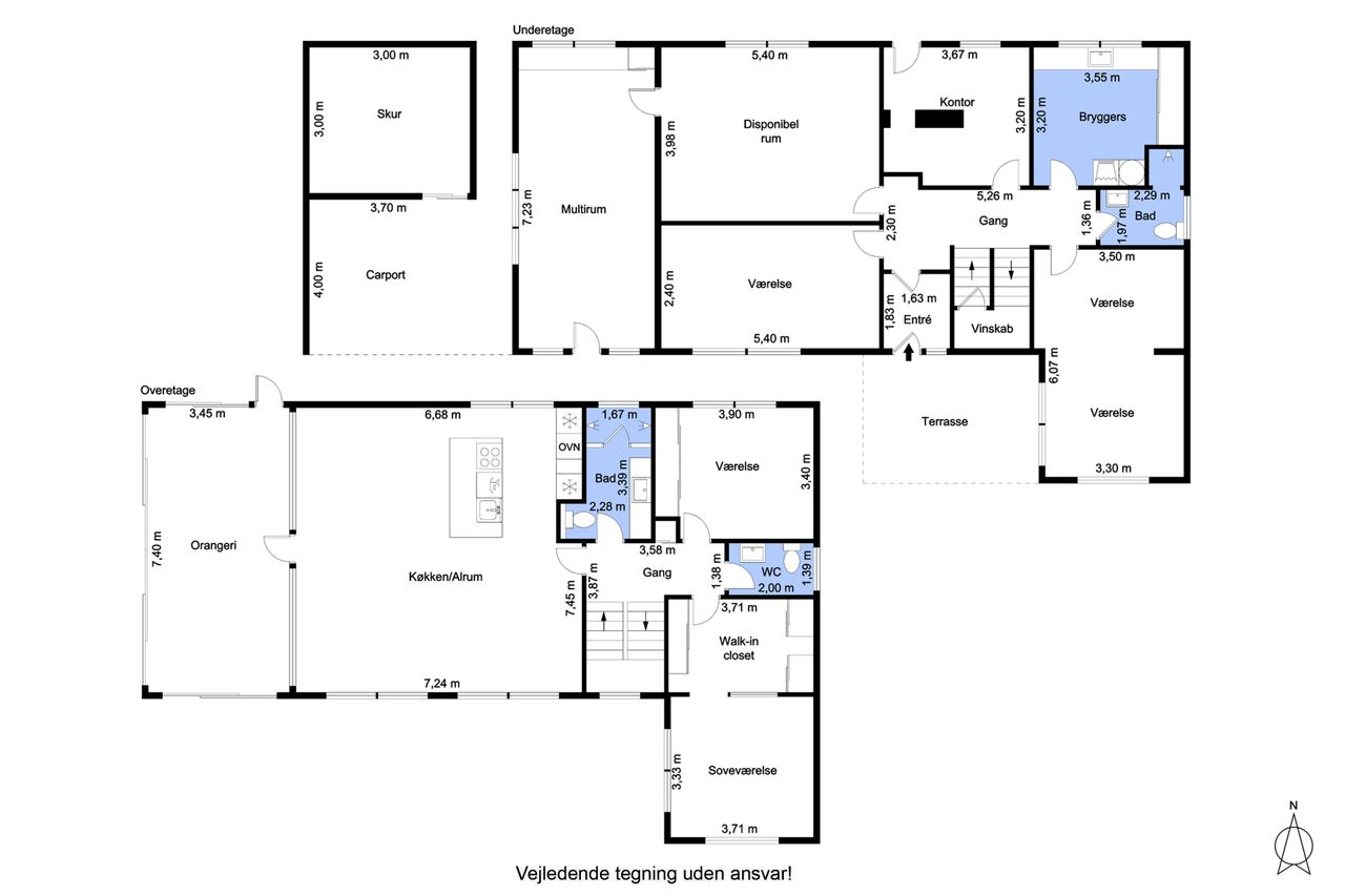 Boligen er gennemrenoveret i 2017/2018 og rummer 305 kvm etagemeter fordelt på en gennemtænkt planløsning med bolig, kælder, orangeri samt et stort multirum.