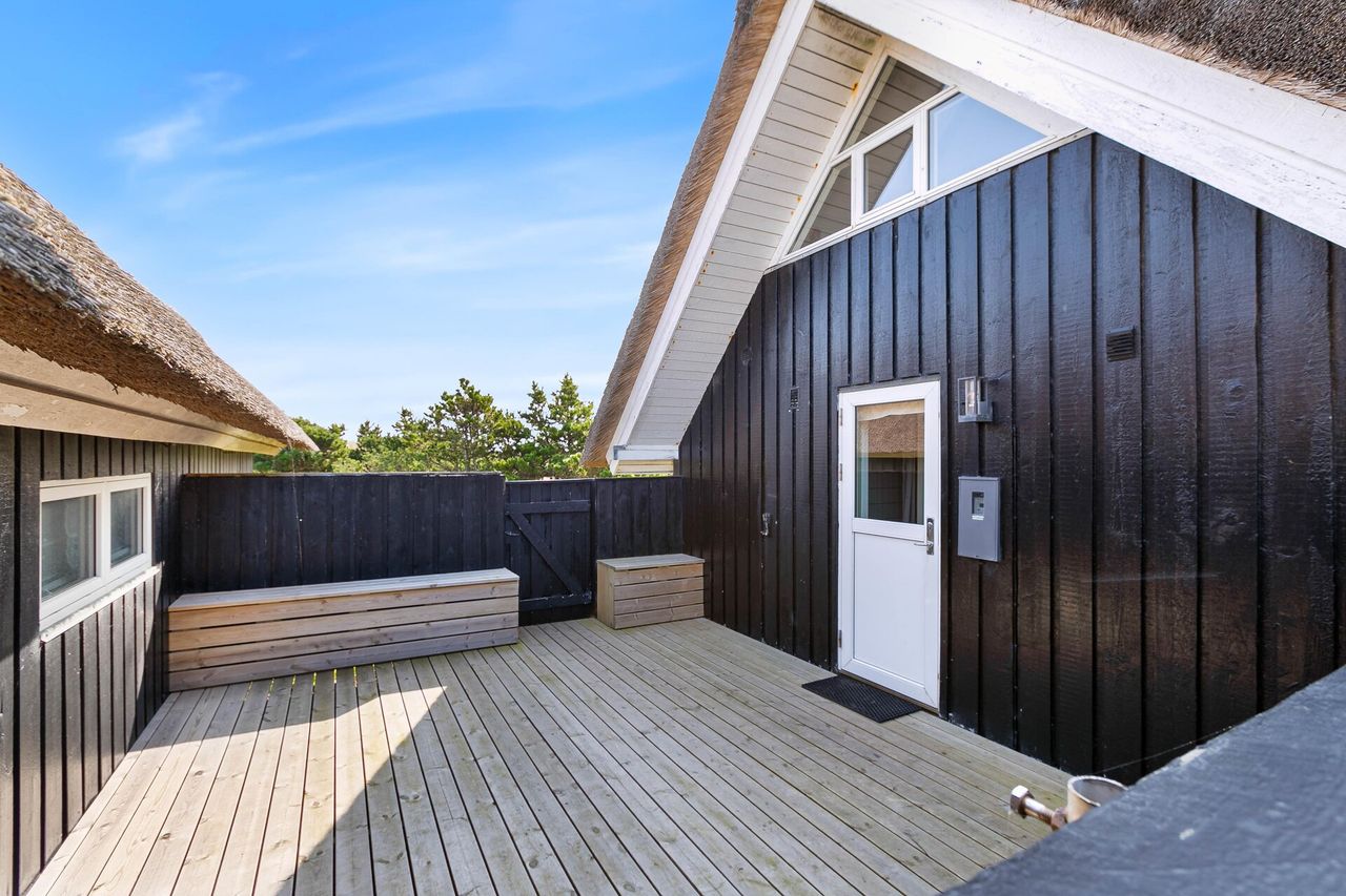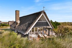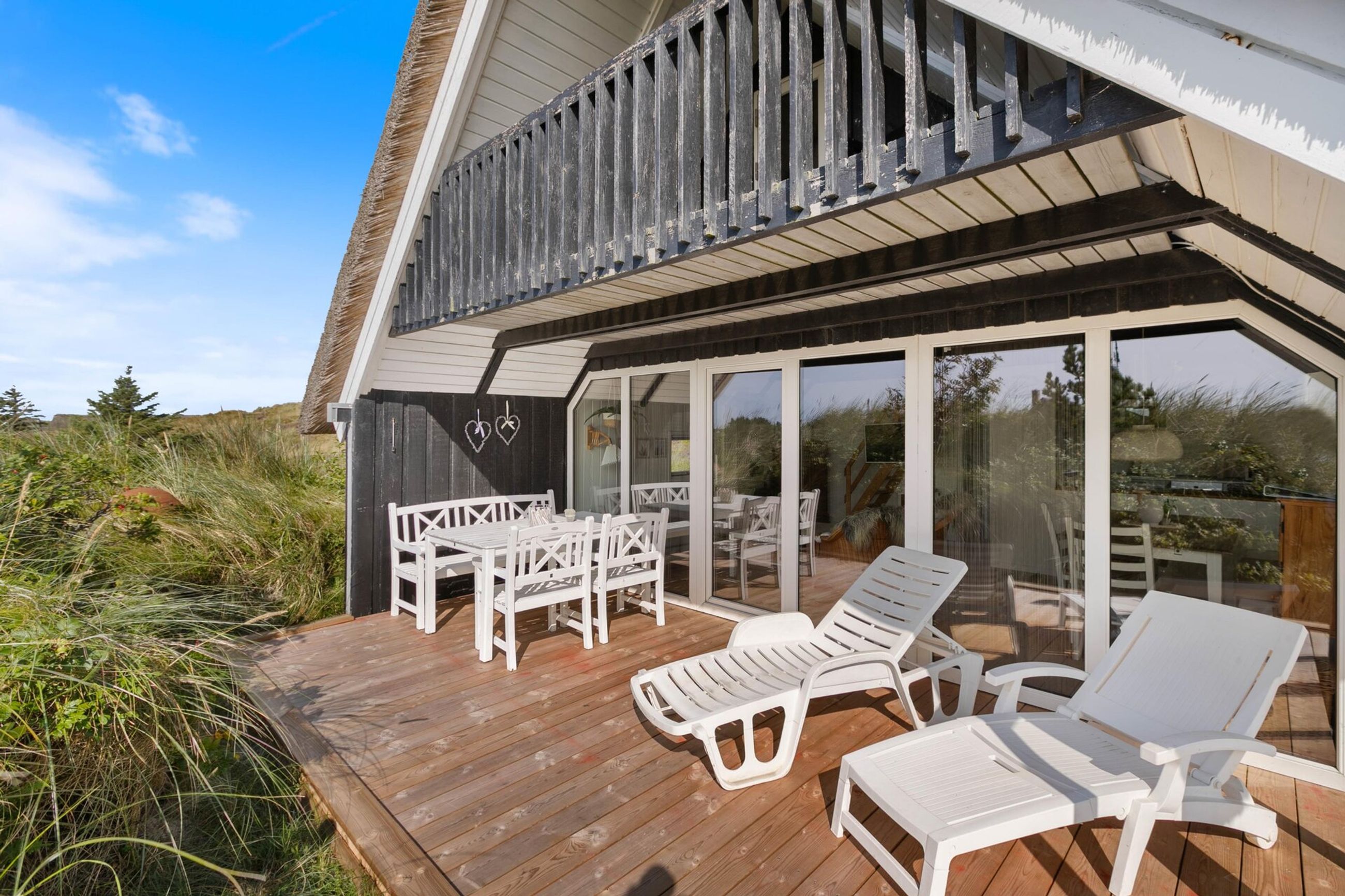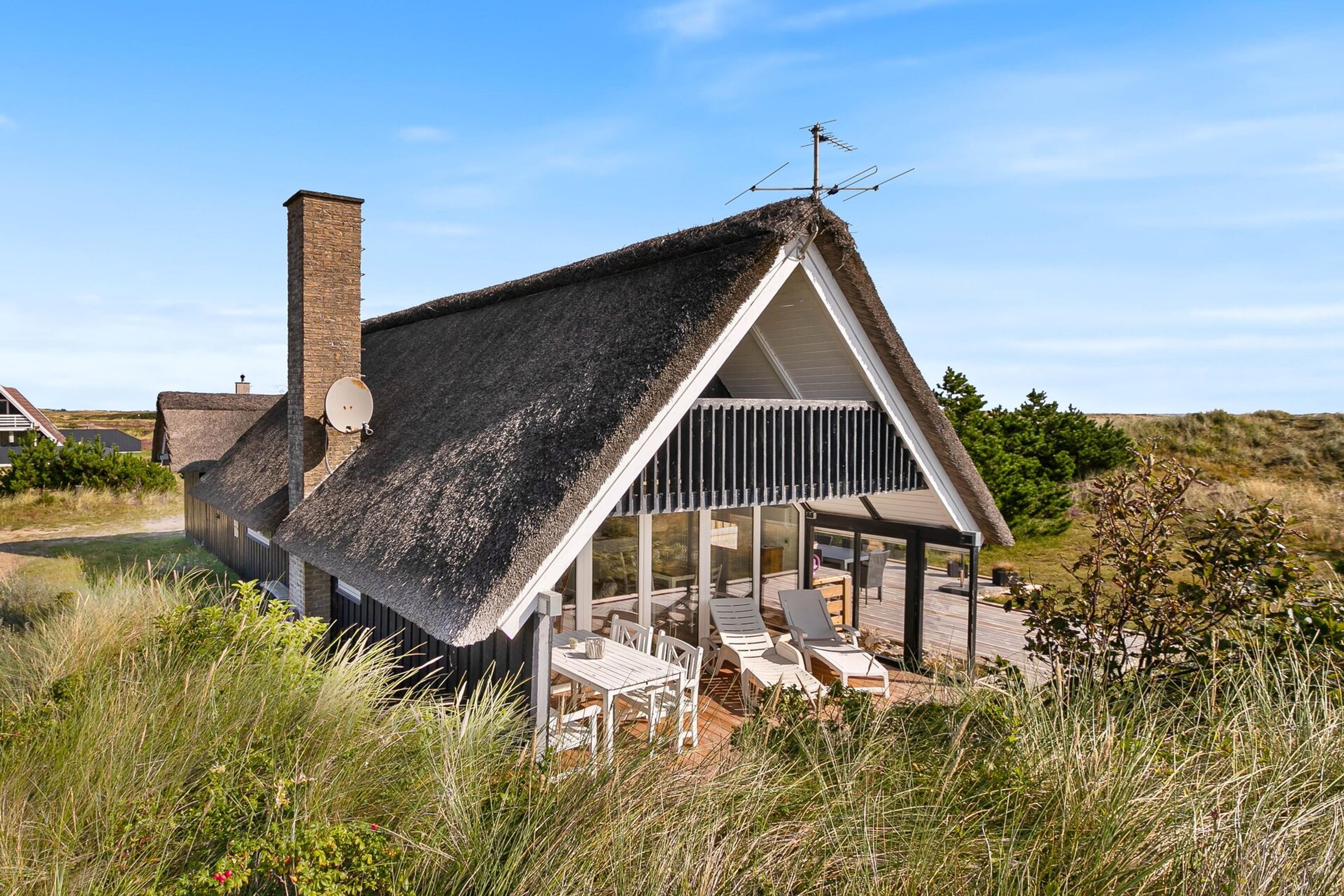 På en stor og marehalmsklædt naturgrund i det nordlige Bjerregård tilbydes det skønne, romantiske og meget fine sommerhus. Huset er opført i træ med stråtag med kvist og andre smukke detaljer, og indledningsvis bør man fremhæve den meget skønne øst- og sydvendte træterrasse, som fint binder hus, udbygning og grund sammen og virkelig er med til at skabe miljø. Til ejendommen hører en stor, formentlig tidligere garagebygning, der i dag er delt op i et udhus og i et afdeling med værksted samt mulighed for at lave et par ekstra opredninger, når det kniber.
