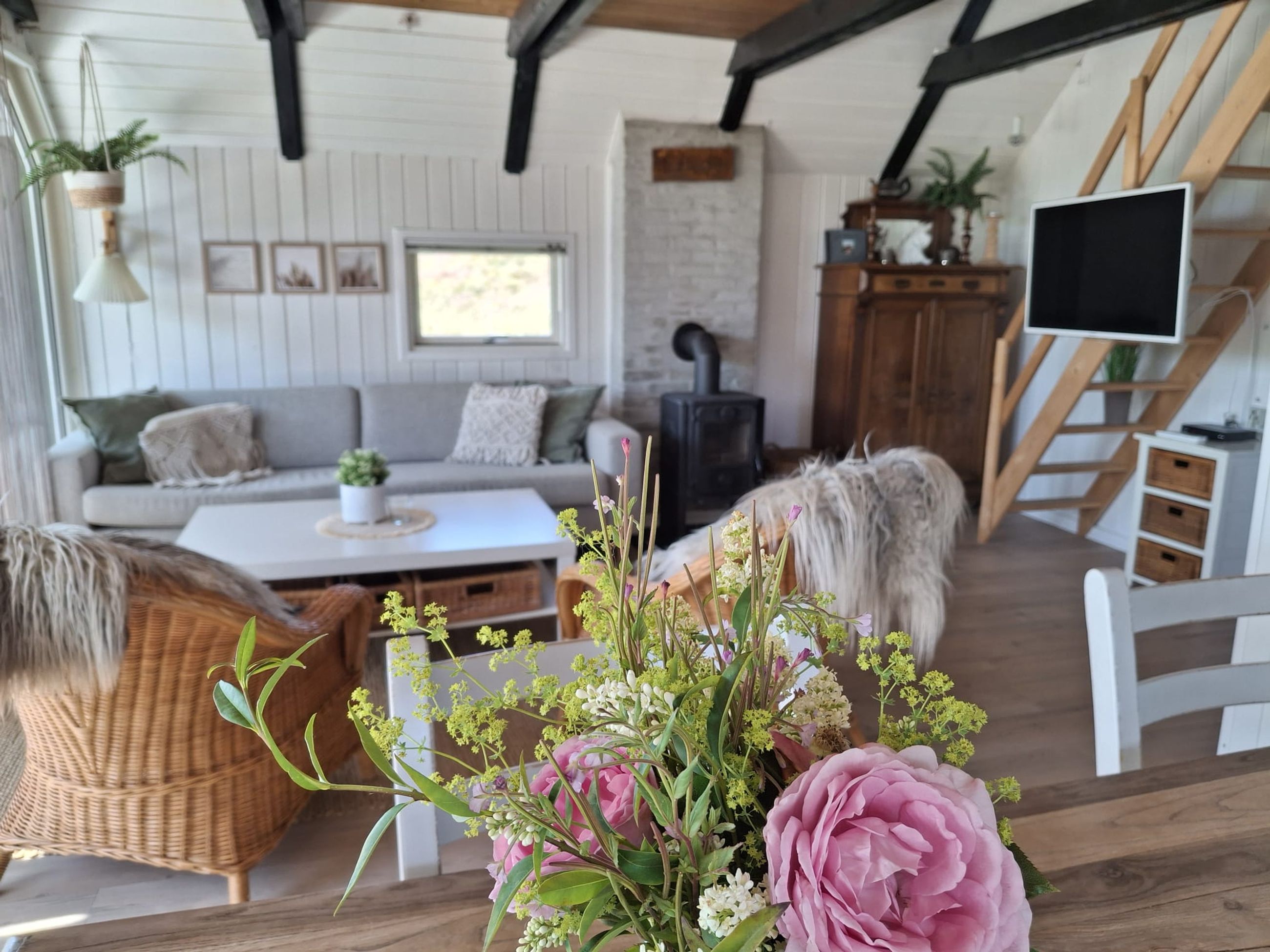 Dejlig og meget hyggelig stue med brændeovn m. muret skorsten. Stuen har lige en tilpas størrelse til at kunne være delt op i to med henholdsvis en spiseafdeling og en opholdsafdeling. Soveværelse i stueplan med to sovepladser.