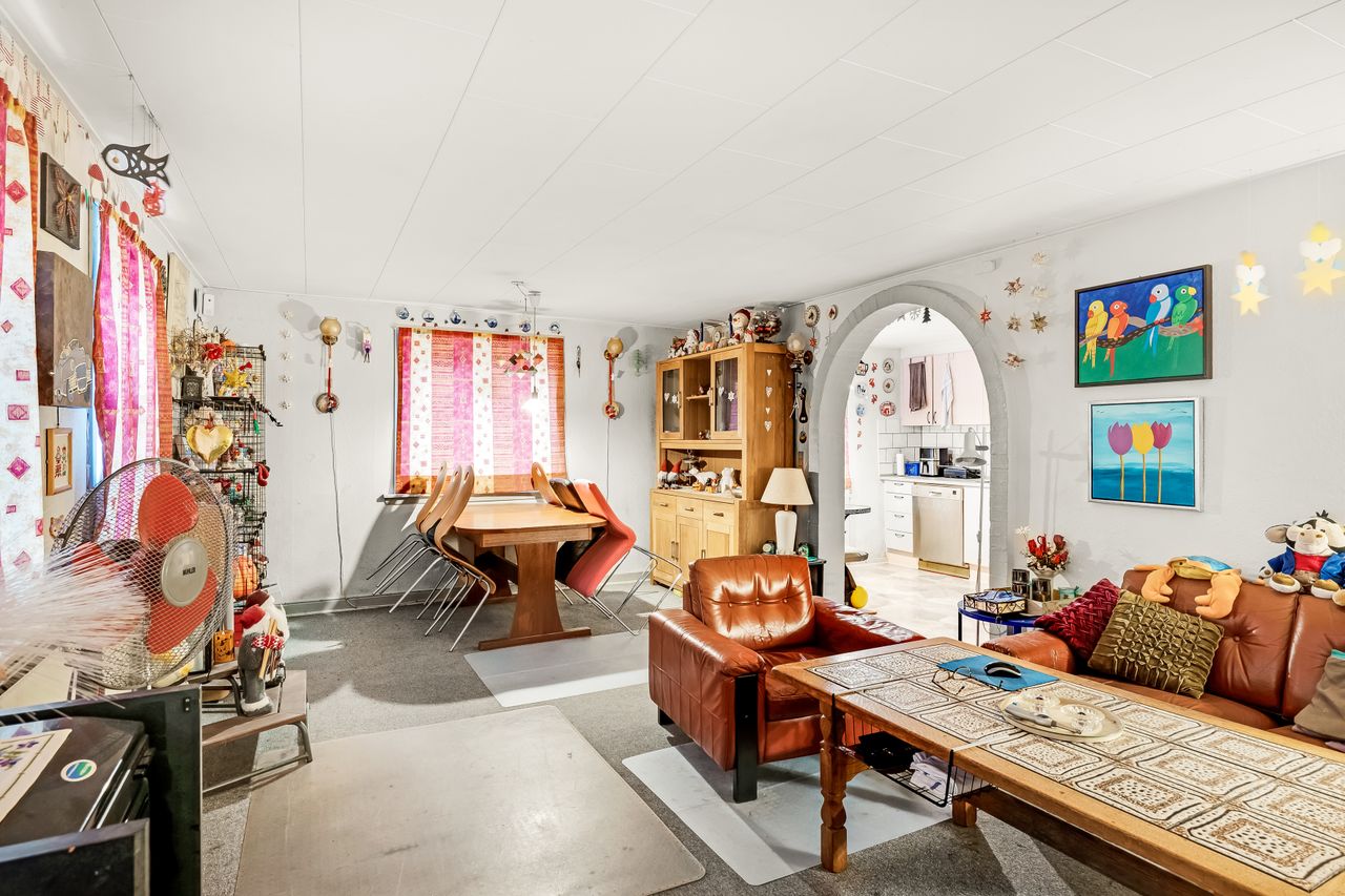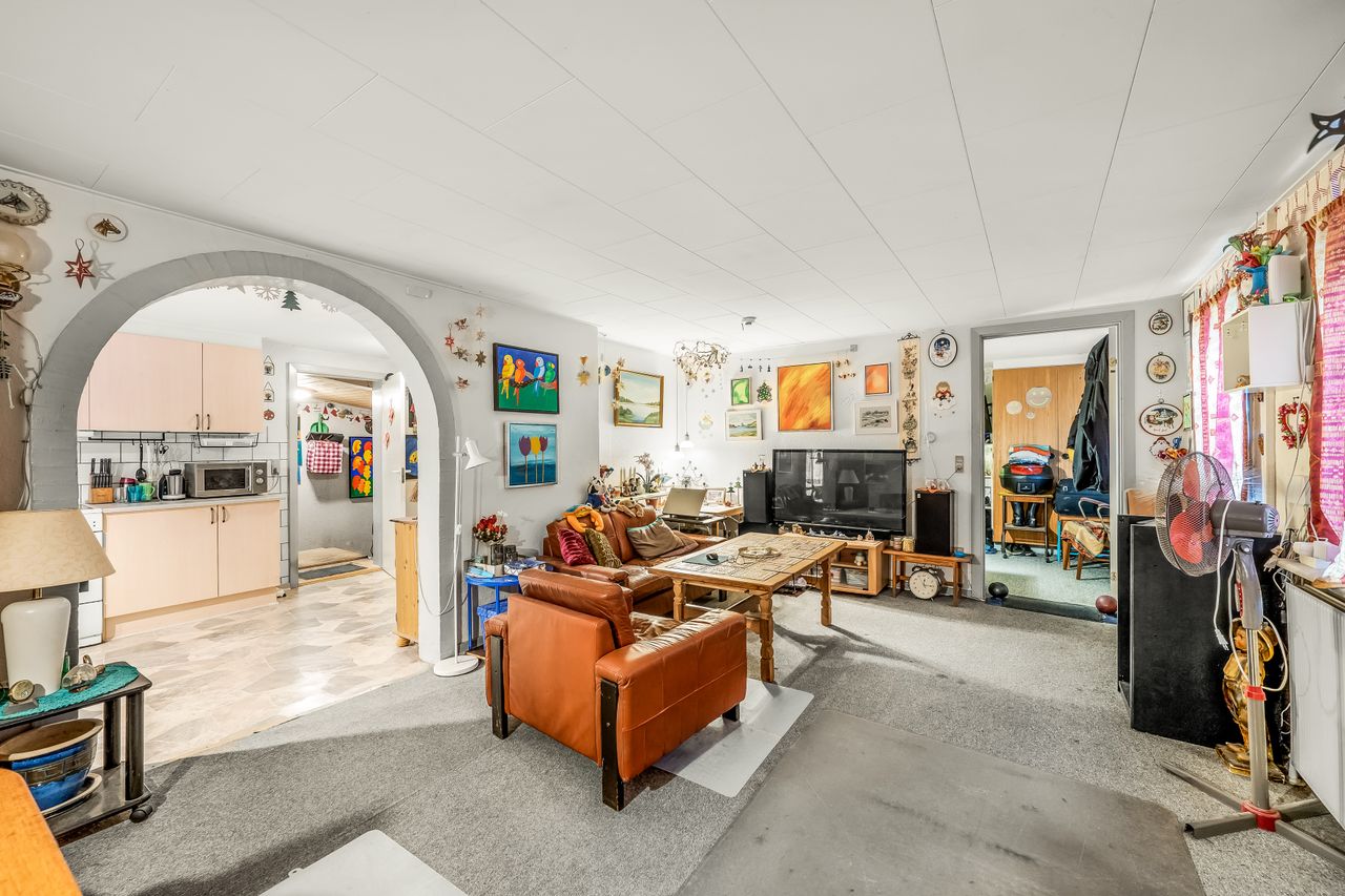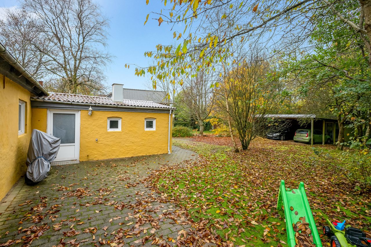Gulstensejendom beliggende i Kvong by. Ejendommen tjener i dag som udlejningsejendom og rummer to lejemål, som begge er beboede. Den månedlige leje andrager hhv. 4.400 og 2.900 plus forbrug, hvilket gør, at ejendommen oppebærer en bruttolejeindtægt på kr. 87.600 årligt plus forbrug. Ejendommen sælges uden for Huseftersynsordningen, idet det antages, at den fortsætter som udlejningsejendom.