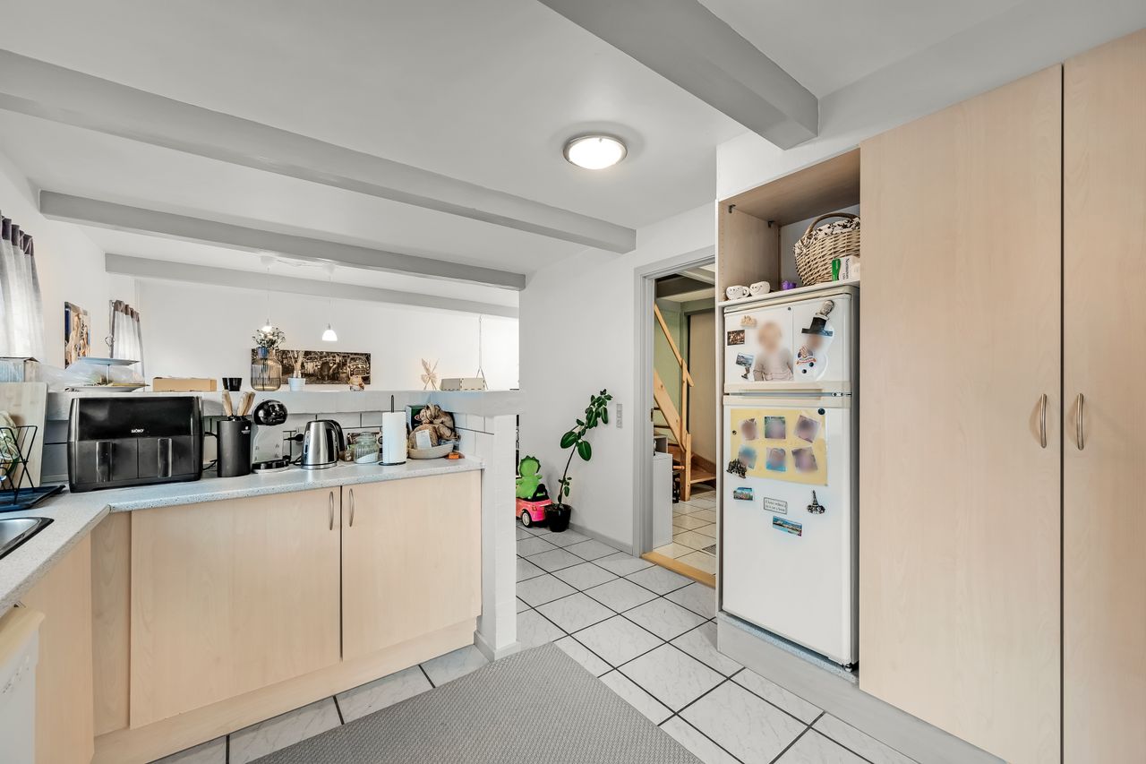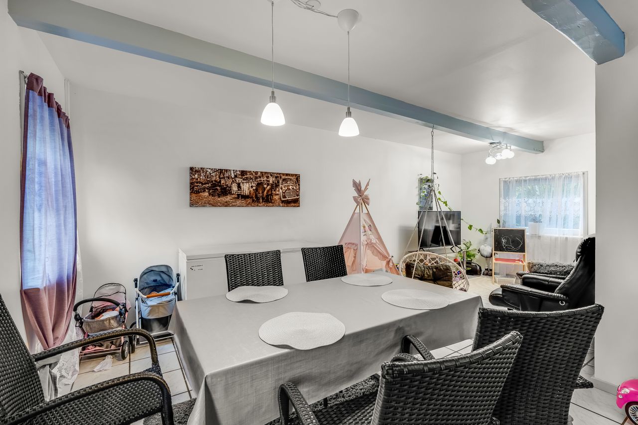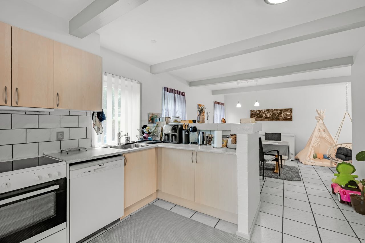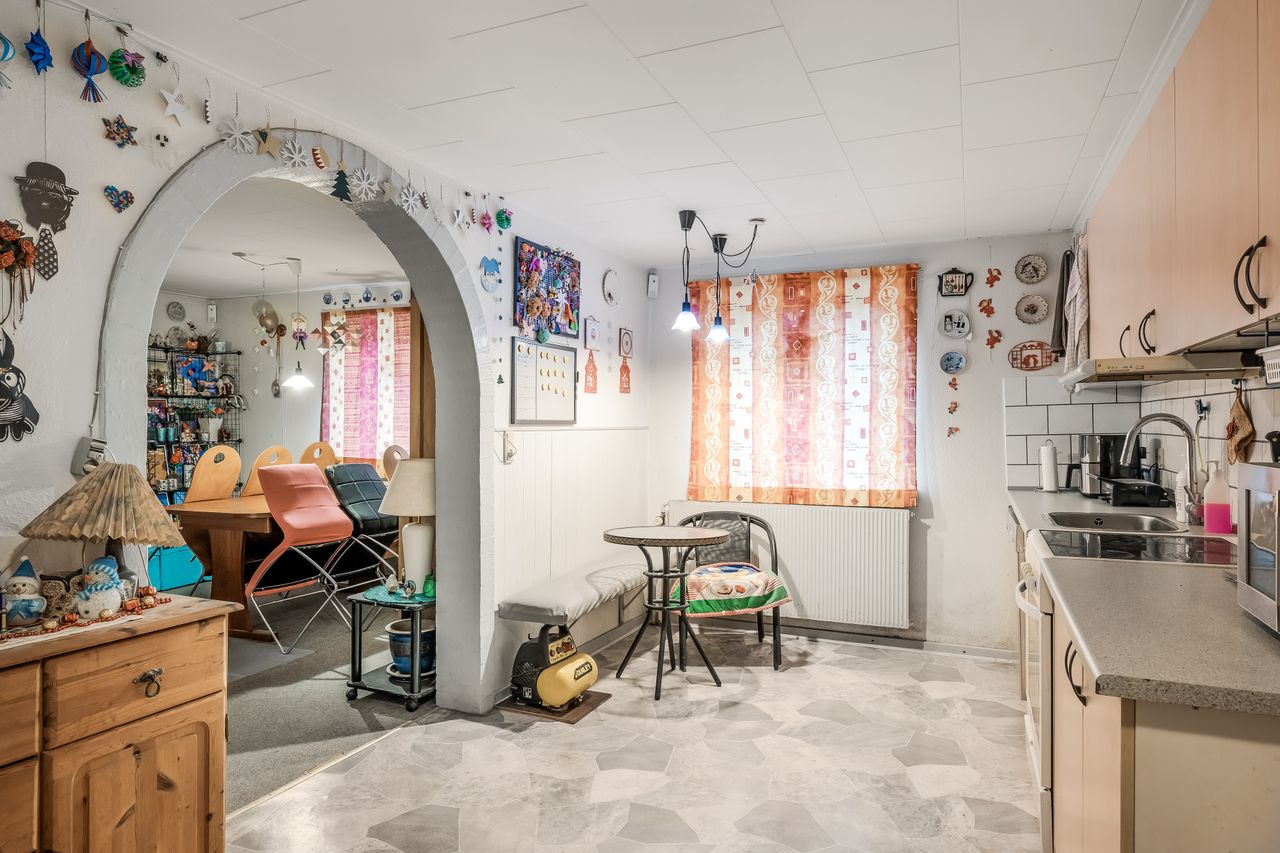Gulstensejendom beliggende i Kvong by. Ejendommen tjener i dag som udlejningsejendom og rummer to lejemål, som begge er beboede. Den månedlige leje andrager hhv. 4.400 og 2.900 plus forbrug, hvilket gør, at ejendommen oppebærer en bruttolejeindtægt på kr. 87.600 årligt plus forbrug. Ejendommen sælges uden for Huseftersynsordningen, idet det antages, at den fortsætter som udlejningsejendom.