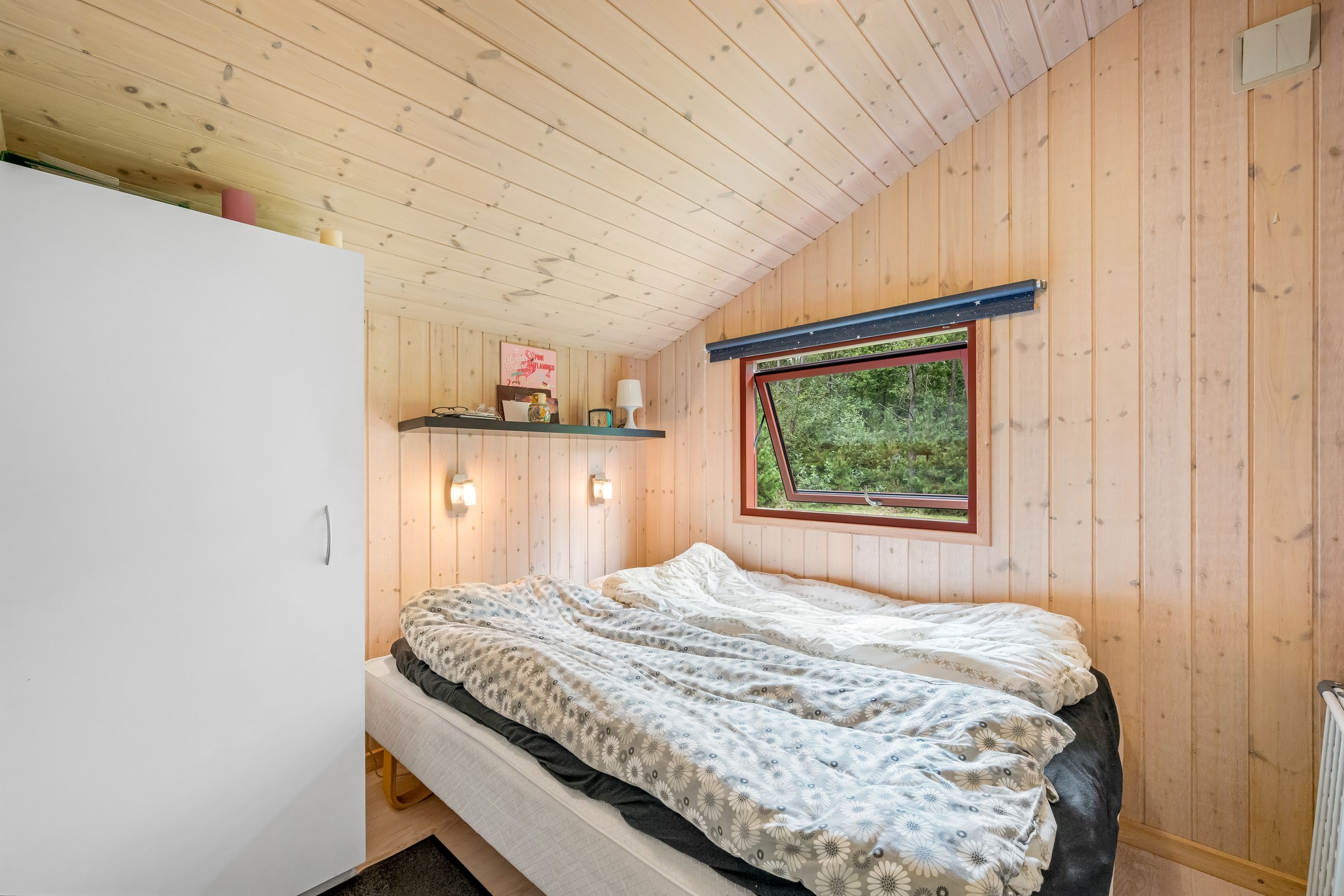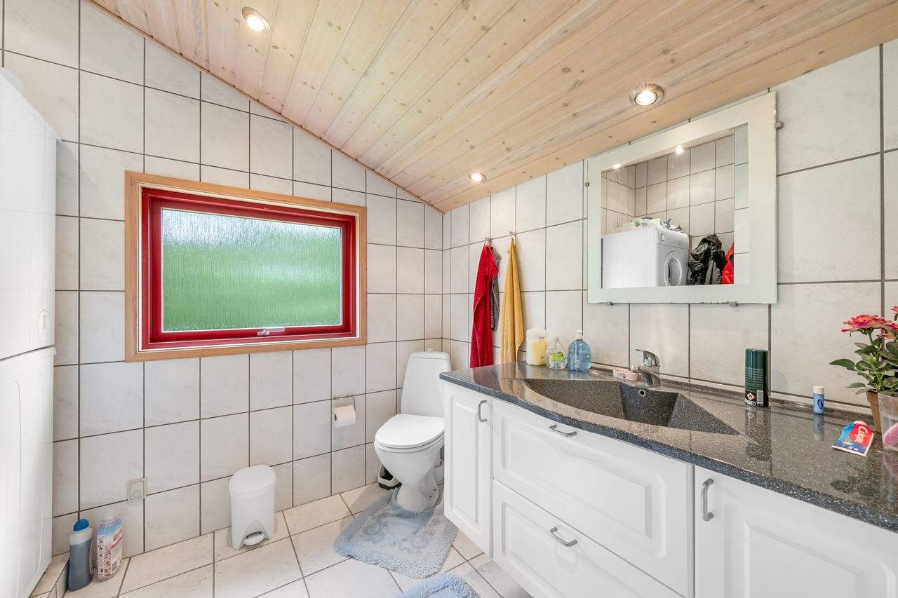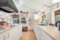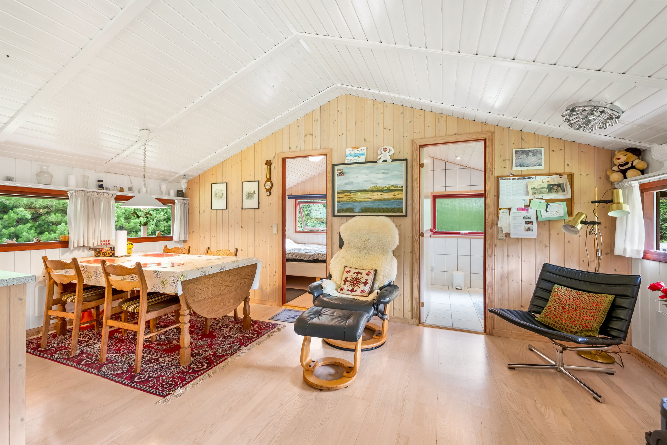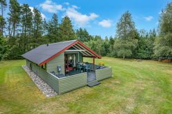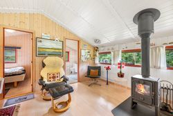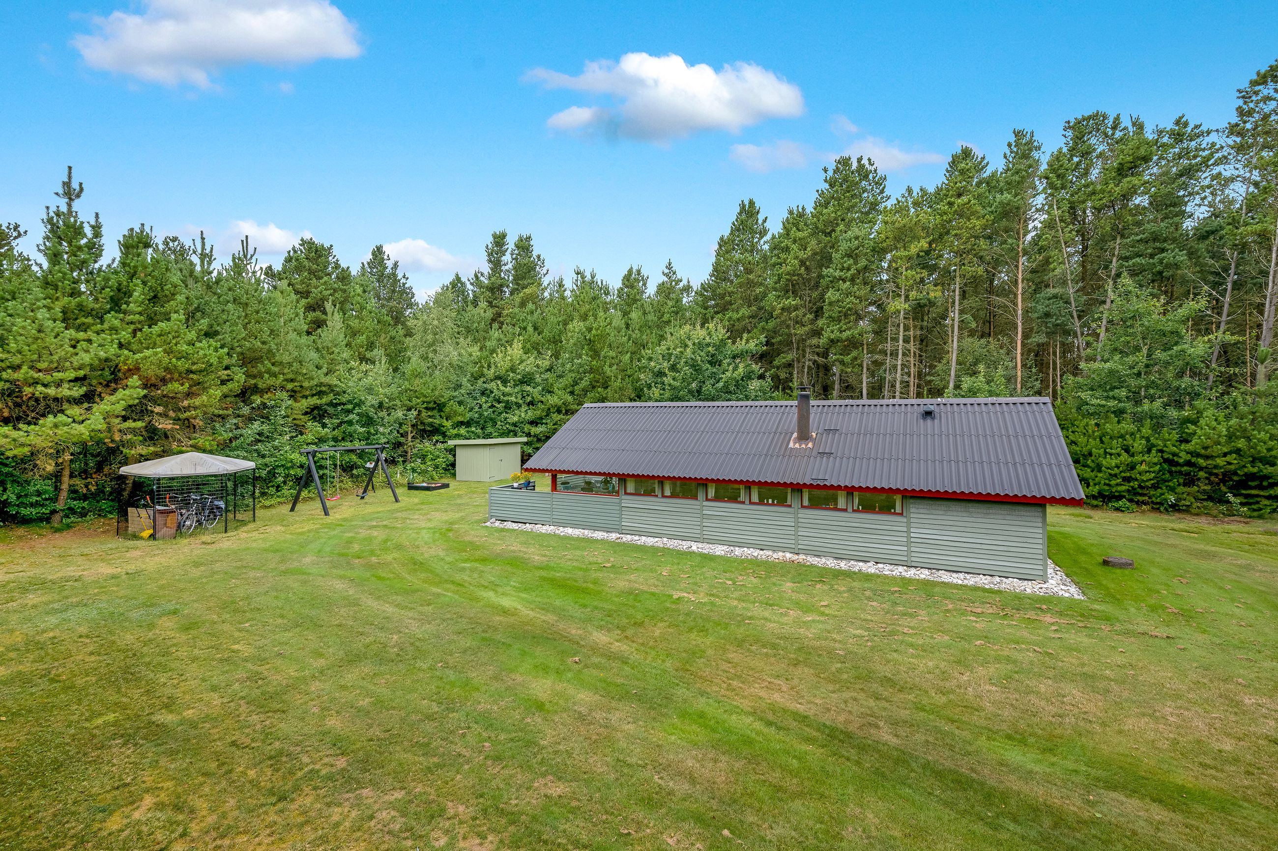 Et hyggeligt og samtidig nemt sommerhus på skøn randbeplantet, børnevenlig grund med høje træer. Huset, der er beliggende i det ene hjørne mod venstre for enden af blind vej, er ikke tilmeldt udlejning og bebos p.t. af husets nuværende ejer.