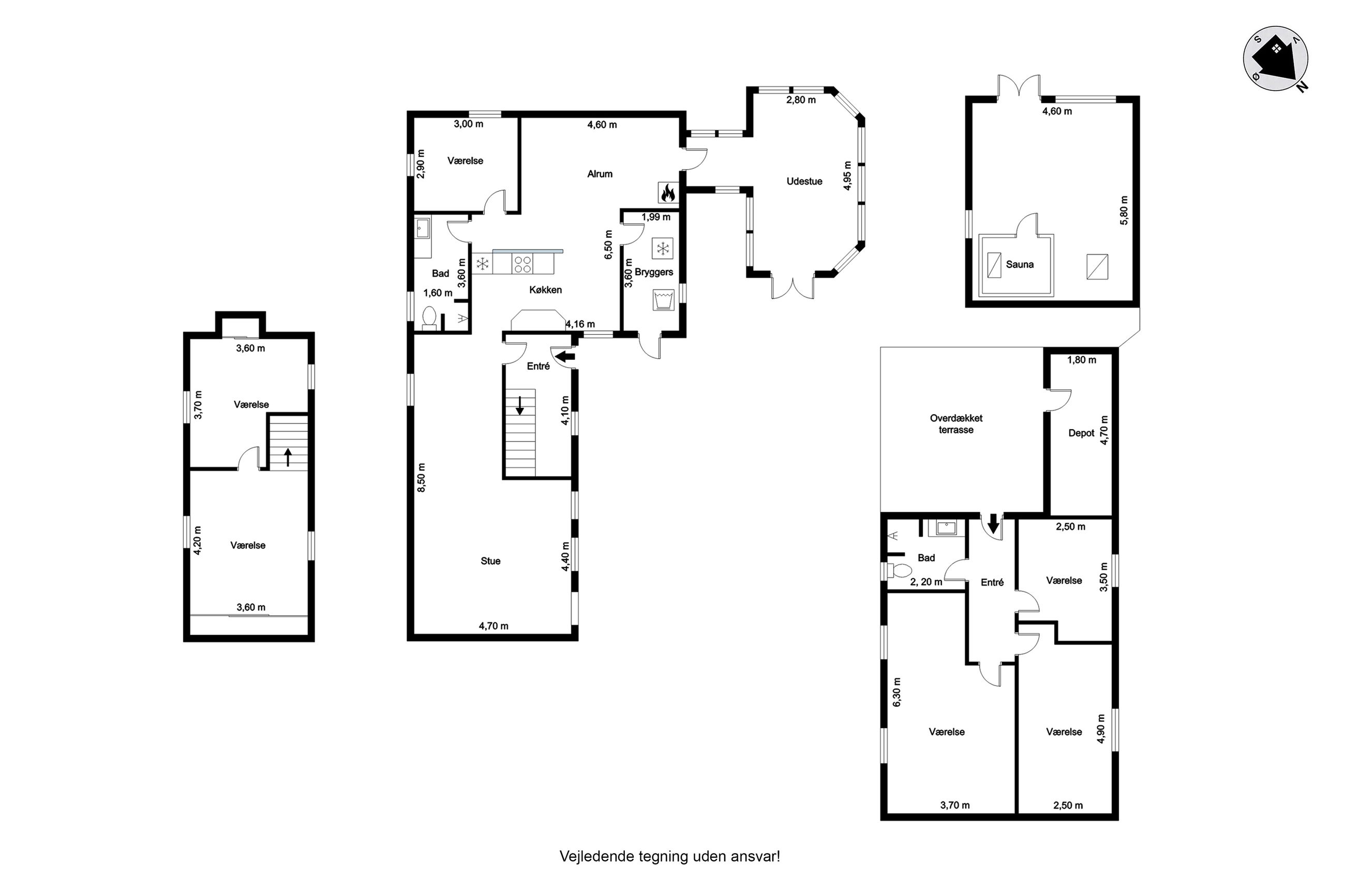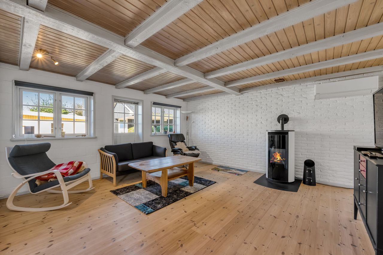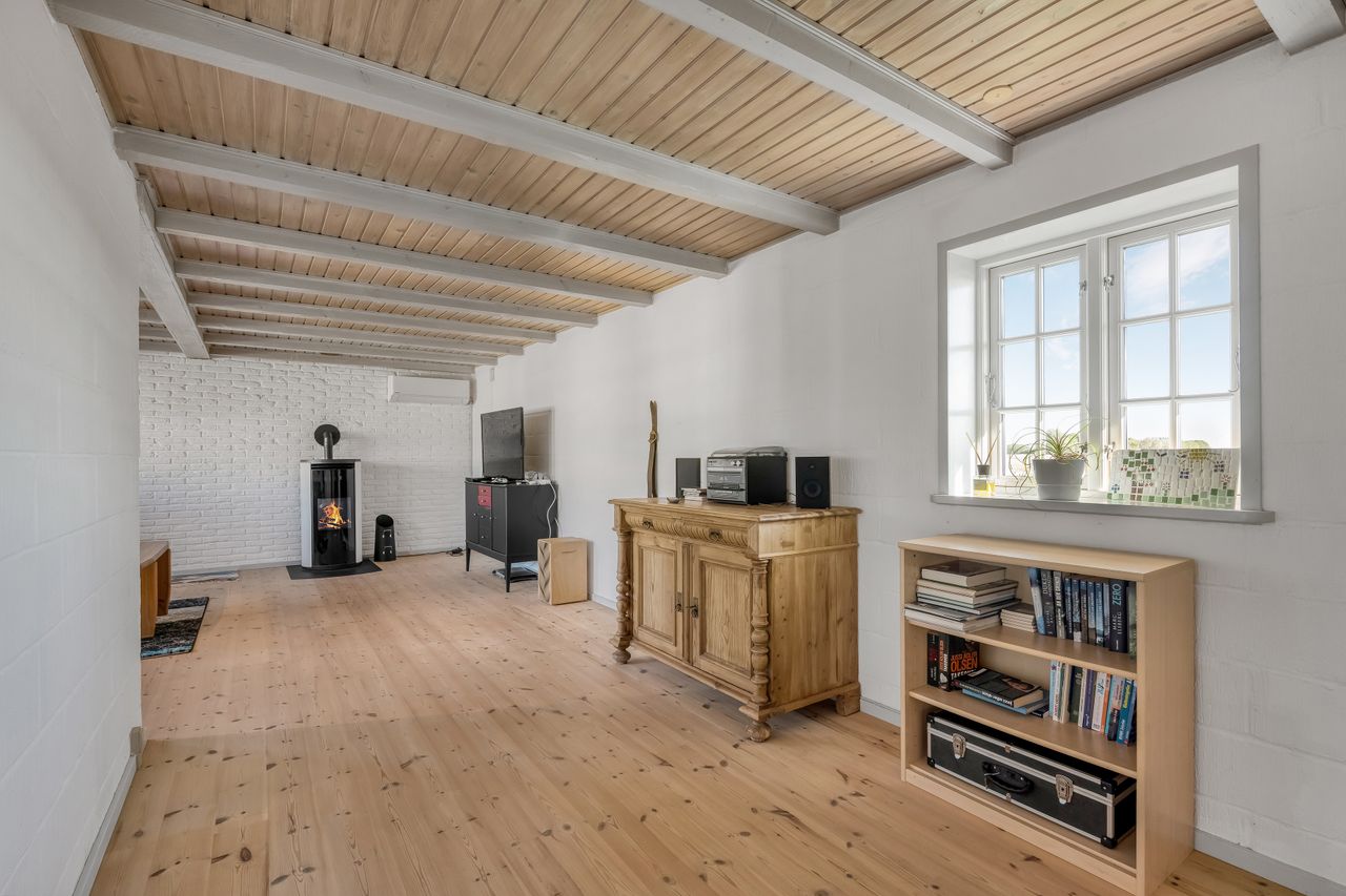 Sælger har i sin ejertid ladet en selvstændig bebyggelse opføre ved siden af selve hovedhuset. Denne bygning er et længehus, som er opført i træ. Længehuset indeholder en overdækket terrasse med adgang til depot samt fuldt godkendt beboelse med tre gode værelser samt badeværelse.