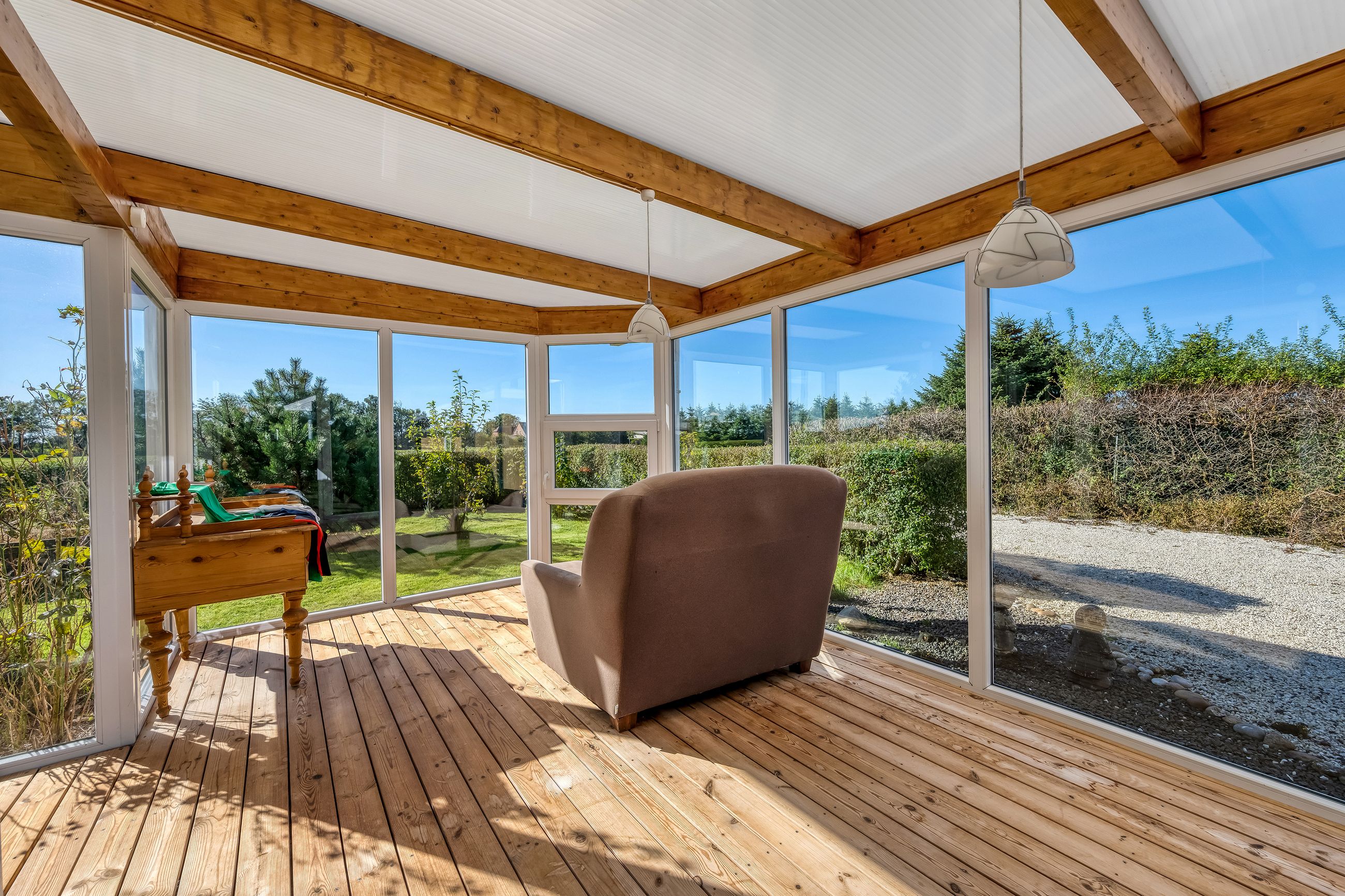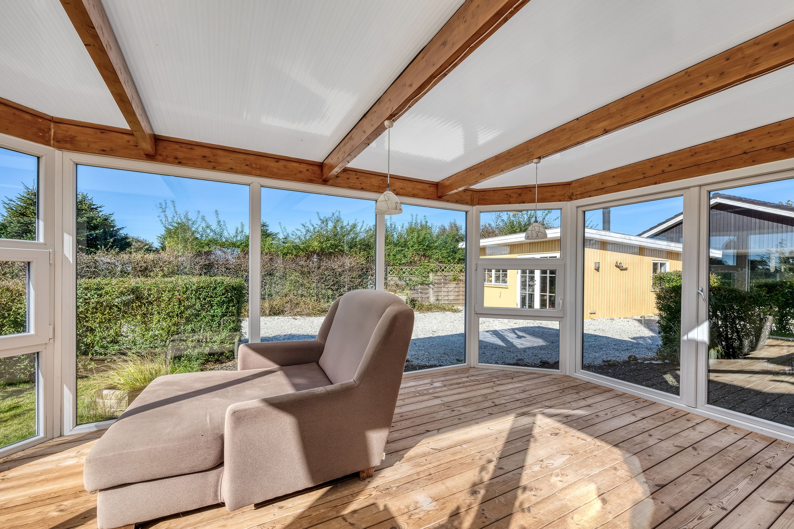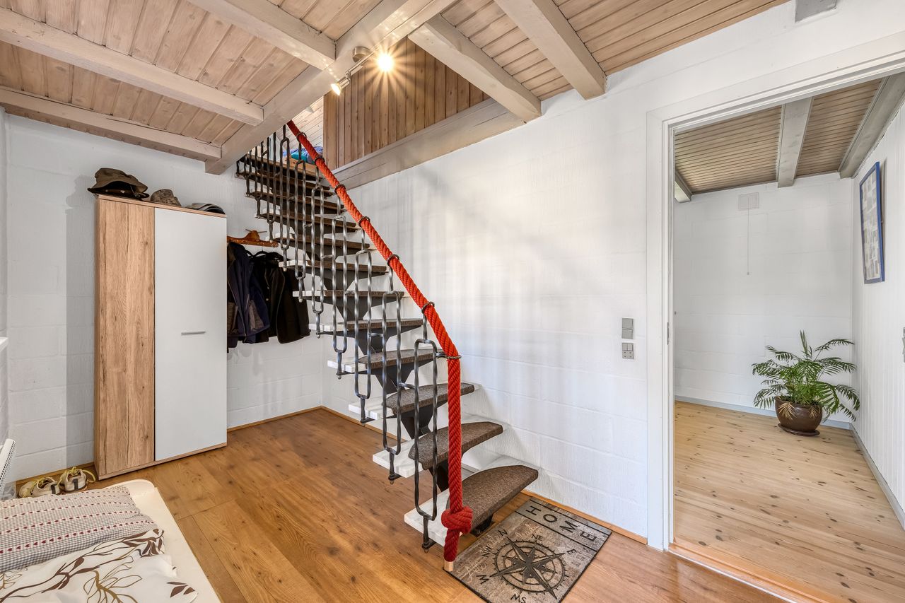 Sælger har i sin ejertid ladet en selvstændig bebyggelse opføre ved siden af selve hovedhuset. Denne bygning er et længehus, som er opført i træ. Længehuset indeholder en overdækket terrasse med adgang til depot samt fuldt godkendt beboelse med tre gode værelser samt badeværelse.