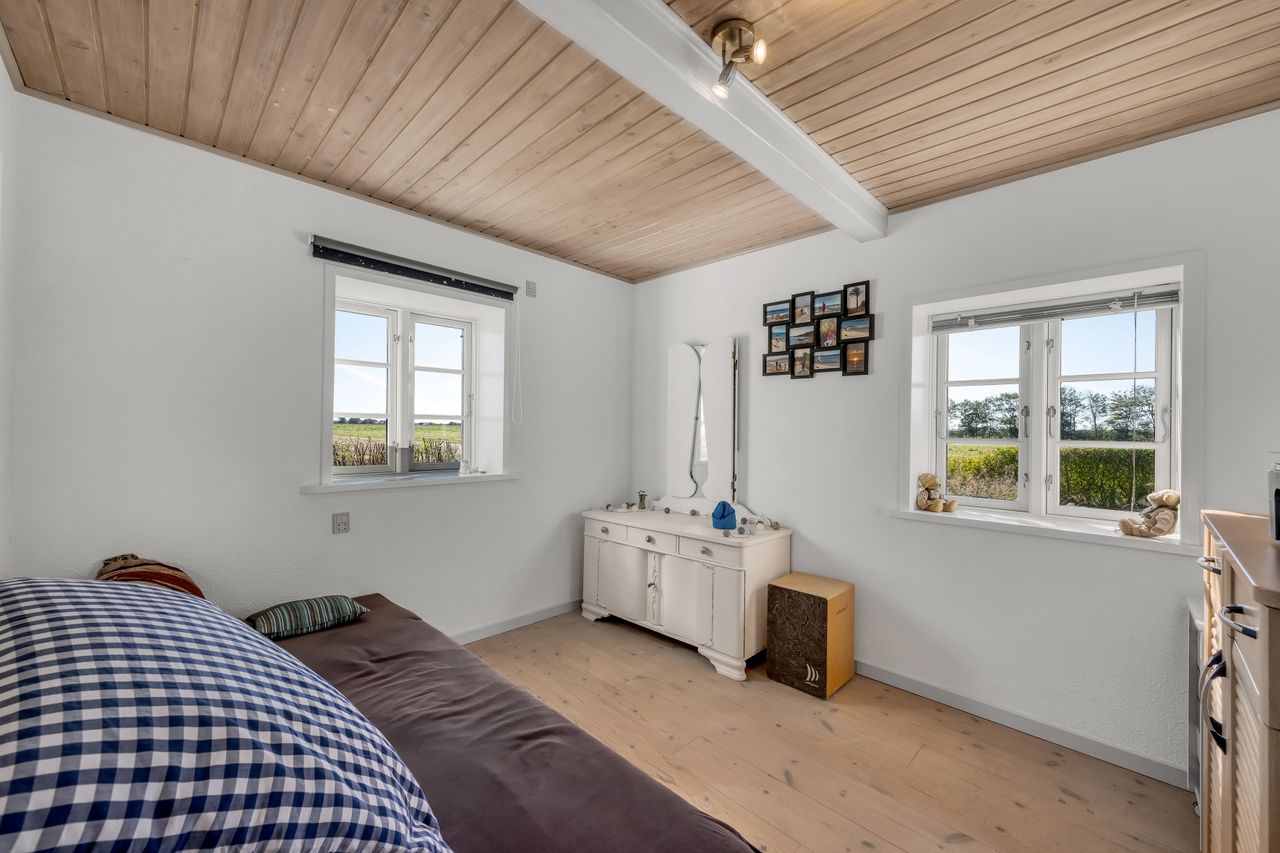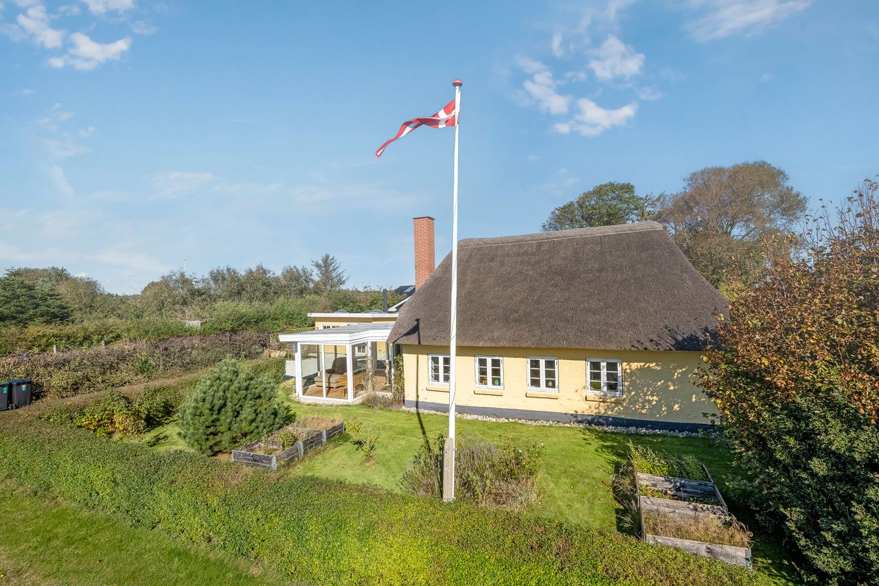 I rolige og idylliske omgivelser i Hennebjerg ikke langt fra Blåbjerg Plantage, Vesterhavet og Nr. Nebel ligger denne hyggelige stråtækte bolig. Rent faktisk består ejendommen af hele to bebyggelser, idet der er lavet en god og meget anvendelig selvstændig værelsesfløj.