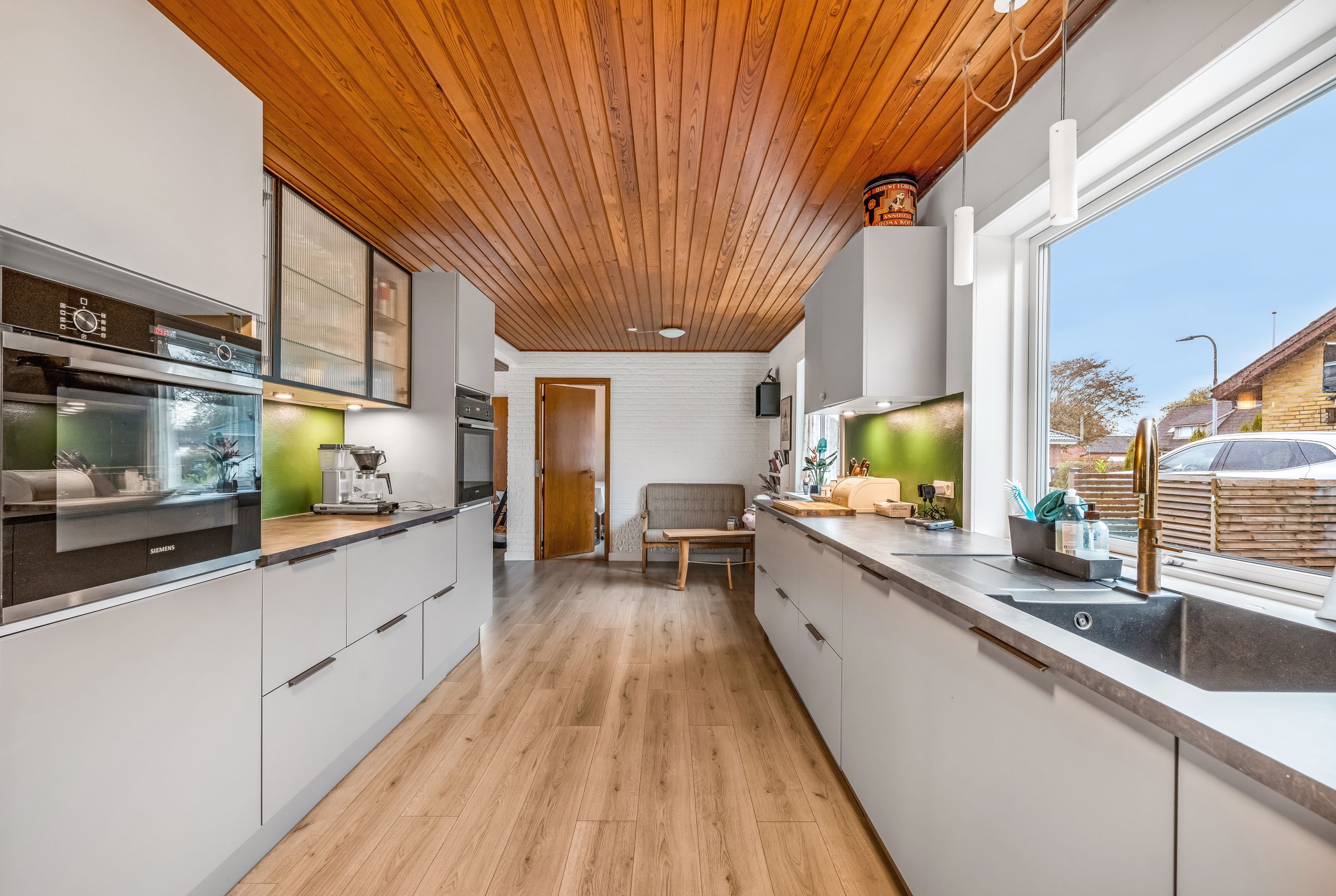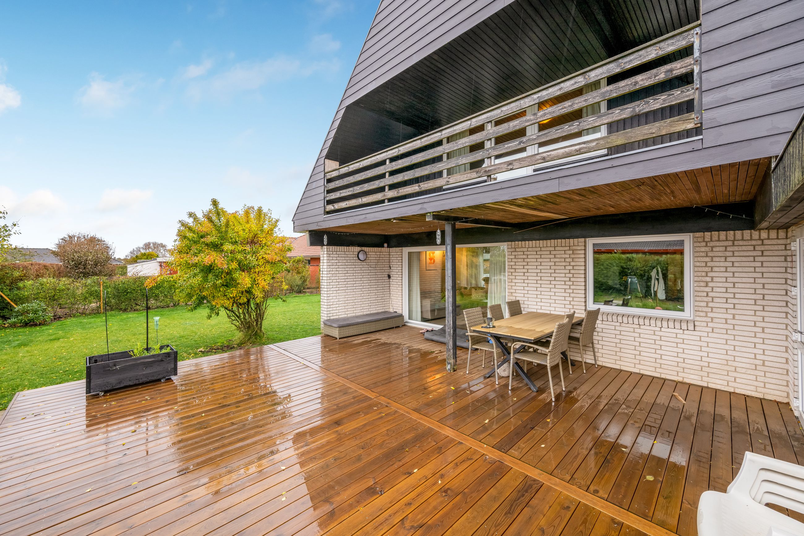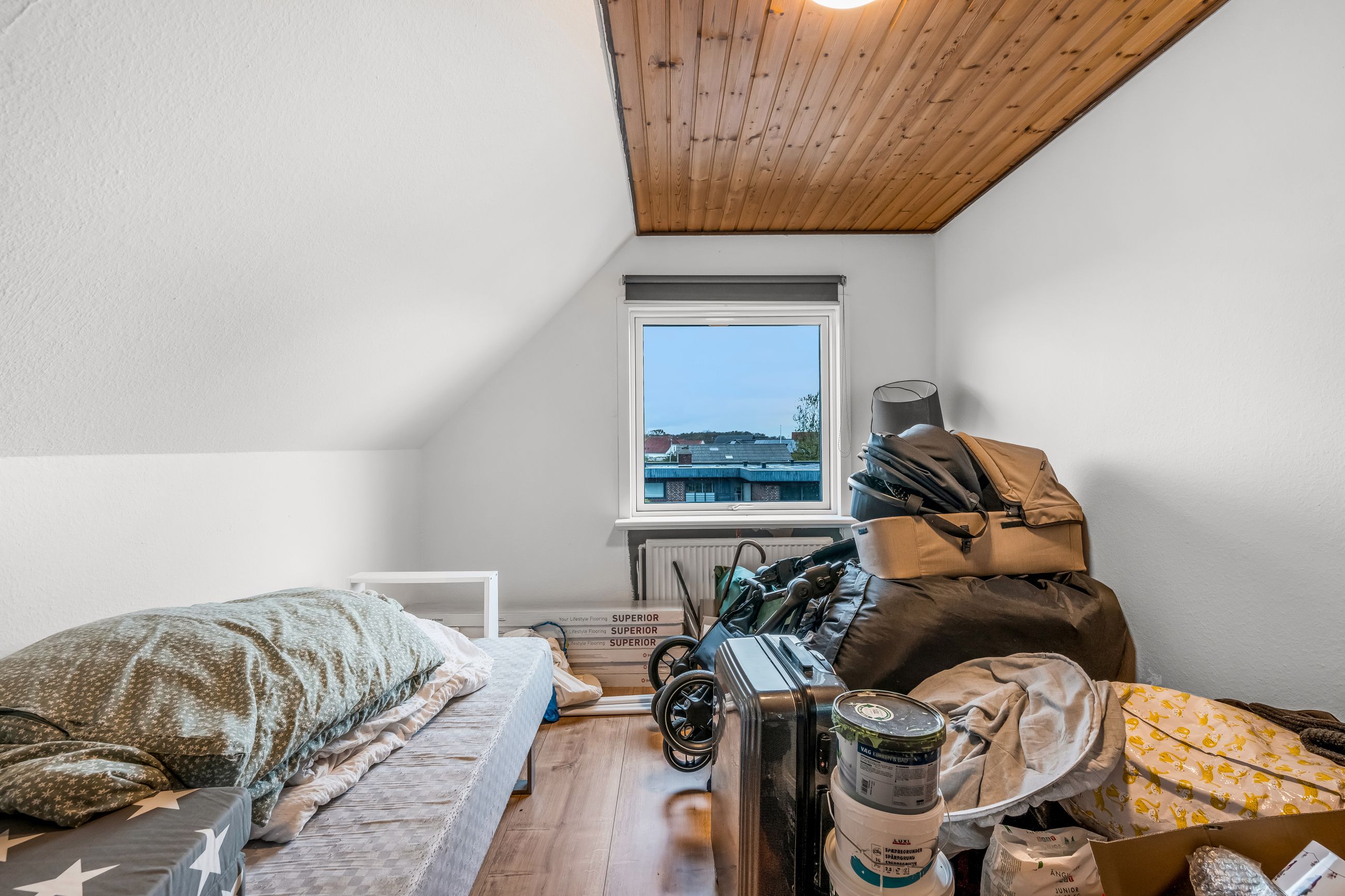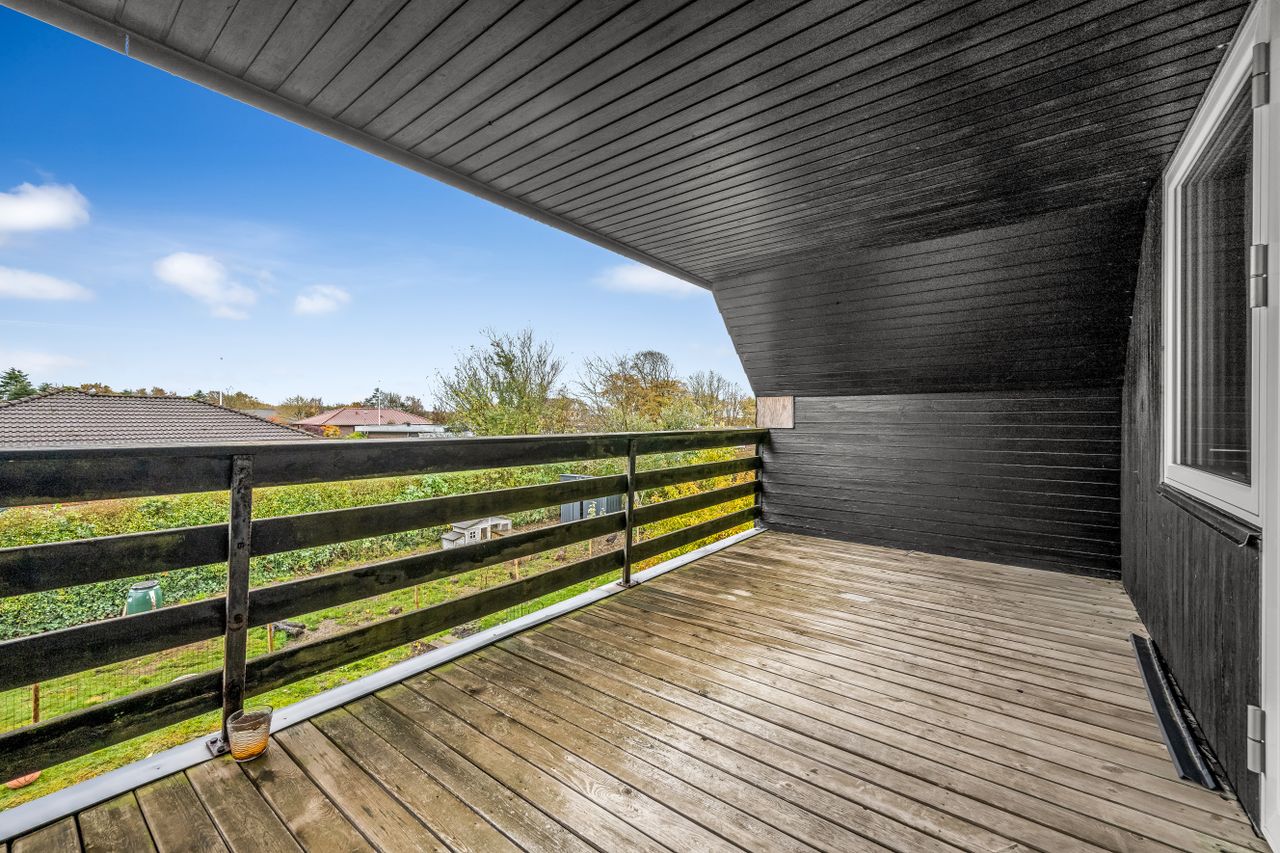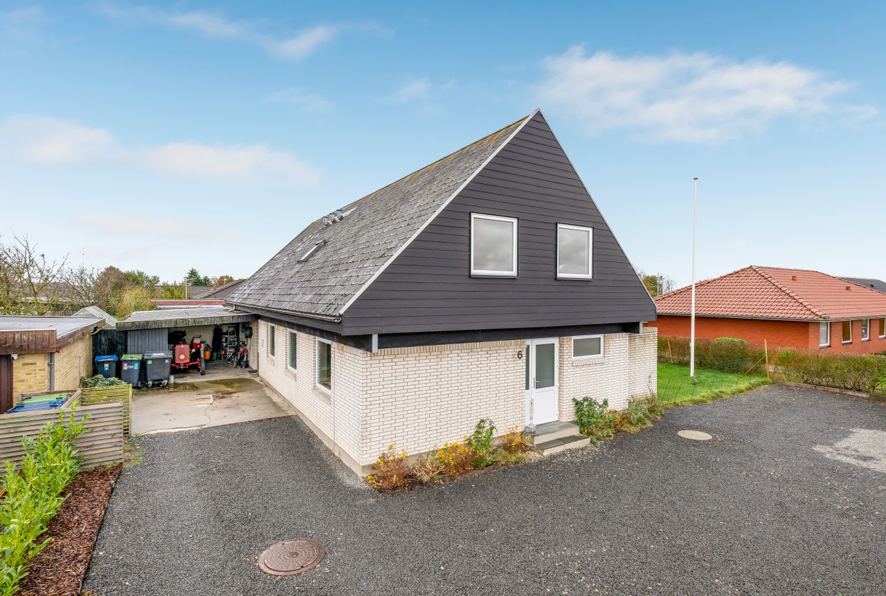 Tidstypisk 70'er villa opført i hvide kalksandsten og med eternitskifer som tagbelægning. Ejendommen er løbende renoveret og er i det store hele indflytningsklar. Huset har udnyttet tagetage med repos, to gavlværelser i den ene ende, et stort gavlværelse med adgang til altan i den anden ende. Desden er der ovenpå endnu et værelse samt et badeværelse.