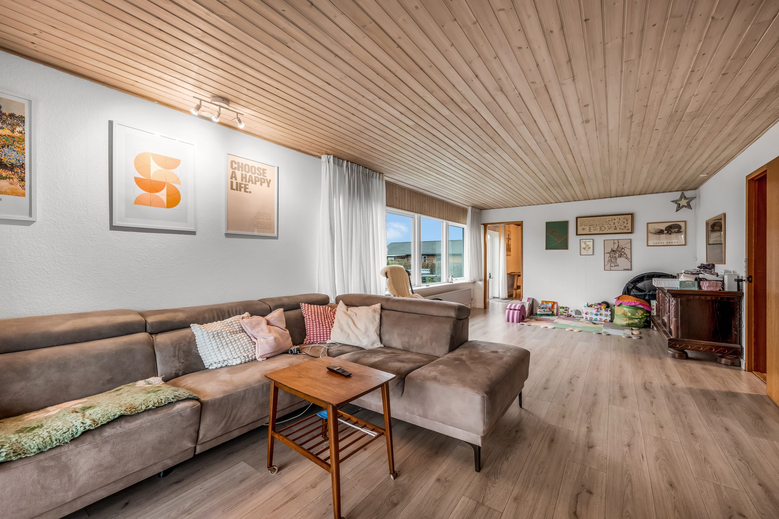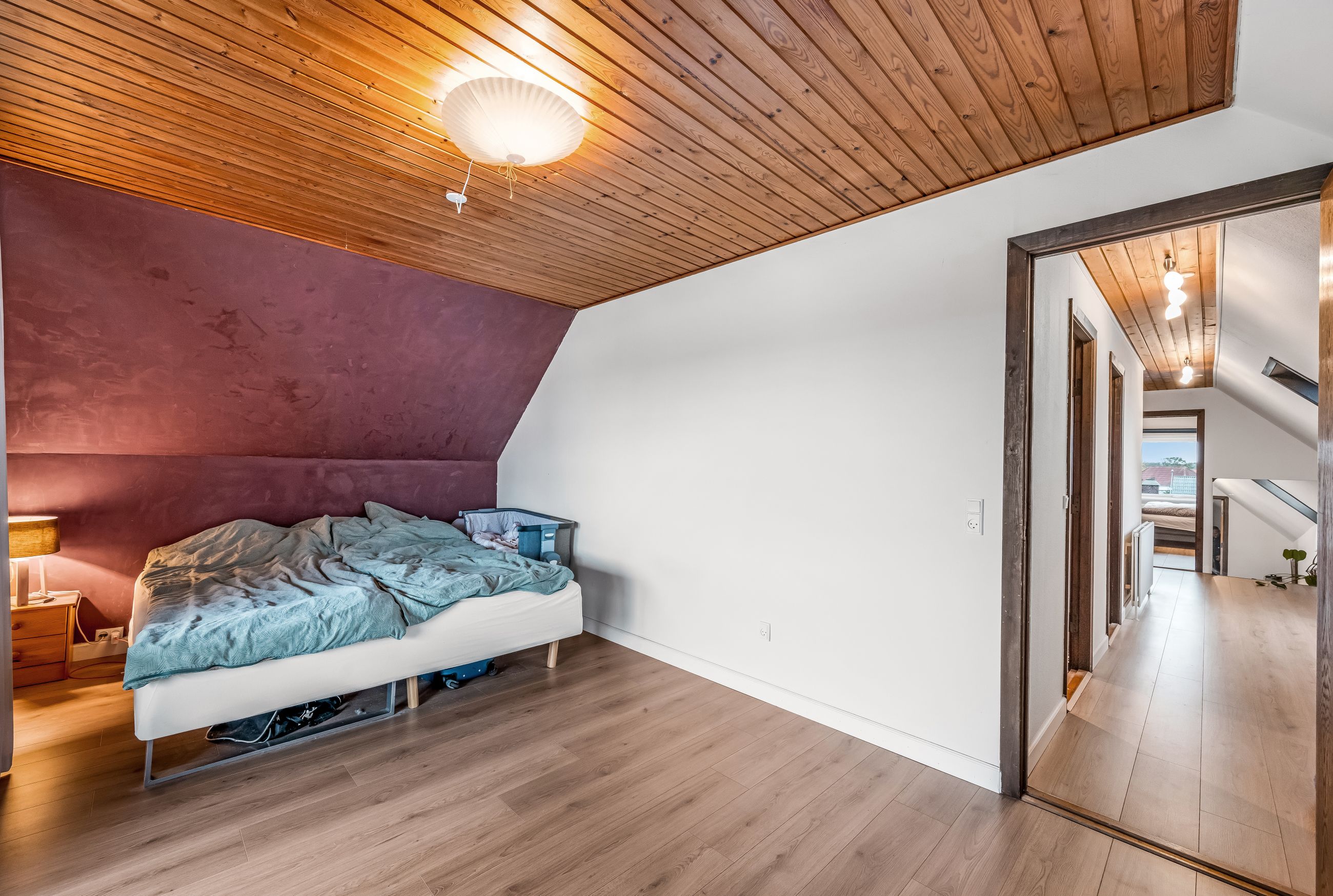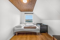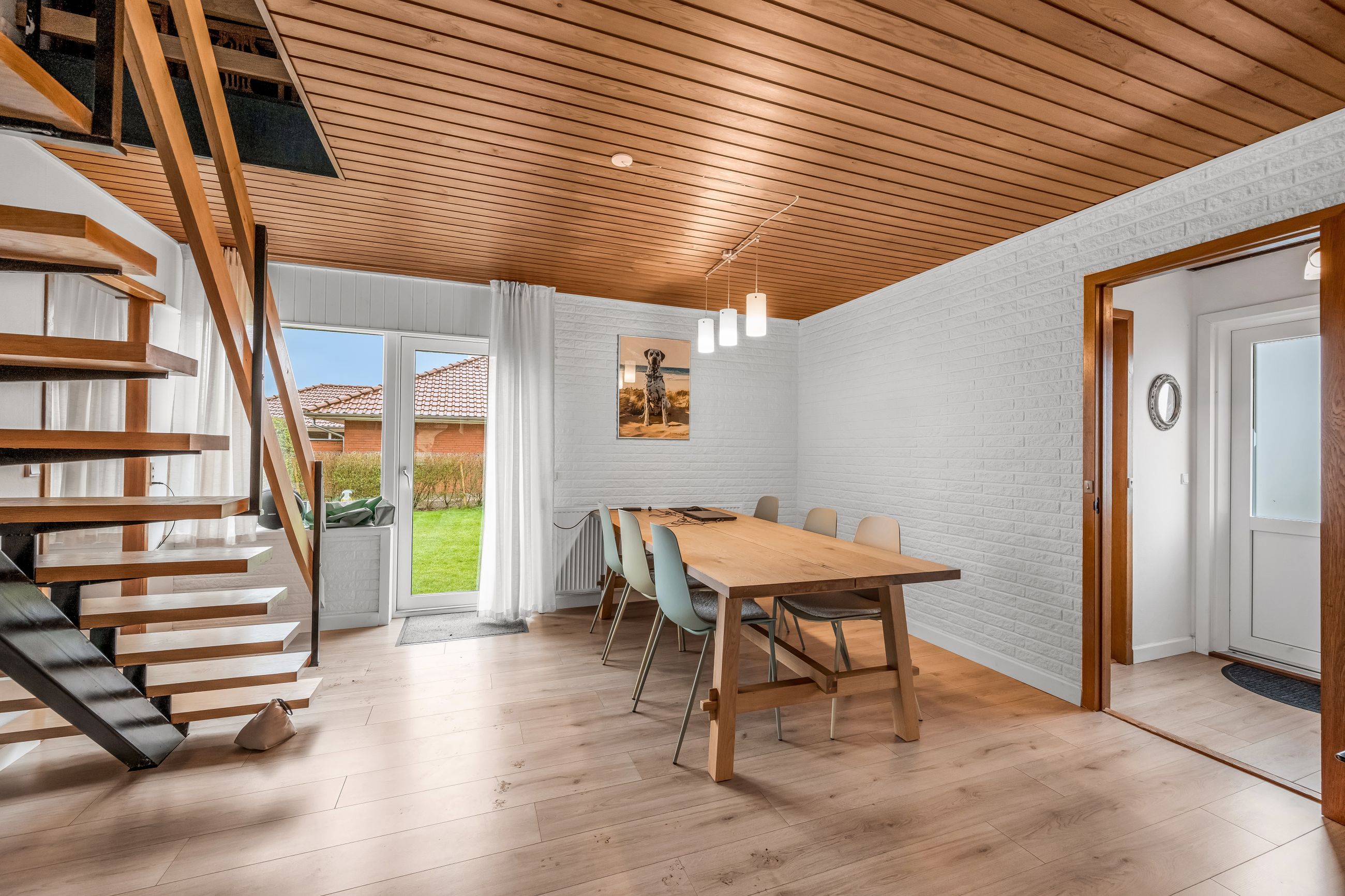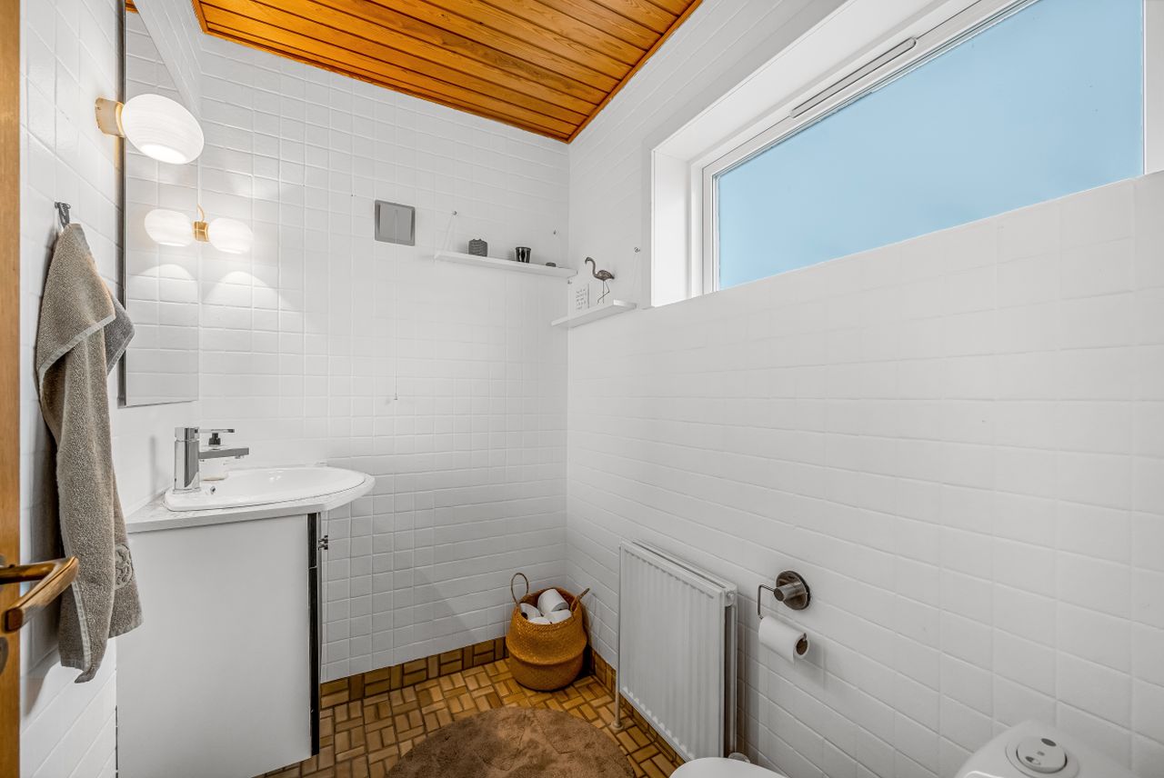 Tidstypisk 70'er villa opført i hvide kalksandsten og med eternitskifer som tagbelægning. Ejendommen er løbende renoveret og er i det store hele indflytningsklar. Huset har udnyttet tagetage med repos, to gavlværelser i den ene ende, et stort gavlværelse med adgang til altan i den anden ende. Desden er der ovenpå endnu et værelse samt et badeværelse.