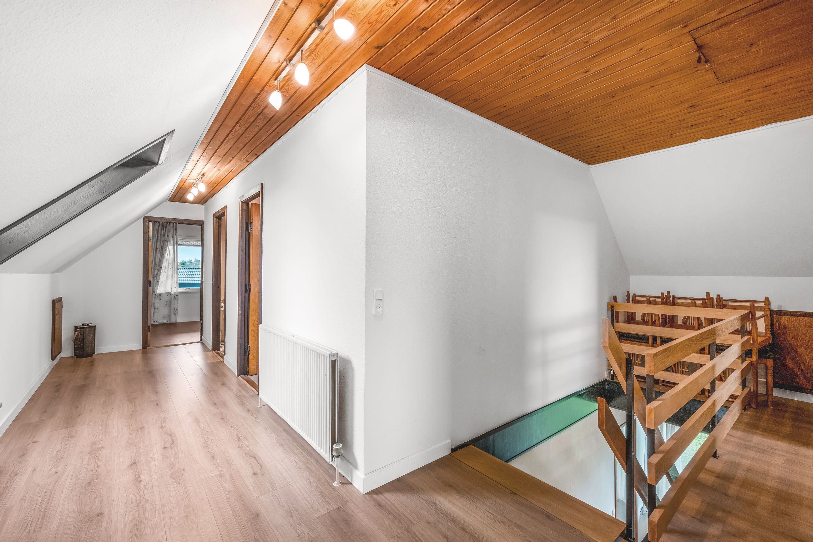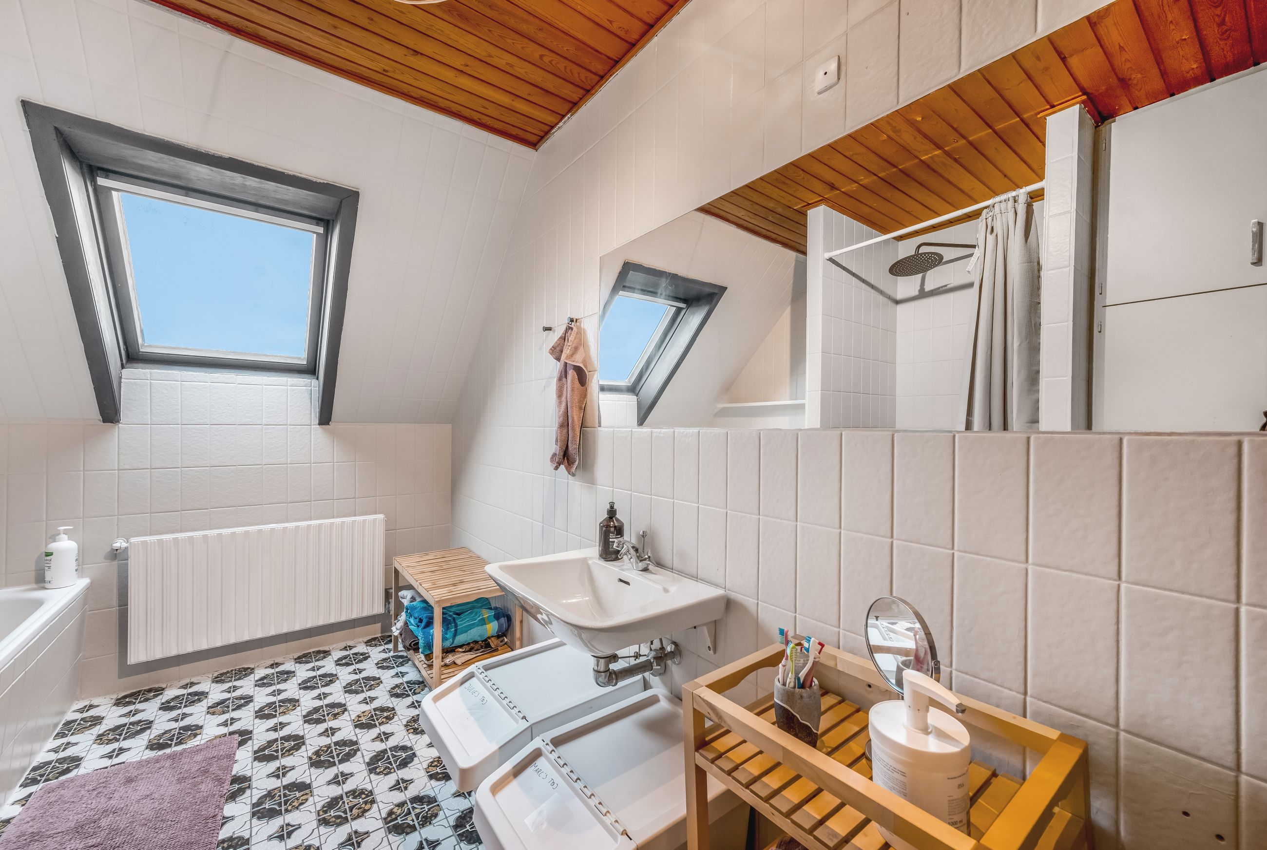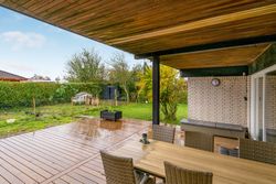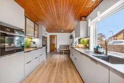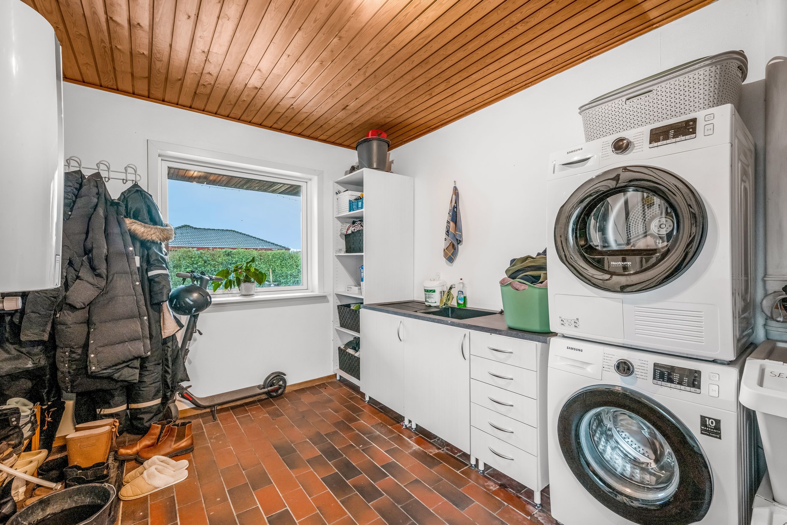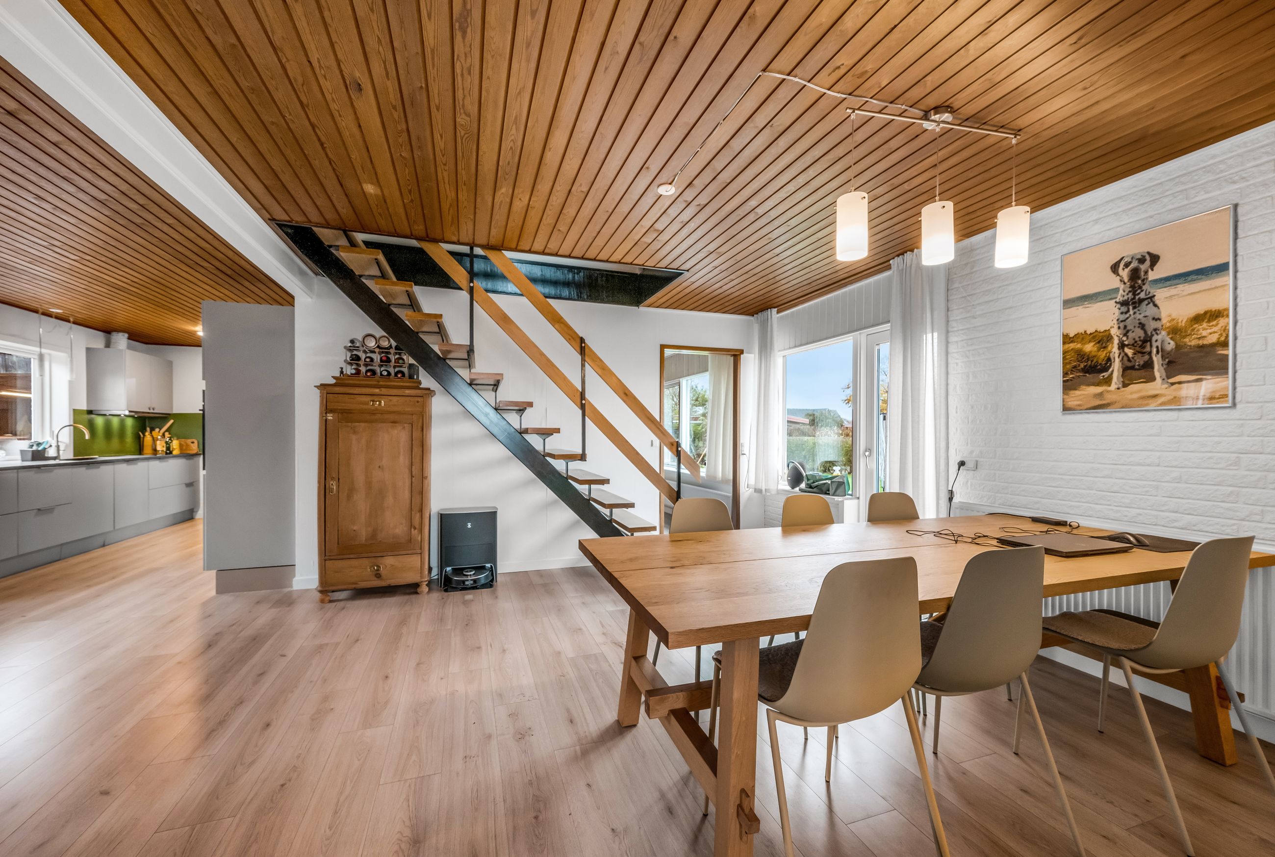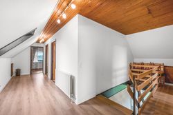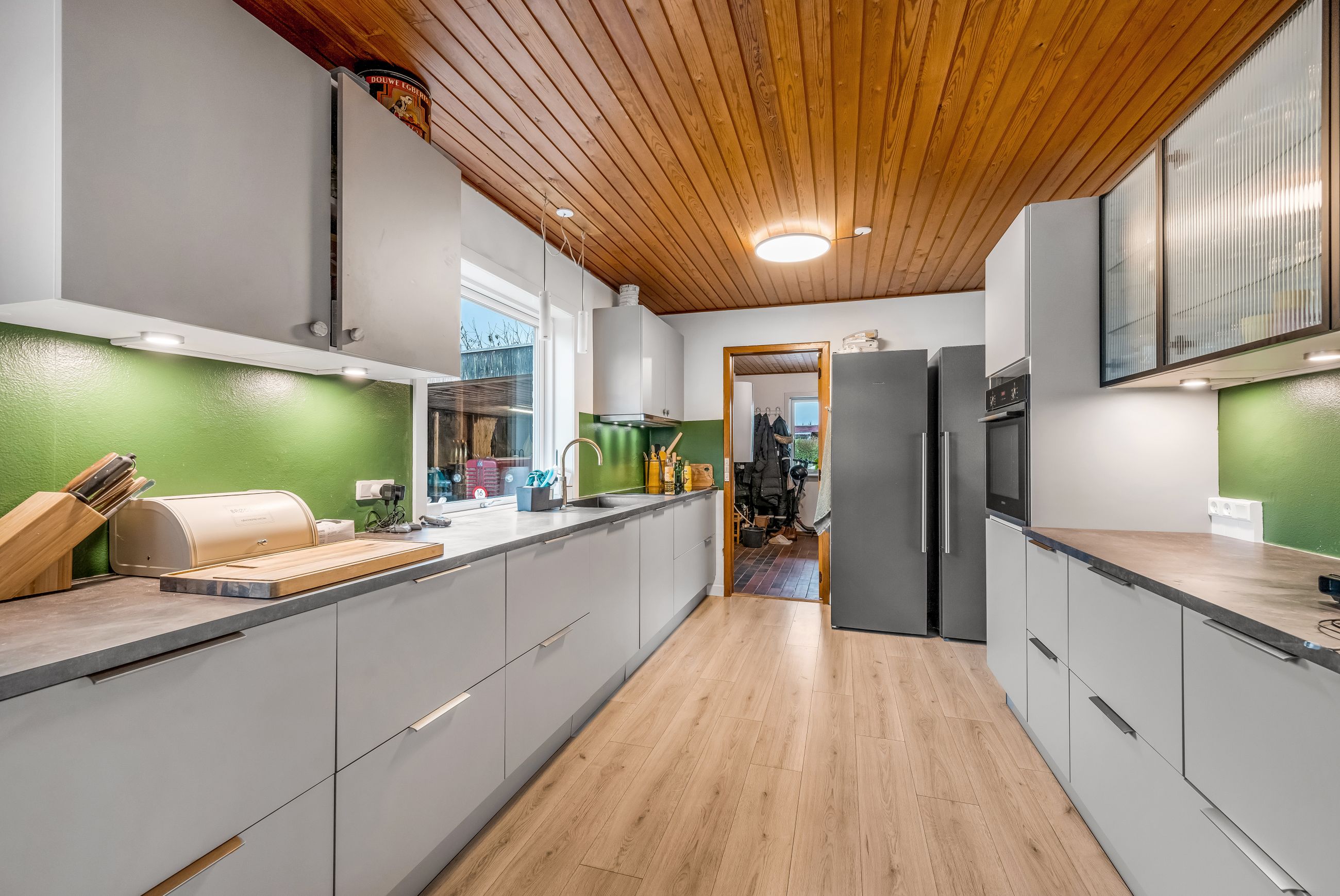 Tidstypisk 70'er villa opført i hvide kalksandsten og med eternitskifer som tagbelægning. Ejendommen er løbende renoveret og er i det store hele indflytningsklar. Huset har udnyttet tagetage med repos, to gavlværelser i den ene ende, et stort gavlværelse med adgang til altan i den anden ende. Desden er der ovenpå endnu et værelse samt et badeværelse.