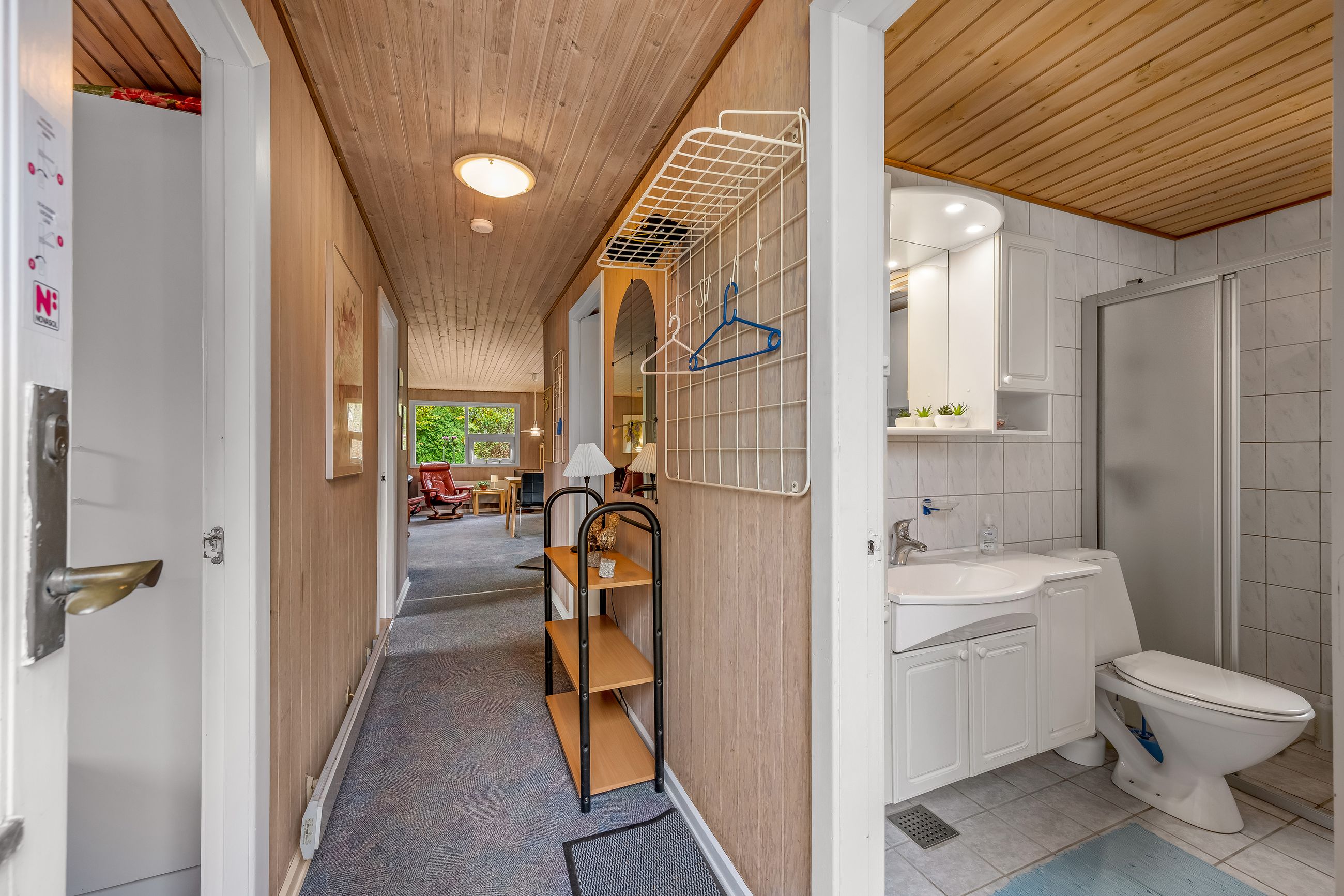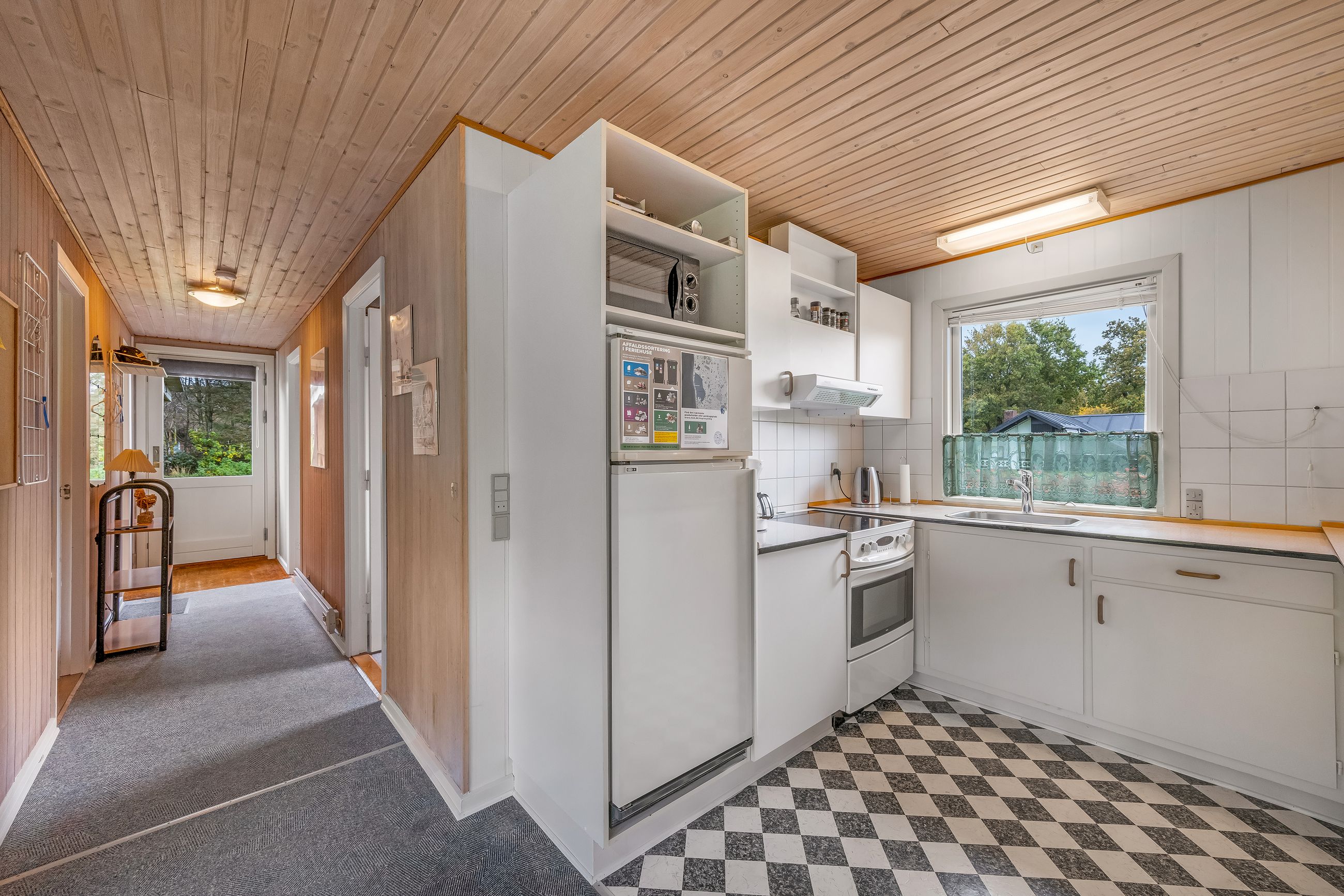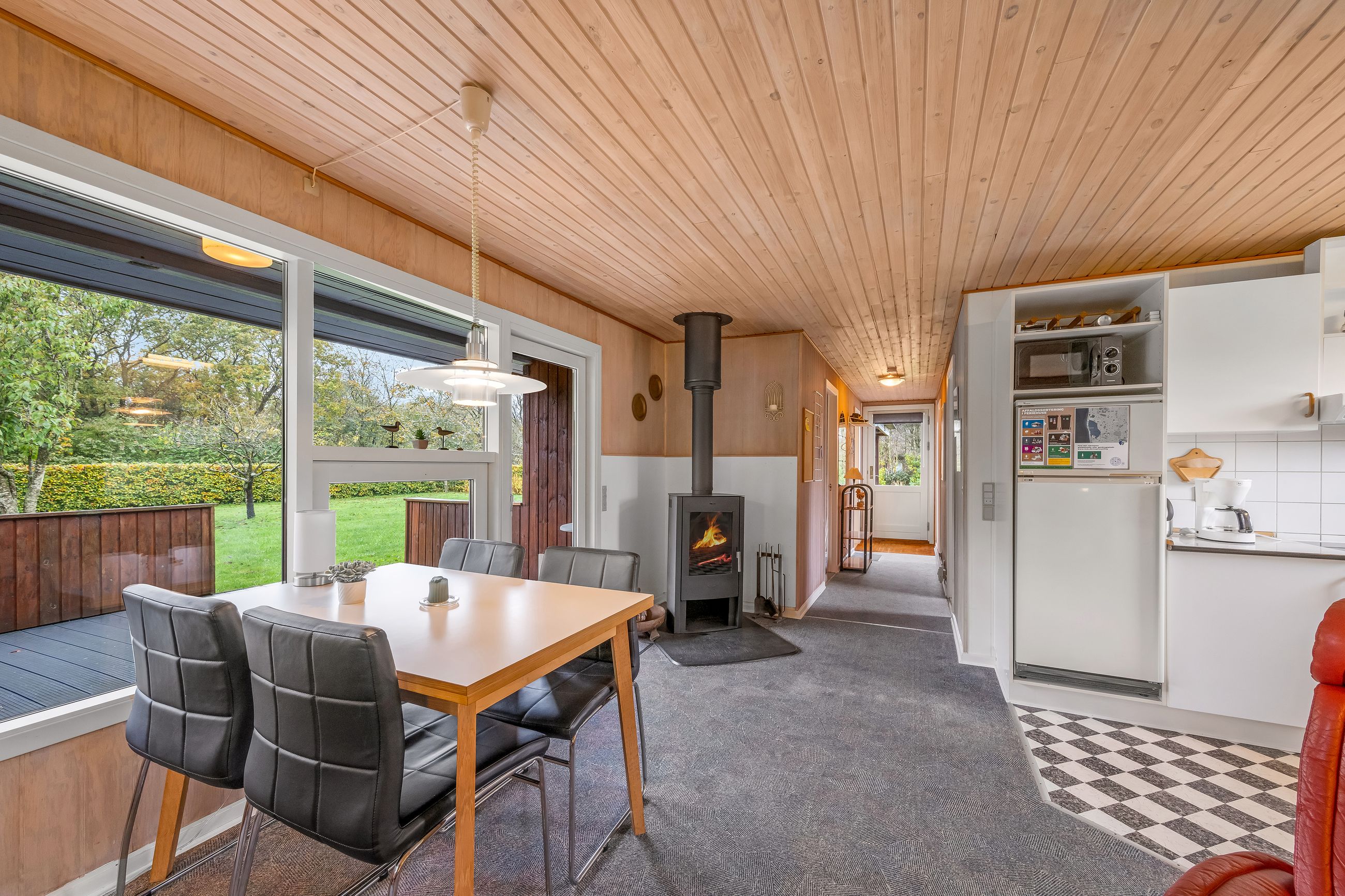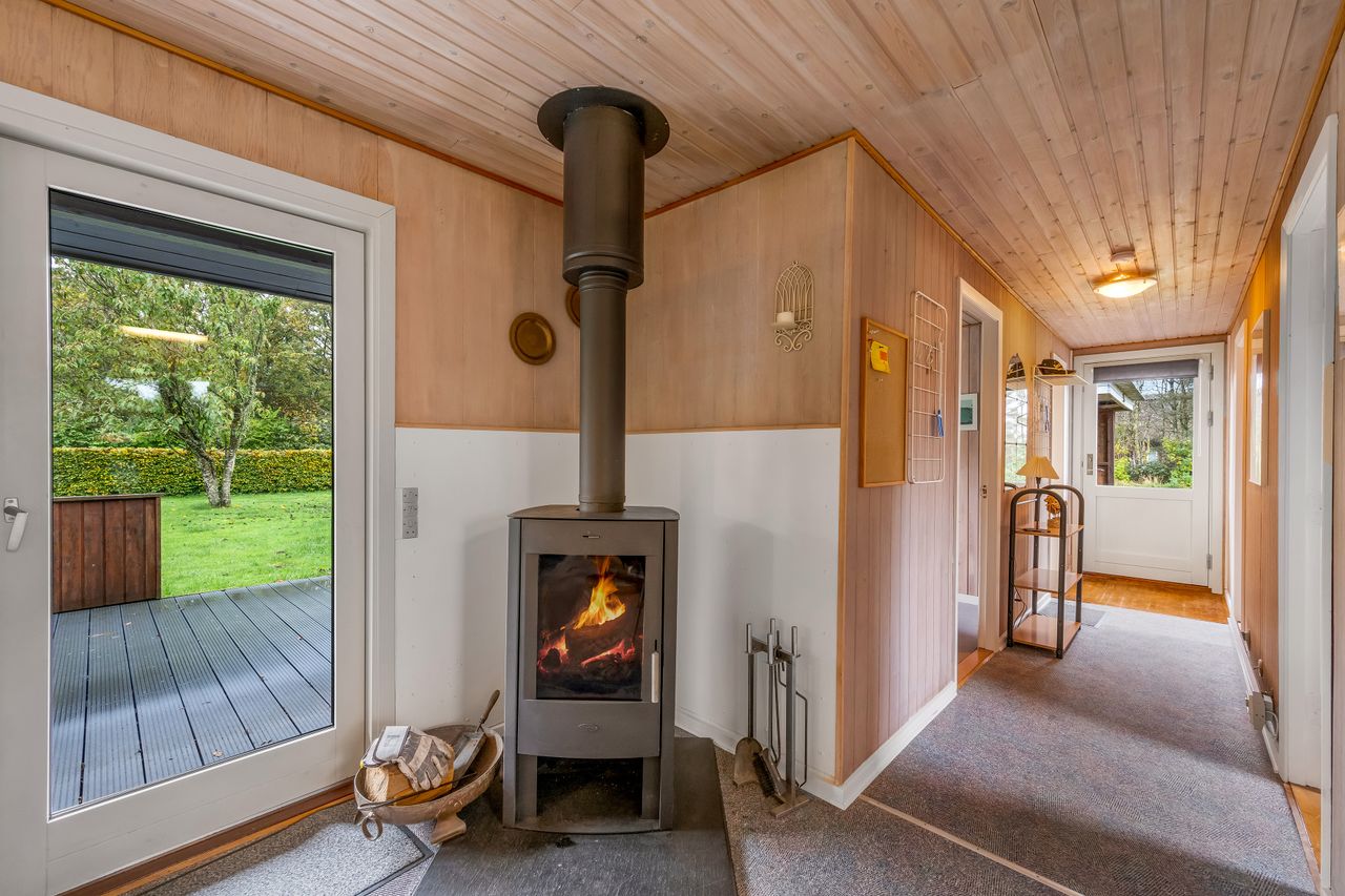 Huset er indrettet med: Indgang til entré med adgang til: Badeværelse med klinker fra gulv til loft samt bruseniche. Der er installeret vaskemaskine på badeværelset. 2 gode værelser med hver to enkeltsenge, soveværelse med dobbeltseng og skabe. Dejlig opholdsstue og spiseafdeling med nyere brændeovn samt et køkken med hvidmalede skabslåger. Fra alrummet er der adgang til delvist overdækket terrasse.