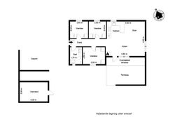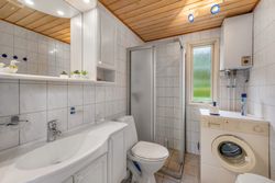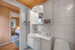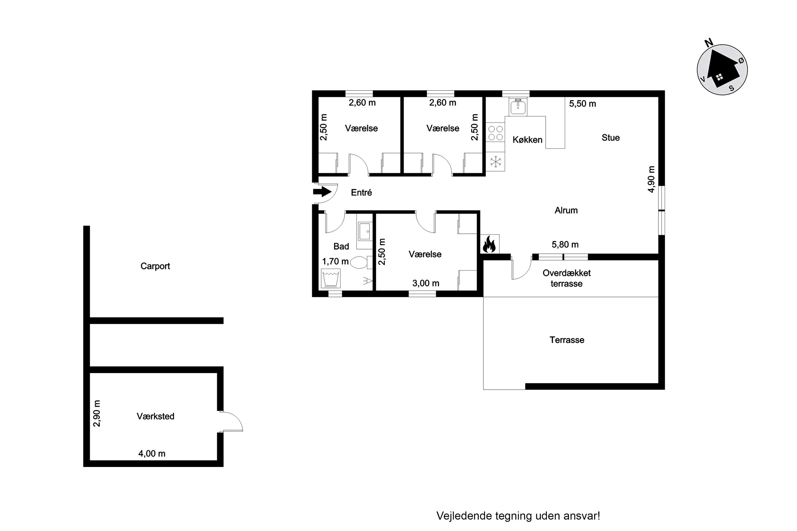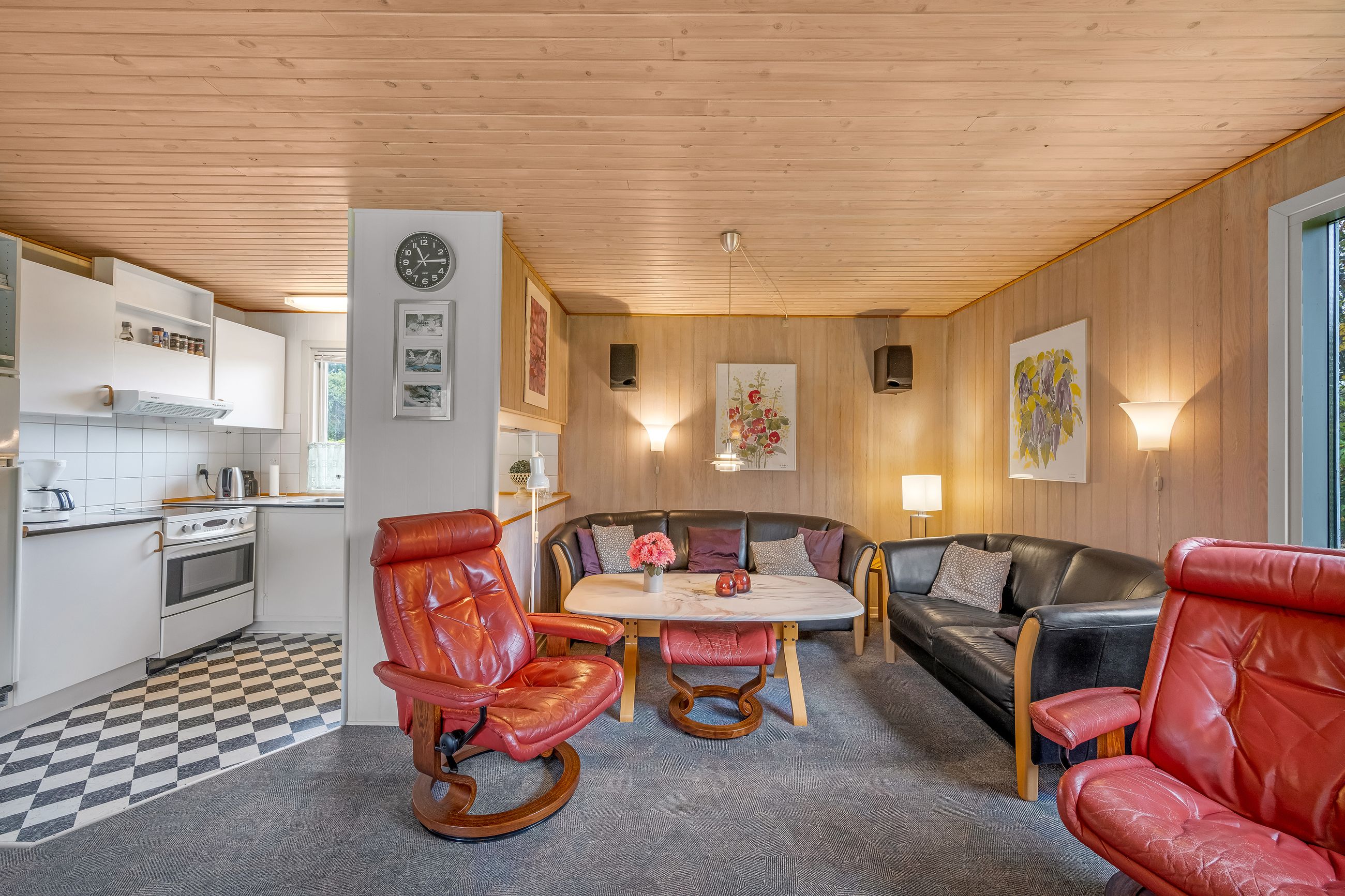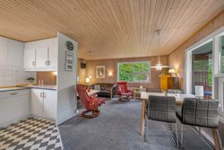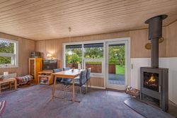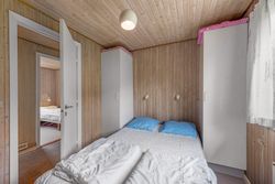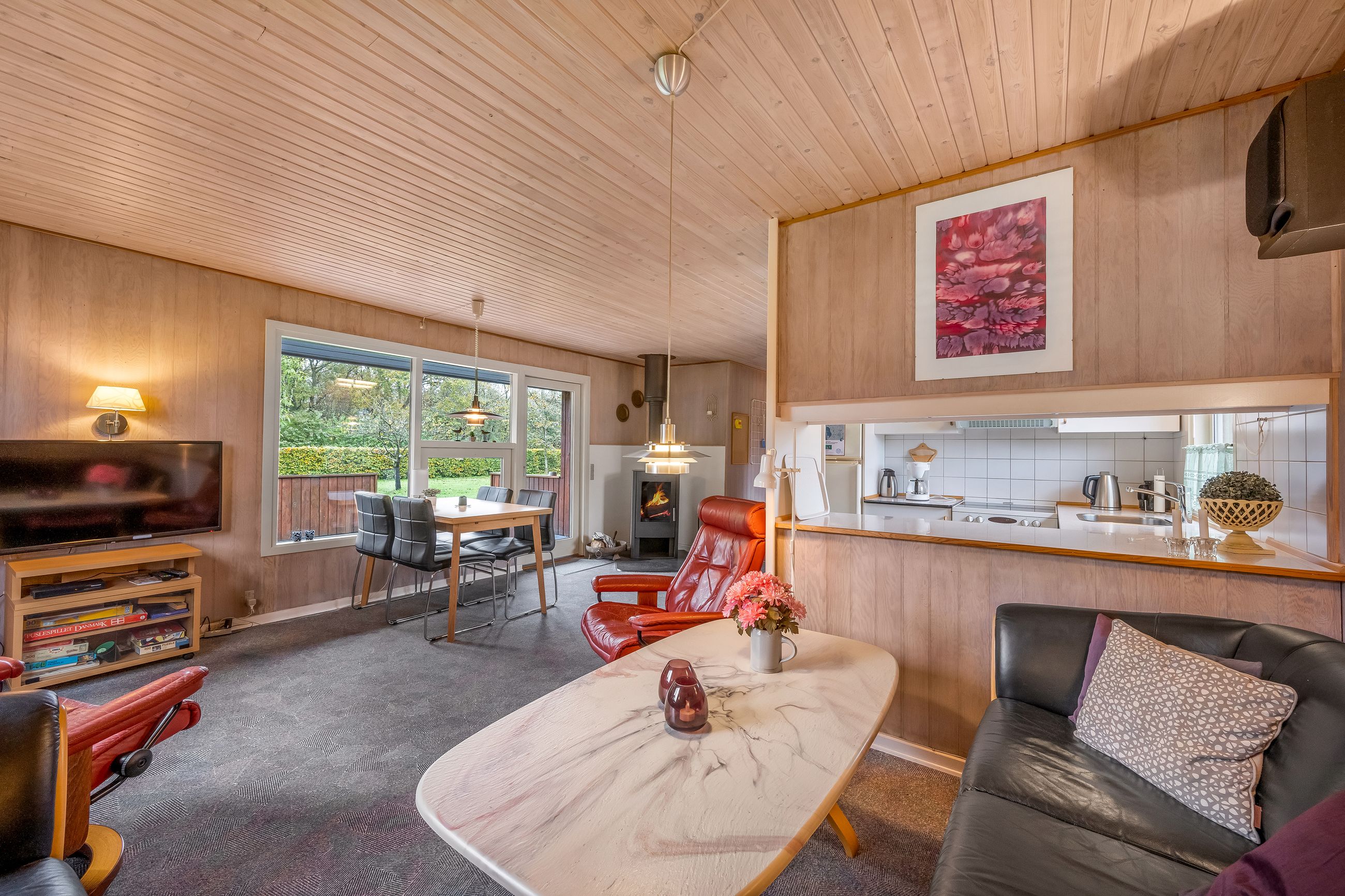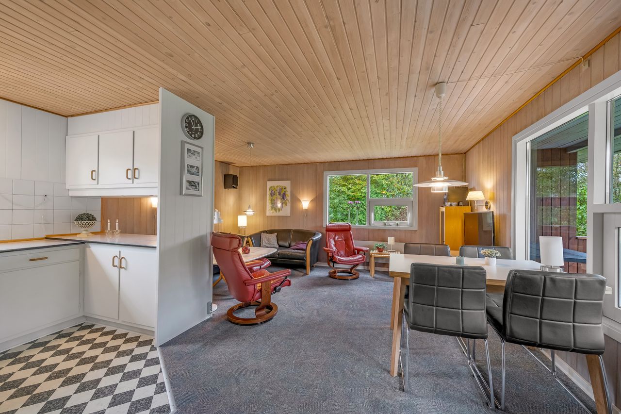 Huset er indrettet med: Indgang til entré med adgang til: Badeværelse med klinker fra gulv til loft samt bruseniche. Der er installeret vaskemaskine på badeværelset. 2 gode værelser med hver to enkeltsenge, soveværelse med dobbeltseng og skabe. Dejlig opholdsstue og spiseafdeling med nyere brændeovn samt et køkken med hvidmalede skabslåger. Fra alrummet er der adgang til delvist overdækket terrasse.