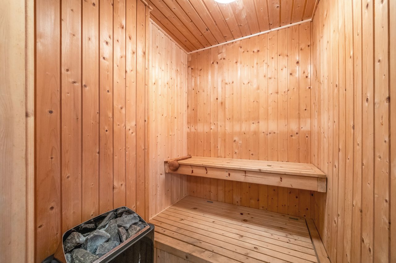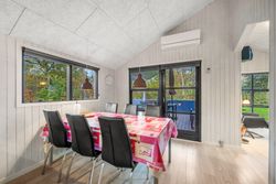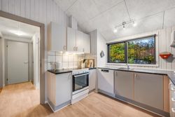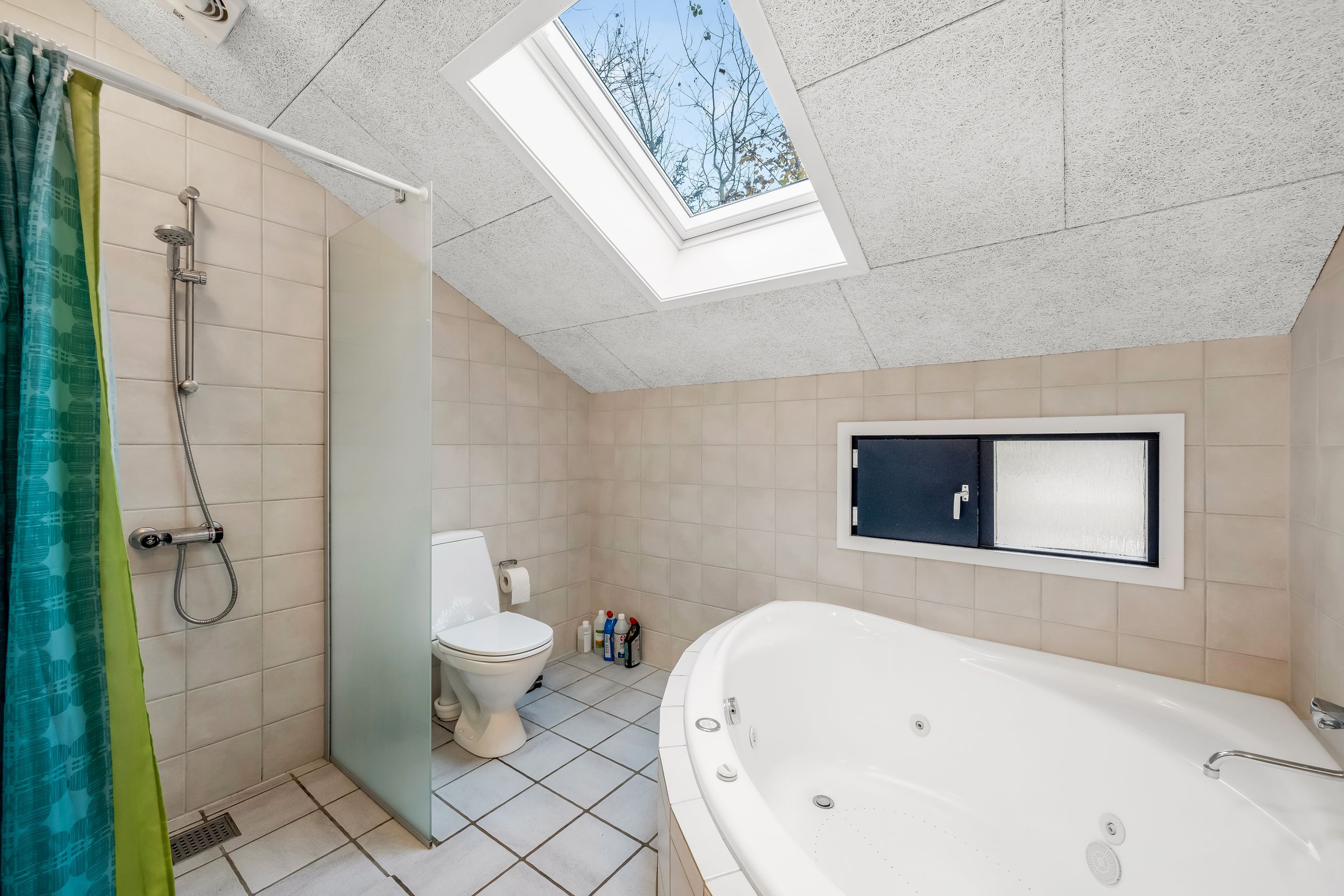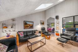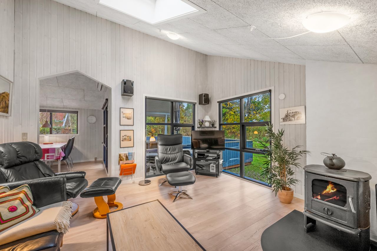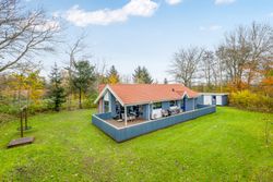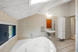 Indretning: Indretning til entré, hvorfra der er videre adgang til to gode værelser samt gæstetoilet, stort badeværelse med spa og sauna, soveværelse, dejligt køkken/alrum med spiseplads, stue med brændeovn med muret skorsten.