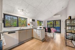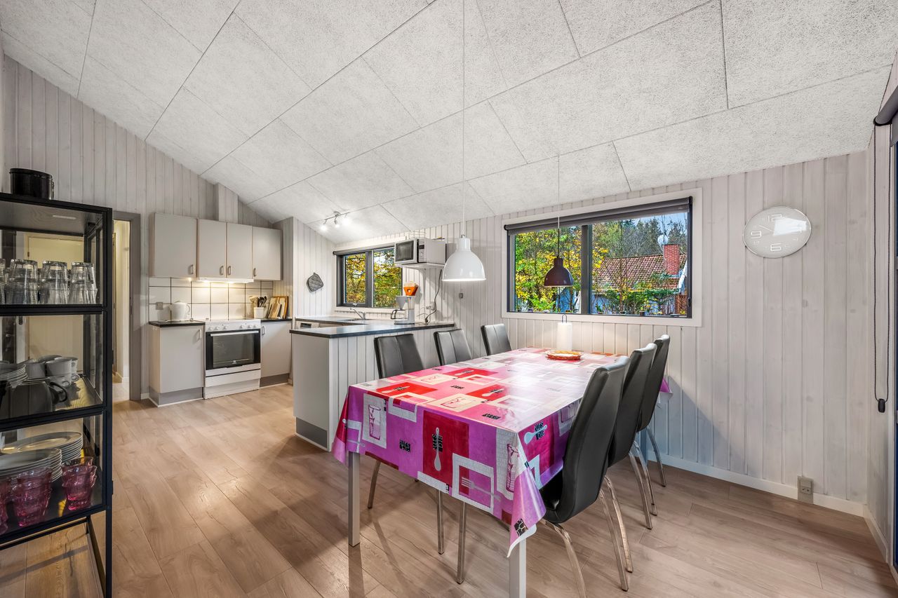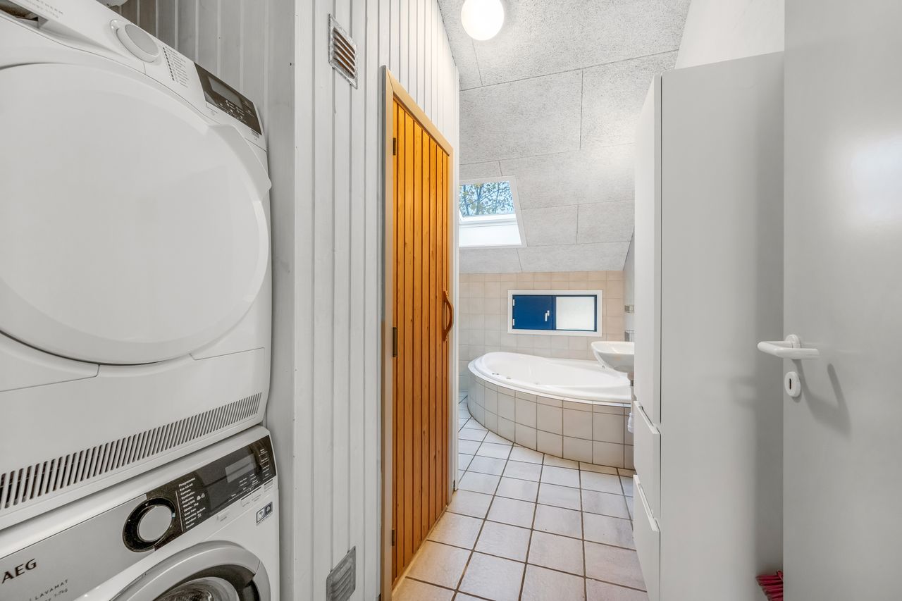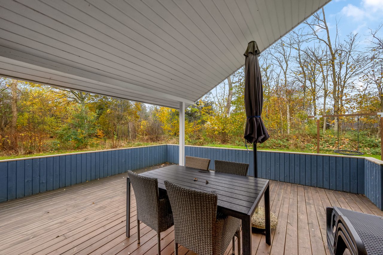 Indretning: Indretning til entré, hvorfra der er videre adgang til to gode værelser samt gæstetoilet, stort badeværelse med spa og sauna, soveværelse, dejligt køkken/alrum med spiseplads, stue med brændeovn med muret skorsten.