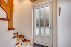 Bevæger man sig lidt længere ind i hall'en, finder man en fordelingsgang, der giver adgang til husets kælder samt en anden udvendig adgang til haven.