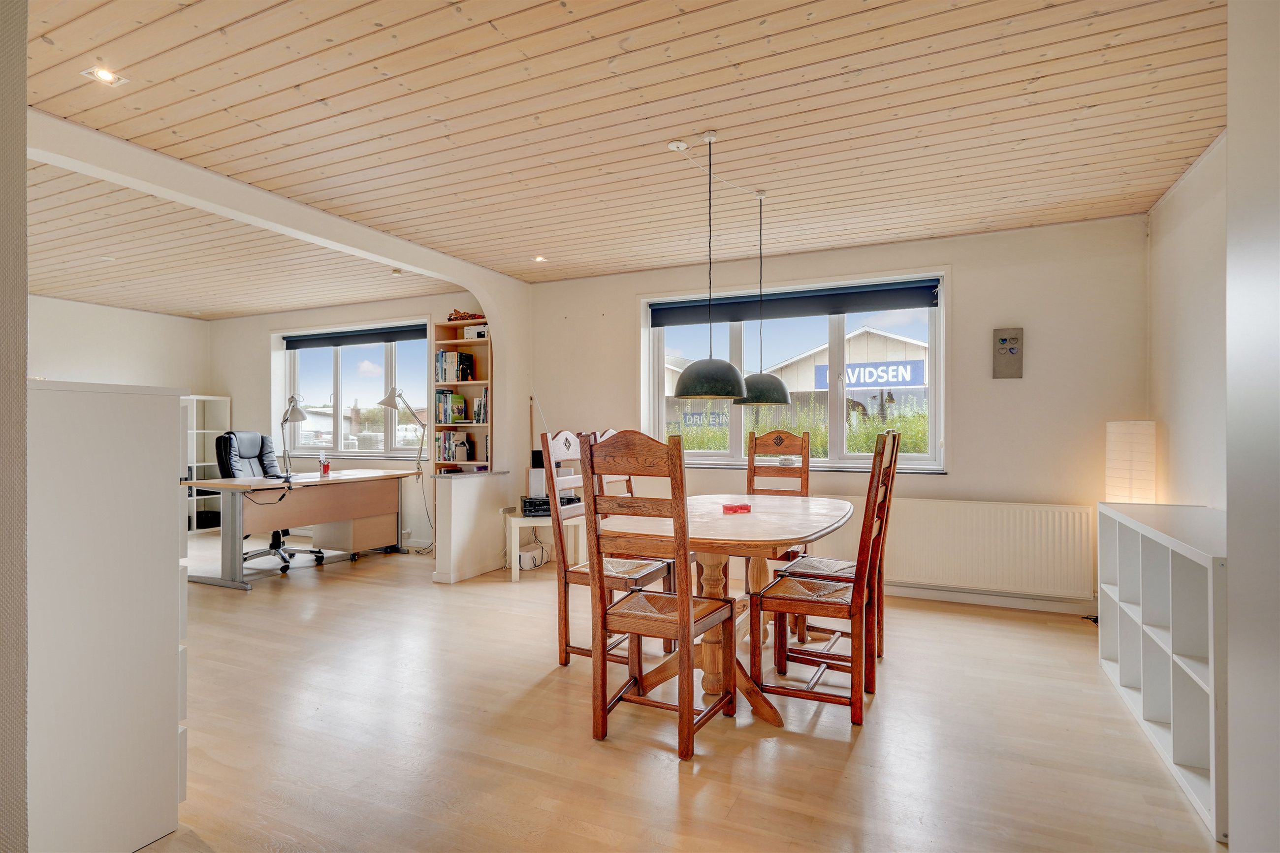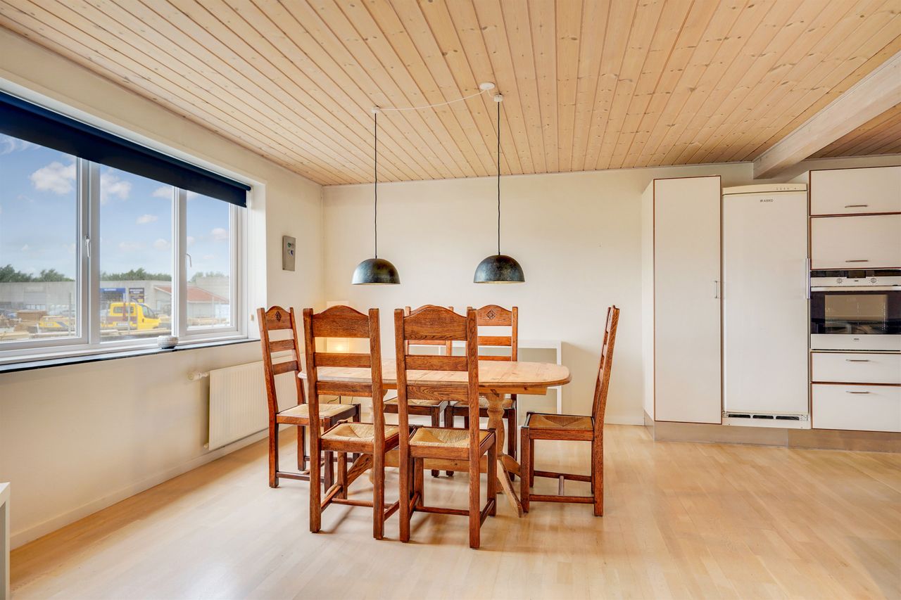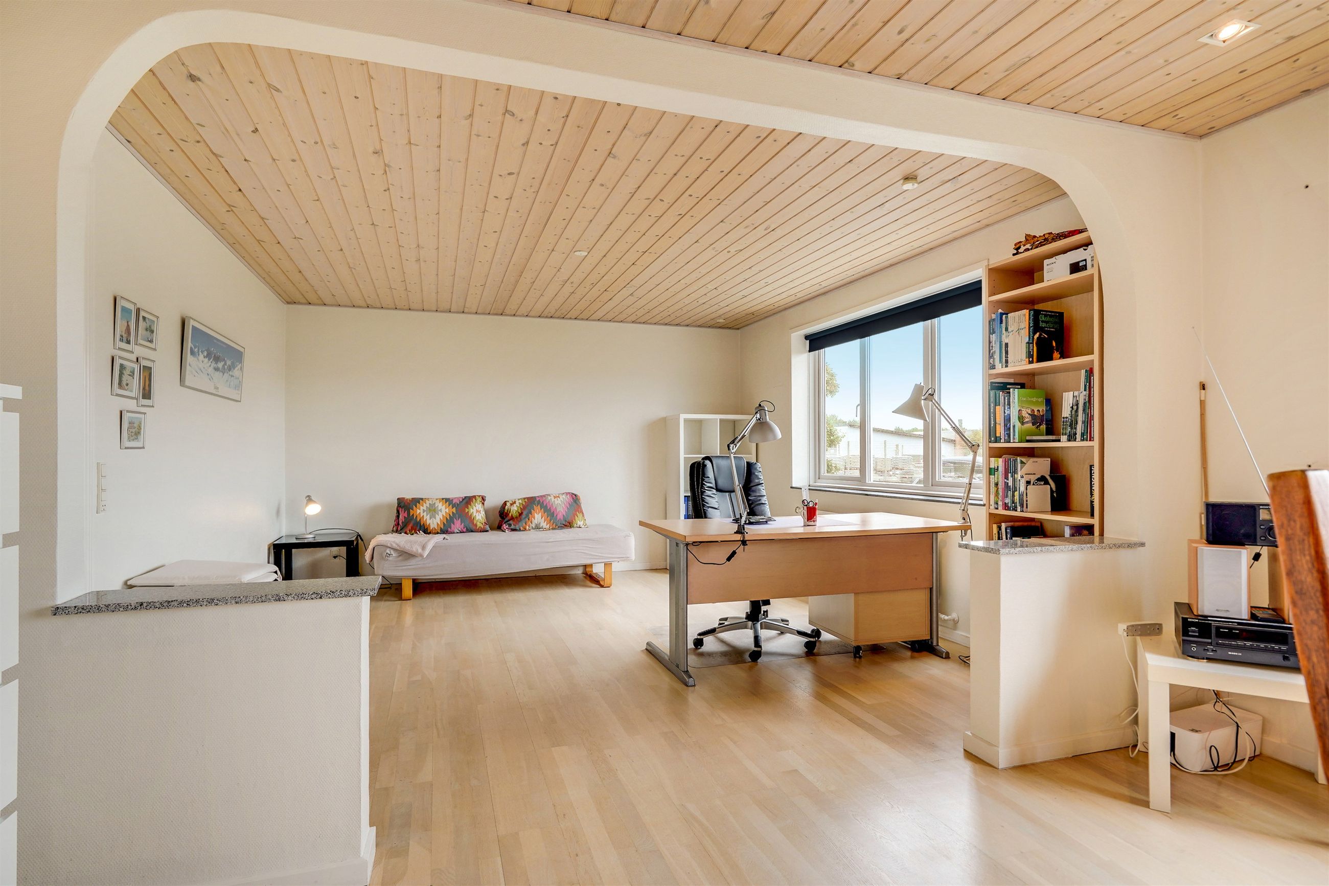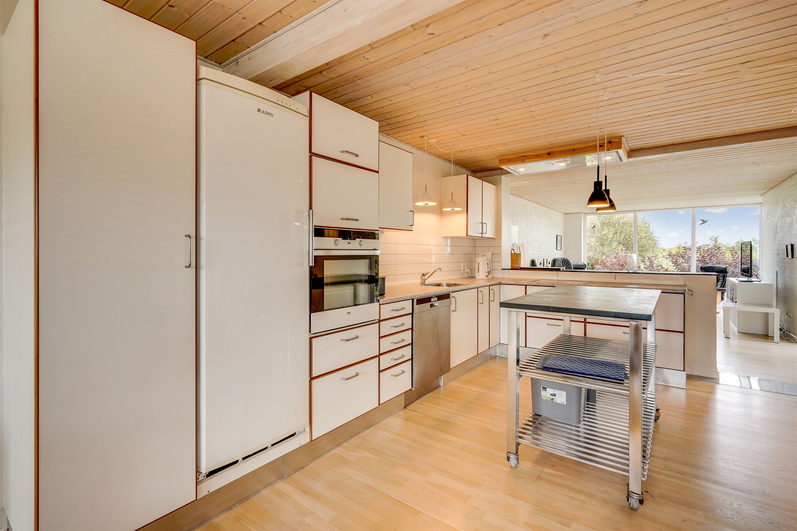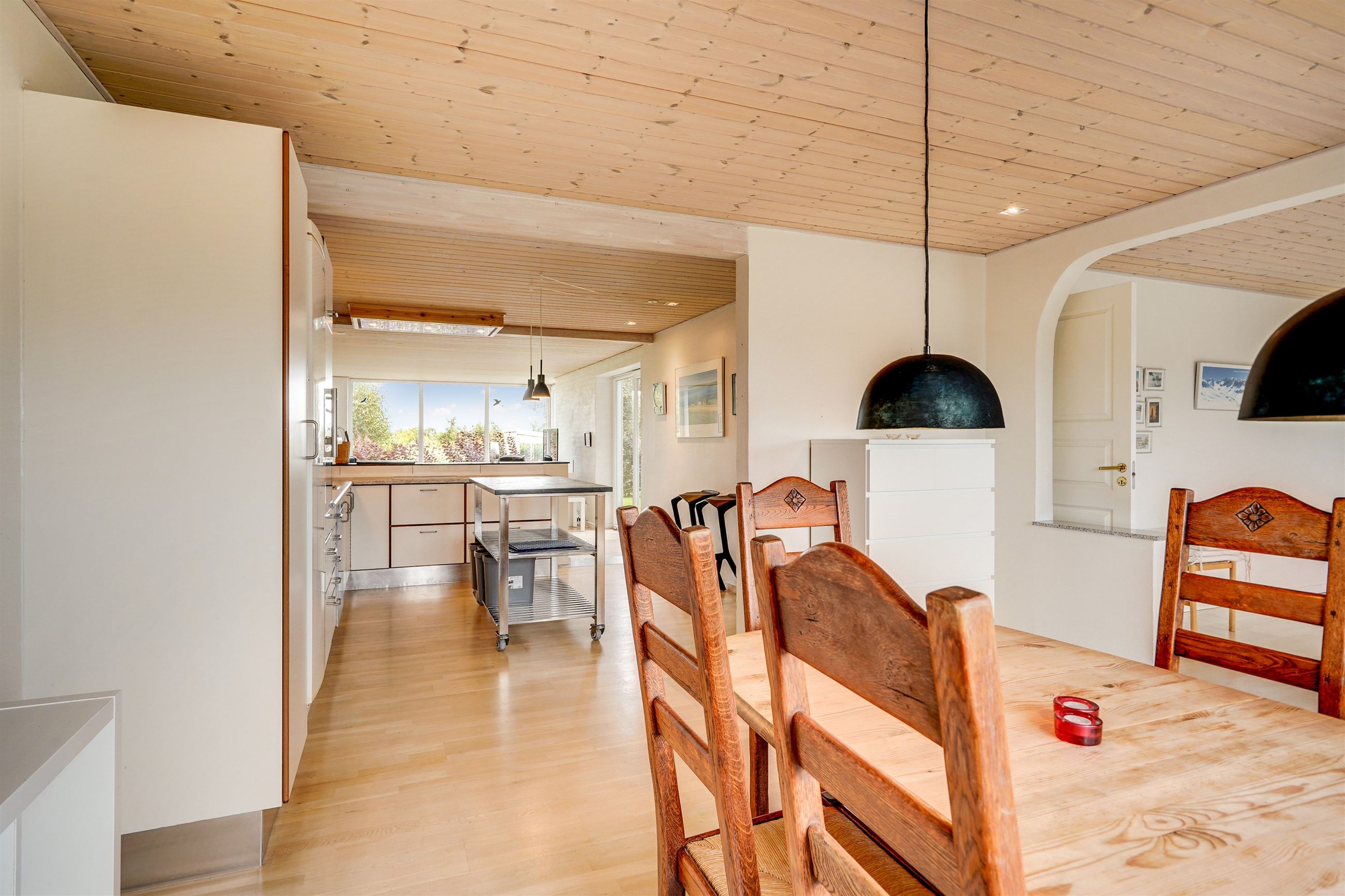 Stort og dejligt køkken/alrum. Der er inddraget et værelse, som kunne retableres, men den nuværende udnyttelse giver dog masser af luft i køkken/alrummet. Man har omkring 2010 udvidet huset mod nord med en dejlig tilbygning ud mod haven. Her er der nogle rigtig dejlige ekstra boligkvadratmeter, som dog hos kommunen er registreret som udestue. Dermed er de reelle boligkvadratmeter faktisk flere end angivet i salgsopstillingen. Over den beskrevne udestue blev der etableret en meget stor og virkelig skøn tagterrasse.
