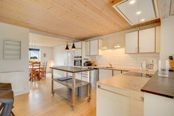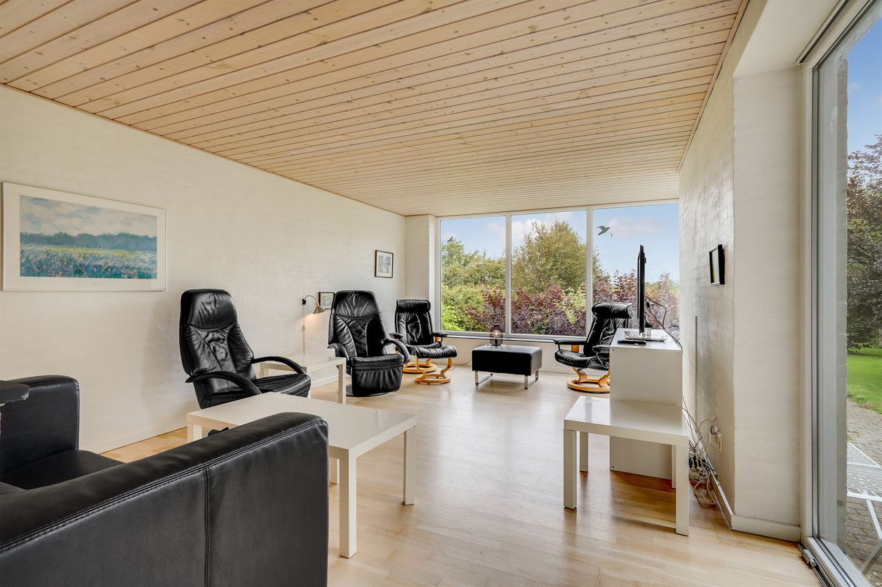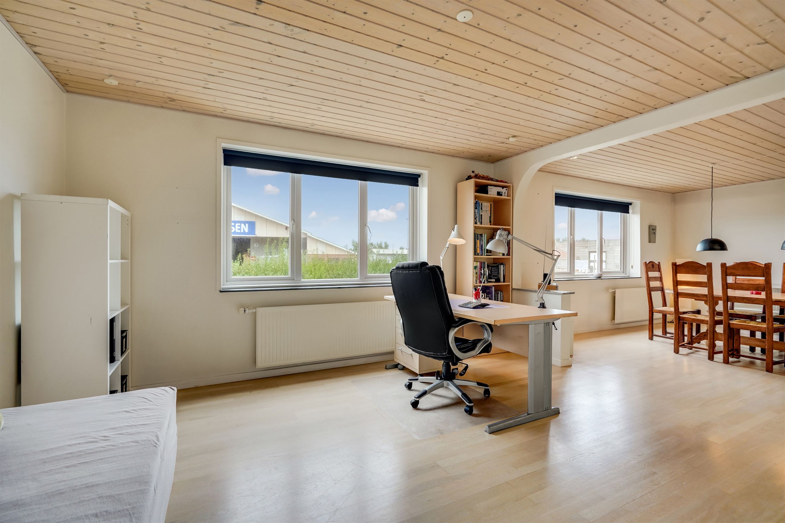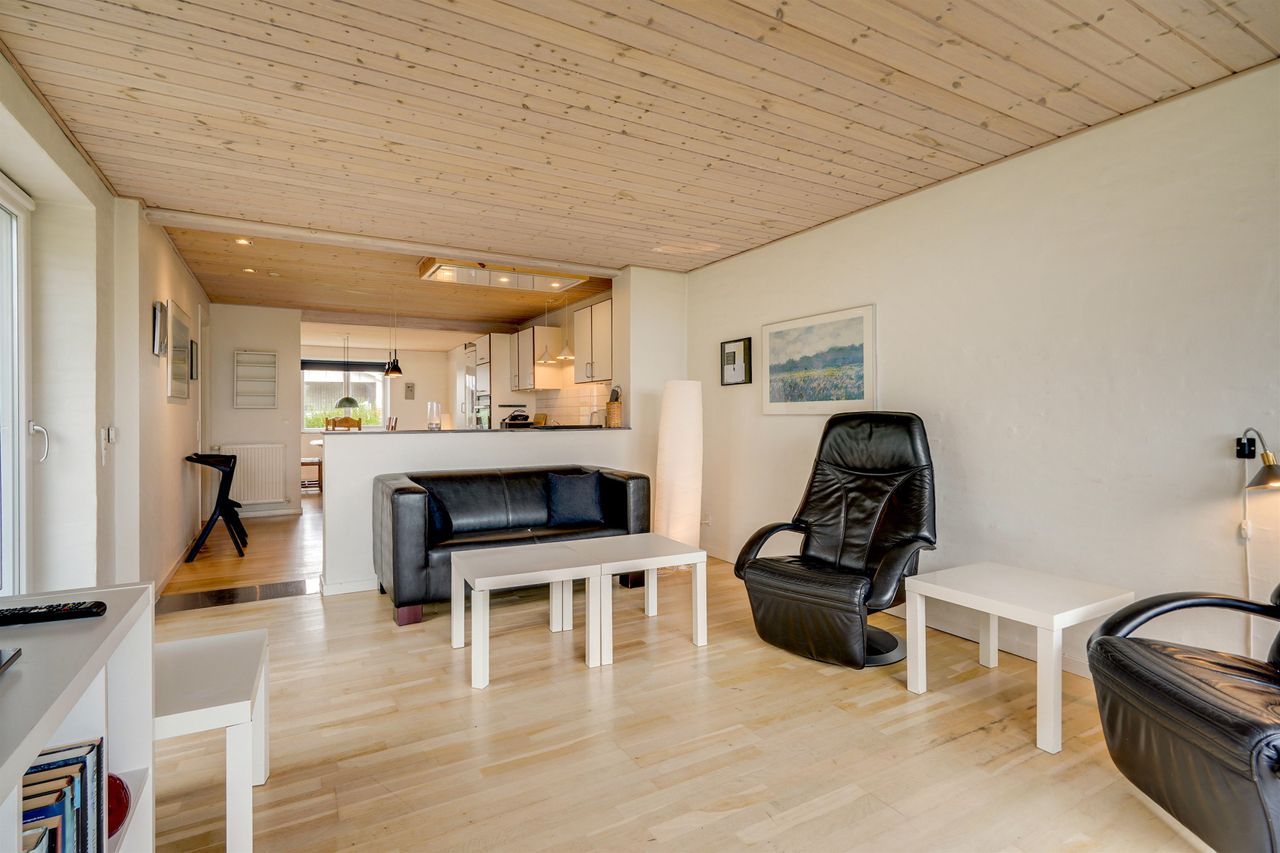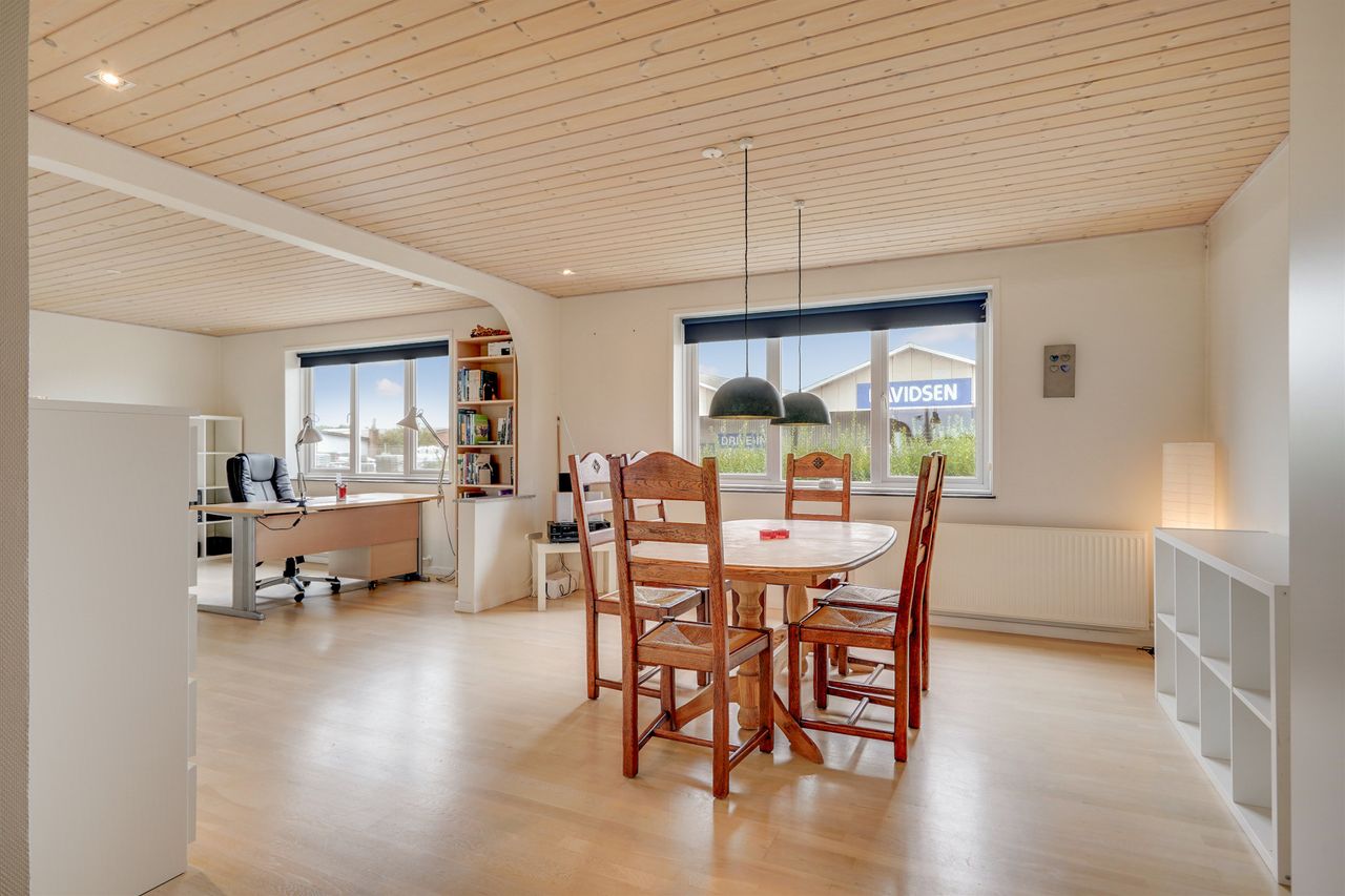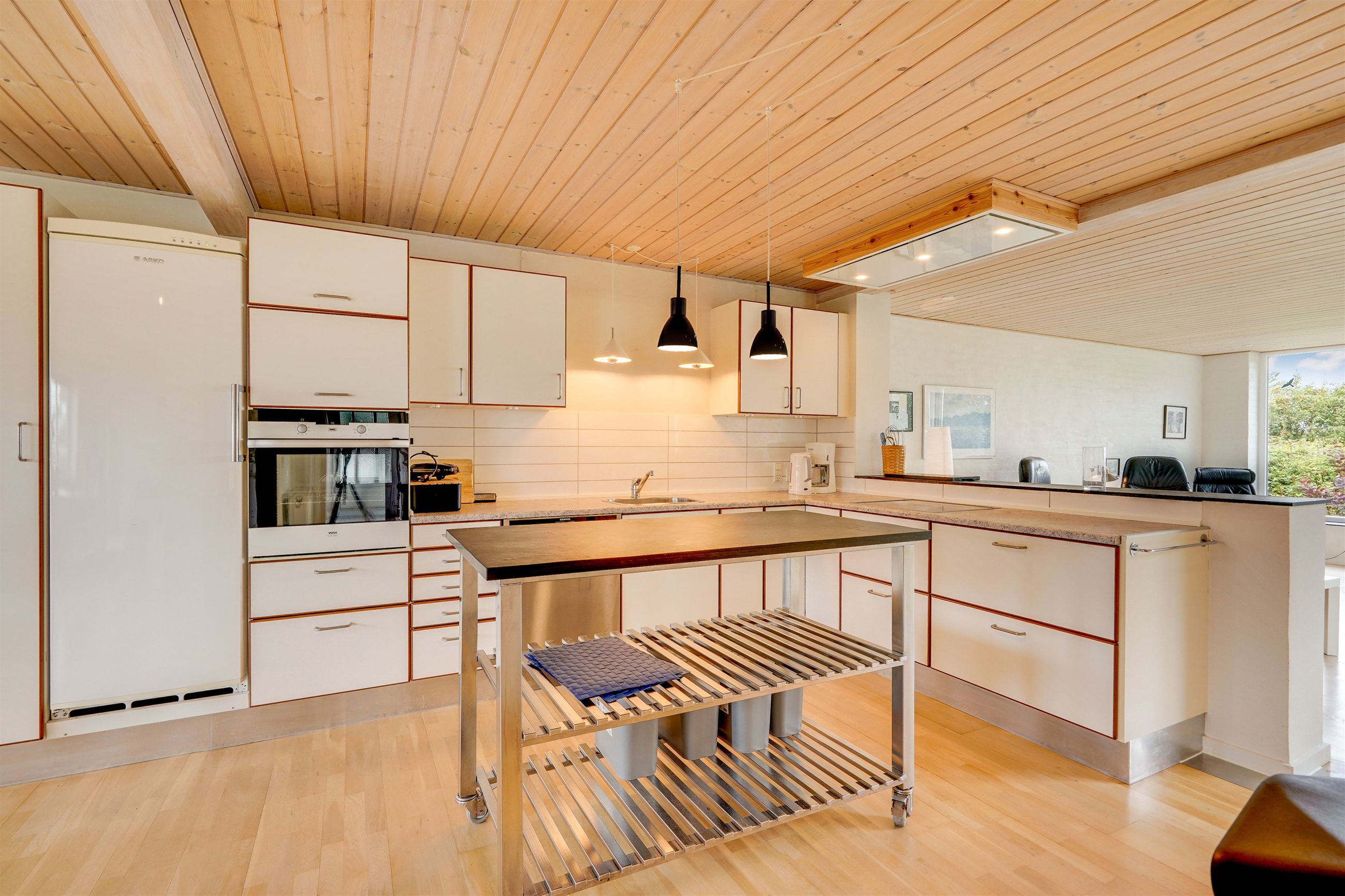 Stort og dejligt køkken/alrum. Der er inddraget et værelse, som kunne retableres, men den nuværende udnyttelse giver dog masser af luft i køkken/alrummet. Man har omkring 2010 udvidet huset mod nord med en dejlig tilbygning ud mod haven. Her er der nogle rigtig dejlige ekstra boligkvadratmeter, som dog hos kommunen er registreret som udestue. Dermed er de reelle boligkvadratmeter faktisk flere end angivet i salgsopstillingen. Over den beskrevne udestue blev der etableret en meget stor og virkelig skøn tagterrasse.