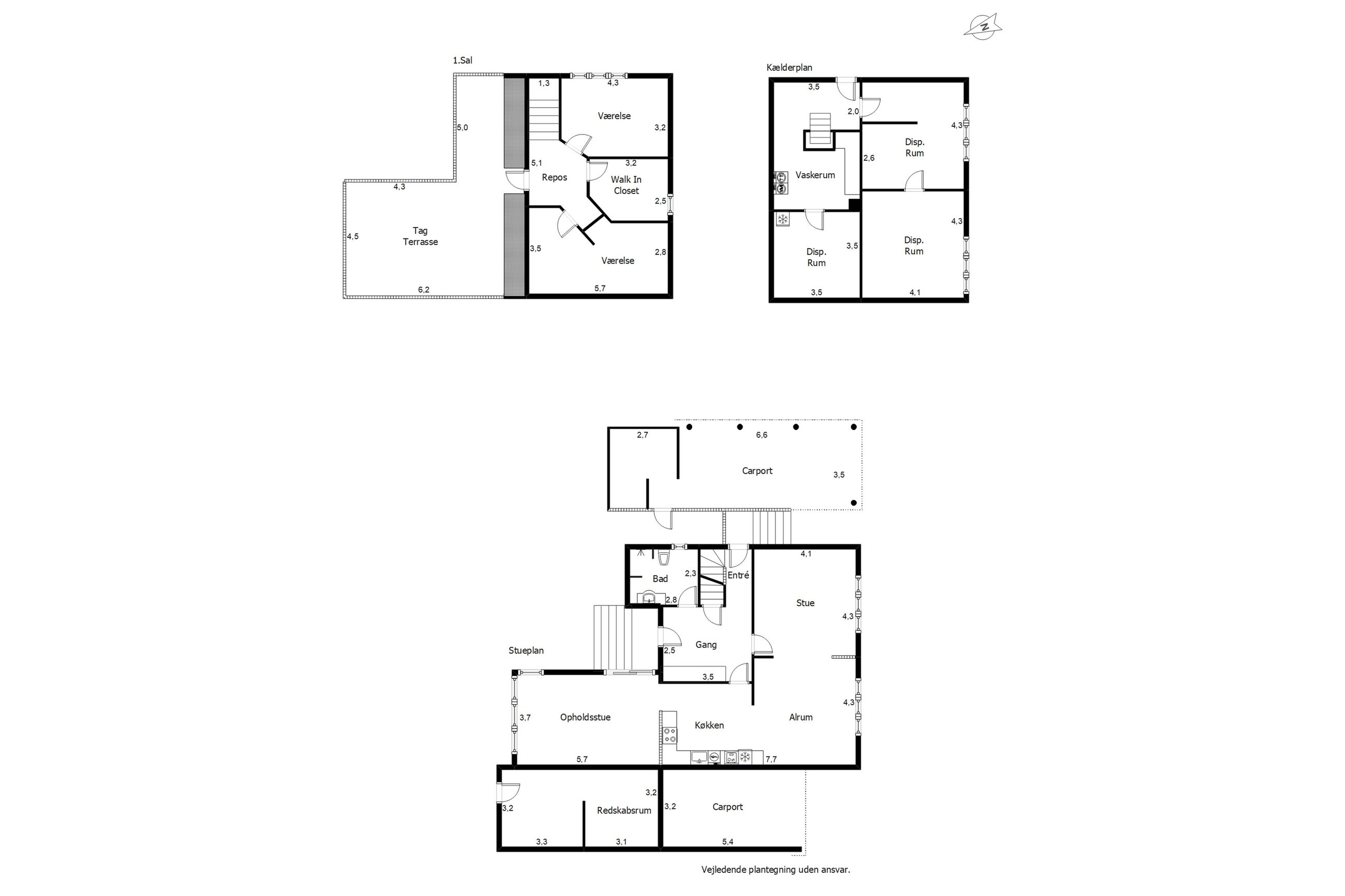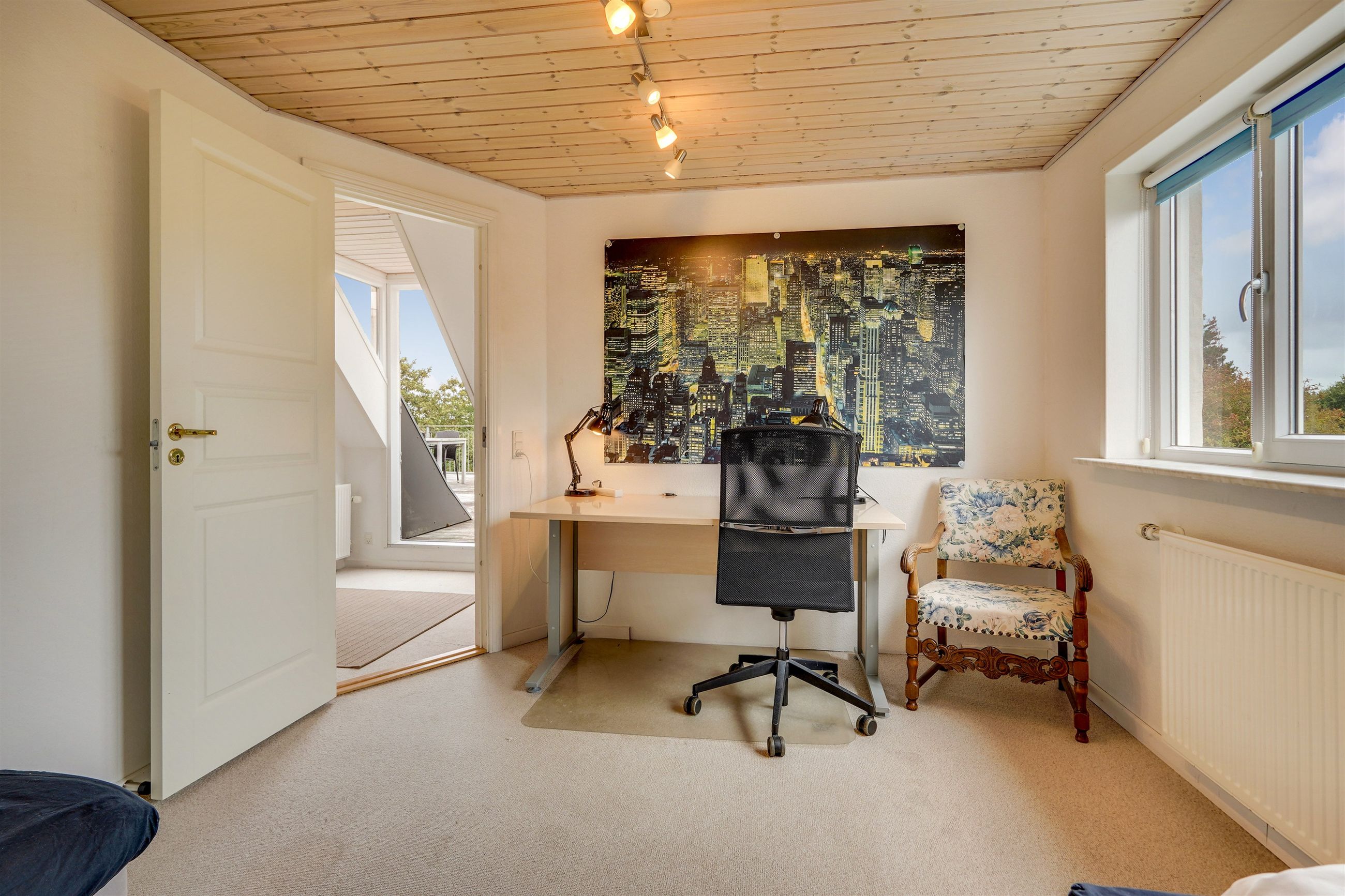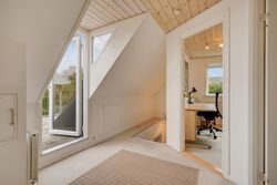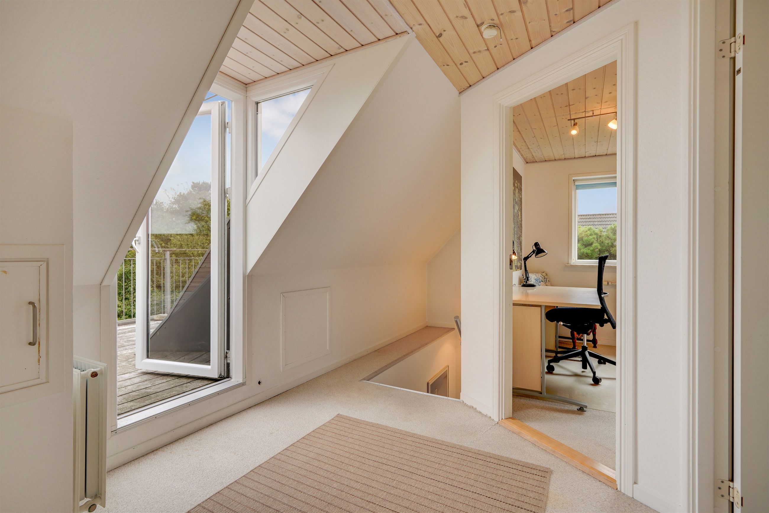 Tagetagen rummer endvidere et stort gavlværelse med stort vindue, disponibelt rum/børneværelse samt stort vestvendt soveværelse