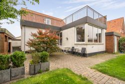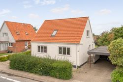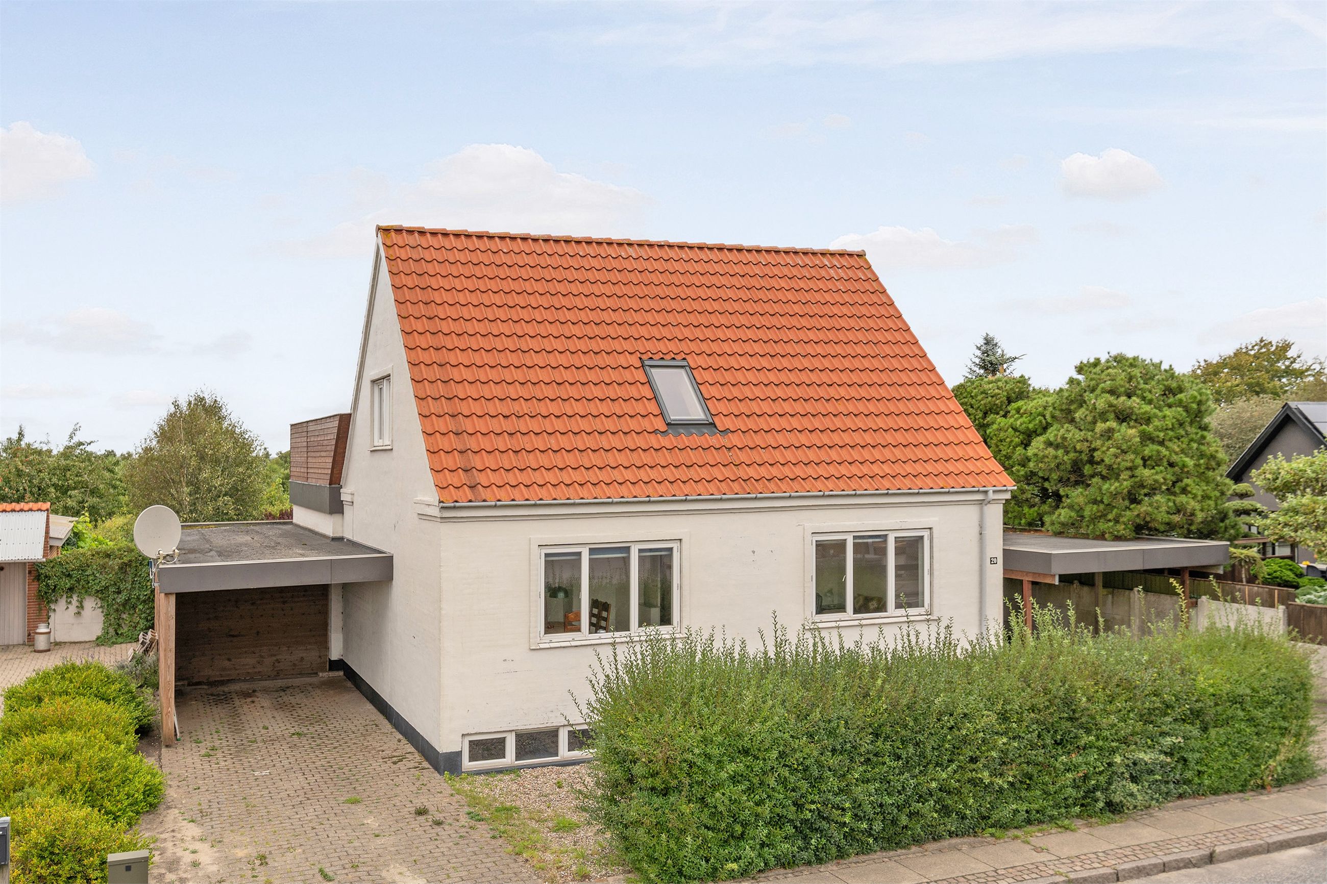På Vesterhavsvej 20 finder du denne smukke, vandskurede, hvidmalede villa, der har rødt tegltag. Vinduer og døre er af hvid PVC. Der er på begge sider af huset indkørsel fra Vesterhavsvej, og hver sin indkørsel er med egen carport.