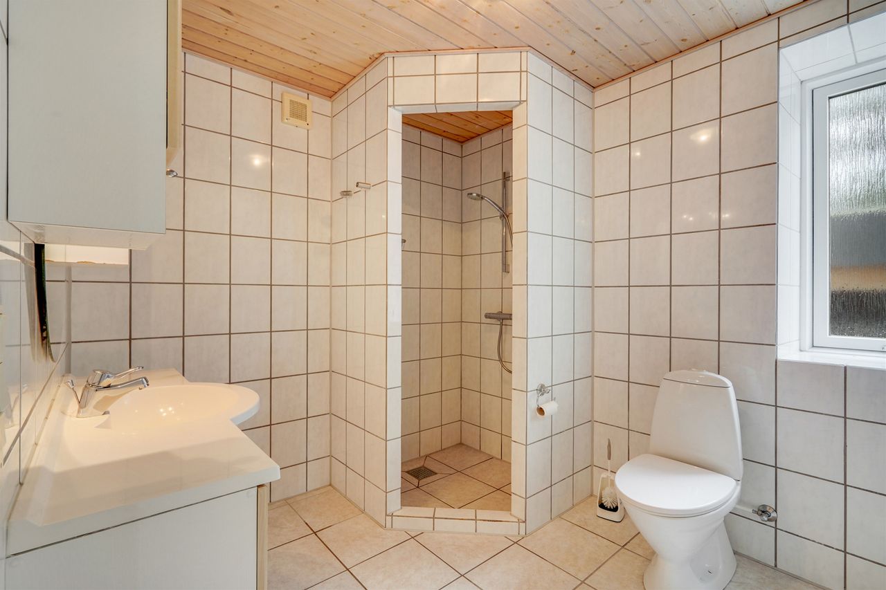 Fordelingsgangen fører endvidere til et rigtig dejligt badeværelse med fliser fra gulv til loft samt stor bruseniche. Der er naturligvis gulvvarme.