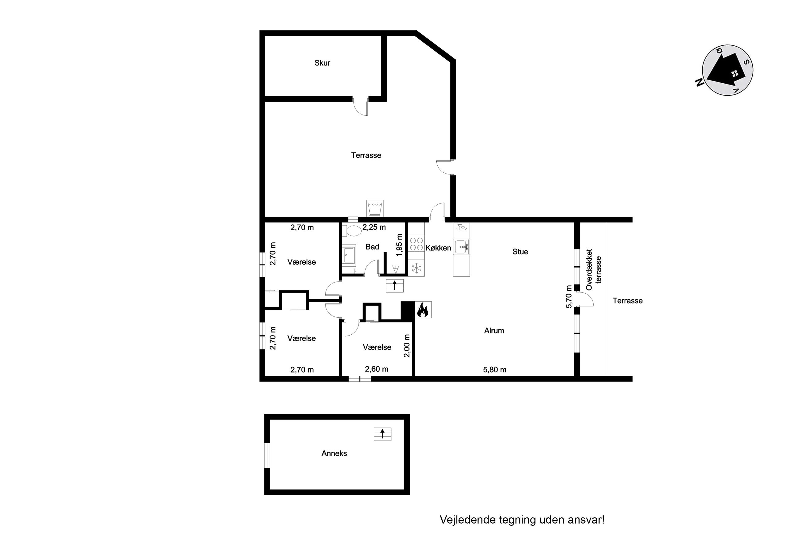 Huset er tilmeldt udlejning via Esmark. Dog kun i sommerhalvåret. Sælger modtog i 2025 godt 55.000 i leje for 18 ugers udlejning.