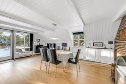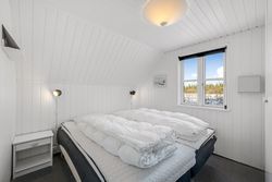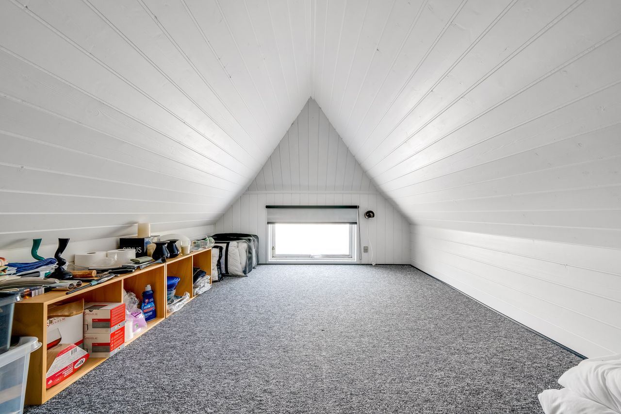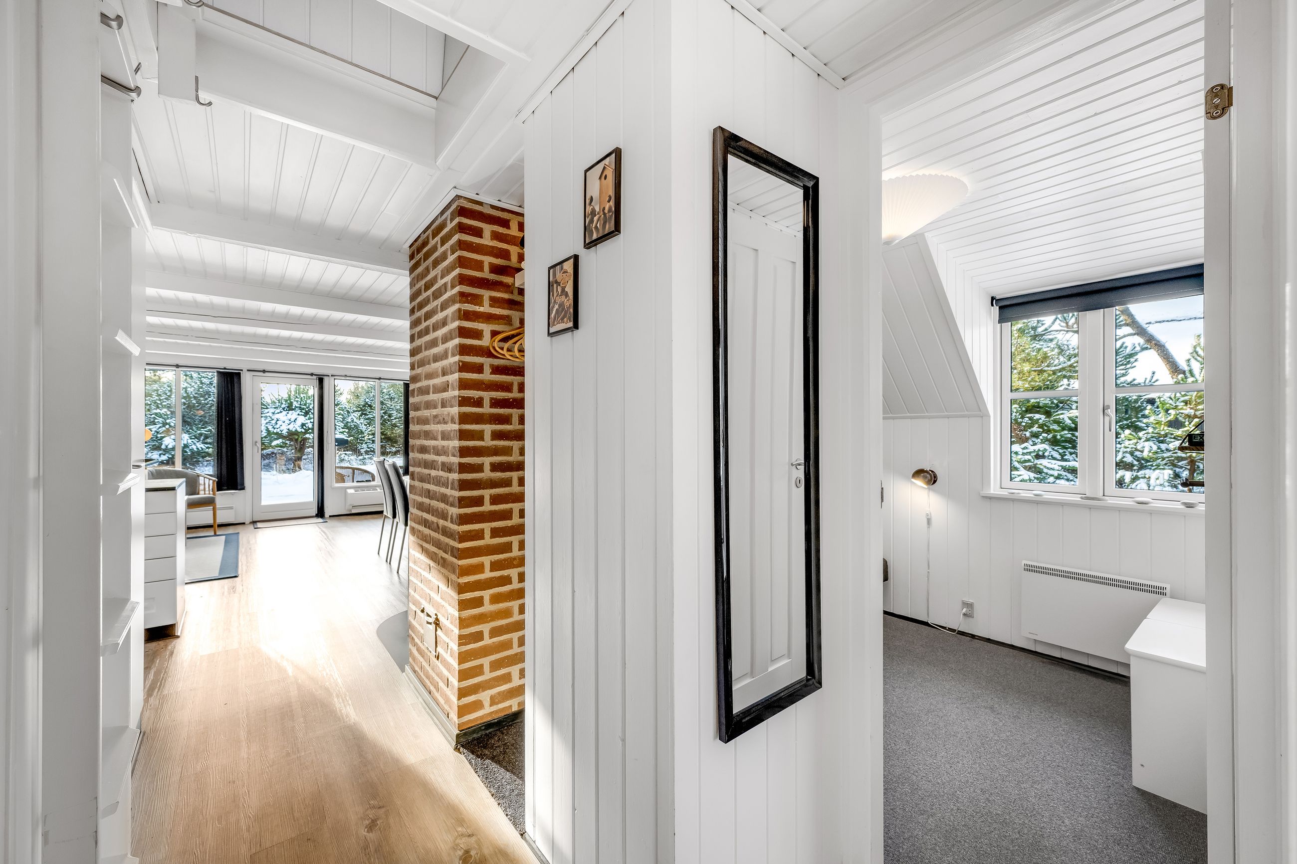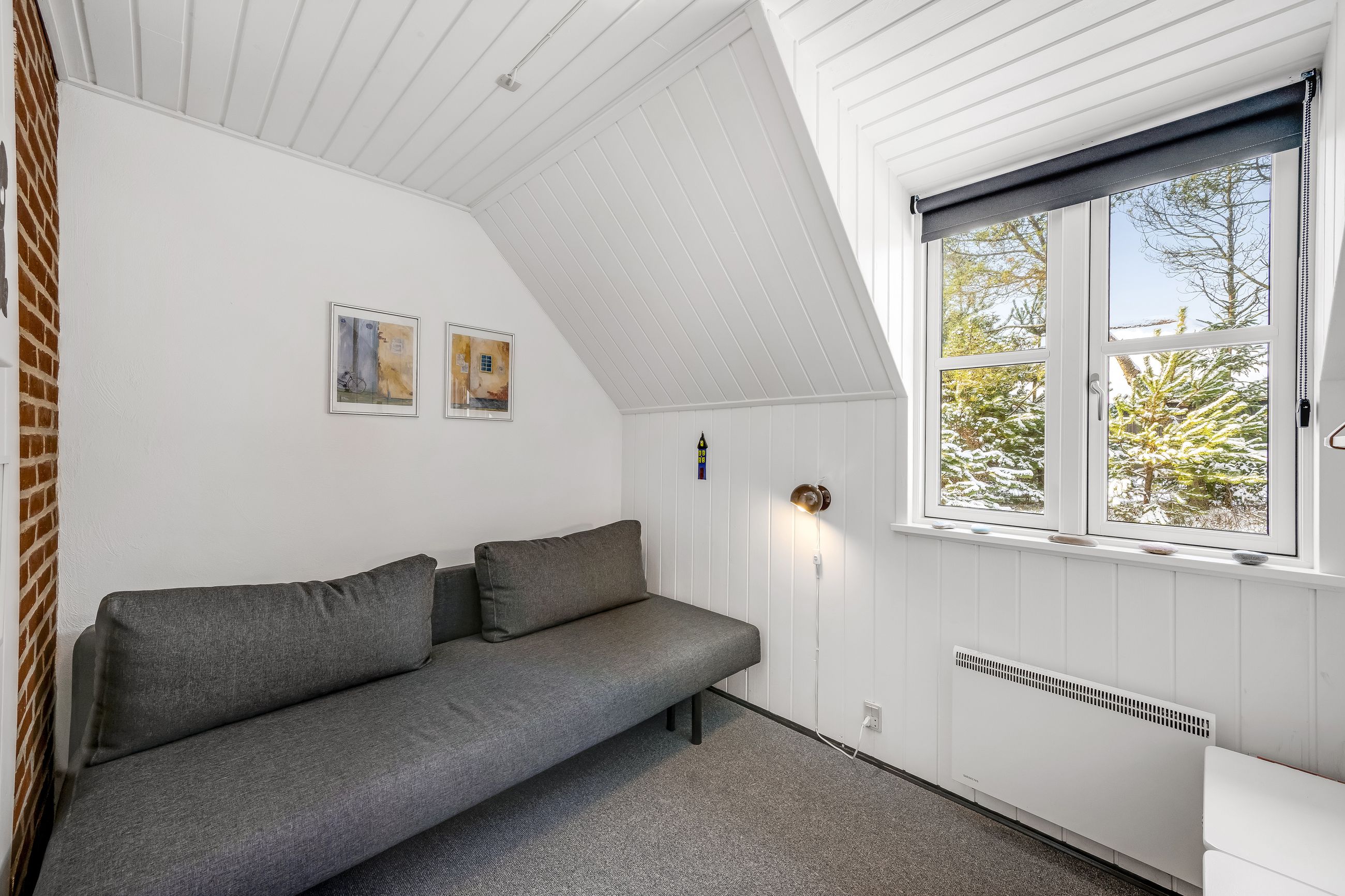 Huset har i alt tre værelser. De to er nærmest identiske, idet der dog i det ene af dem er en dobbeltseng og to indbyggede skabe, medens der i det andet er to enkelt senge og et indbygget skab. Desuden er der et fint ekstra værelse med en sovesofa samt et indbygget skab. Over værelser og med adgang fra gangen er der en lille hems/tagetage på 10 kvadratmeter.