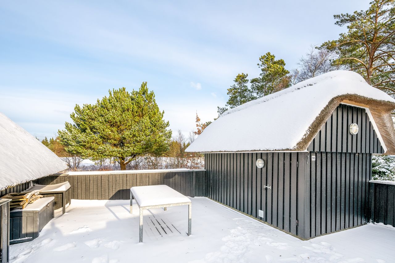 På skøn og meget roligt beliggende naturgrund i Lønne tilbydes dette harmoniske, stråtækte og gedigne sommerhus, der er opført i sortmalet træ. Allerede ved ankomsten til grunden mærker man den rolige og idylliske beliggenhed, og oplevelsen forstærkes af den smukke bebyggelse i den nordlige ende af grunden, hvor selve huset ses mod vest, mens der er et fint tilhørende udhus mod øst. I udhuset er der værksted og redskabsrum samt god mulighed for opbevaring. De to bebyggelser bindes sammen af en dejlig og samtidig lukket træterrasse. Alt fremstår i god stand såvel ude som inde.