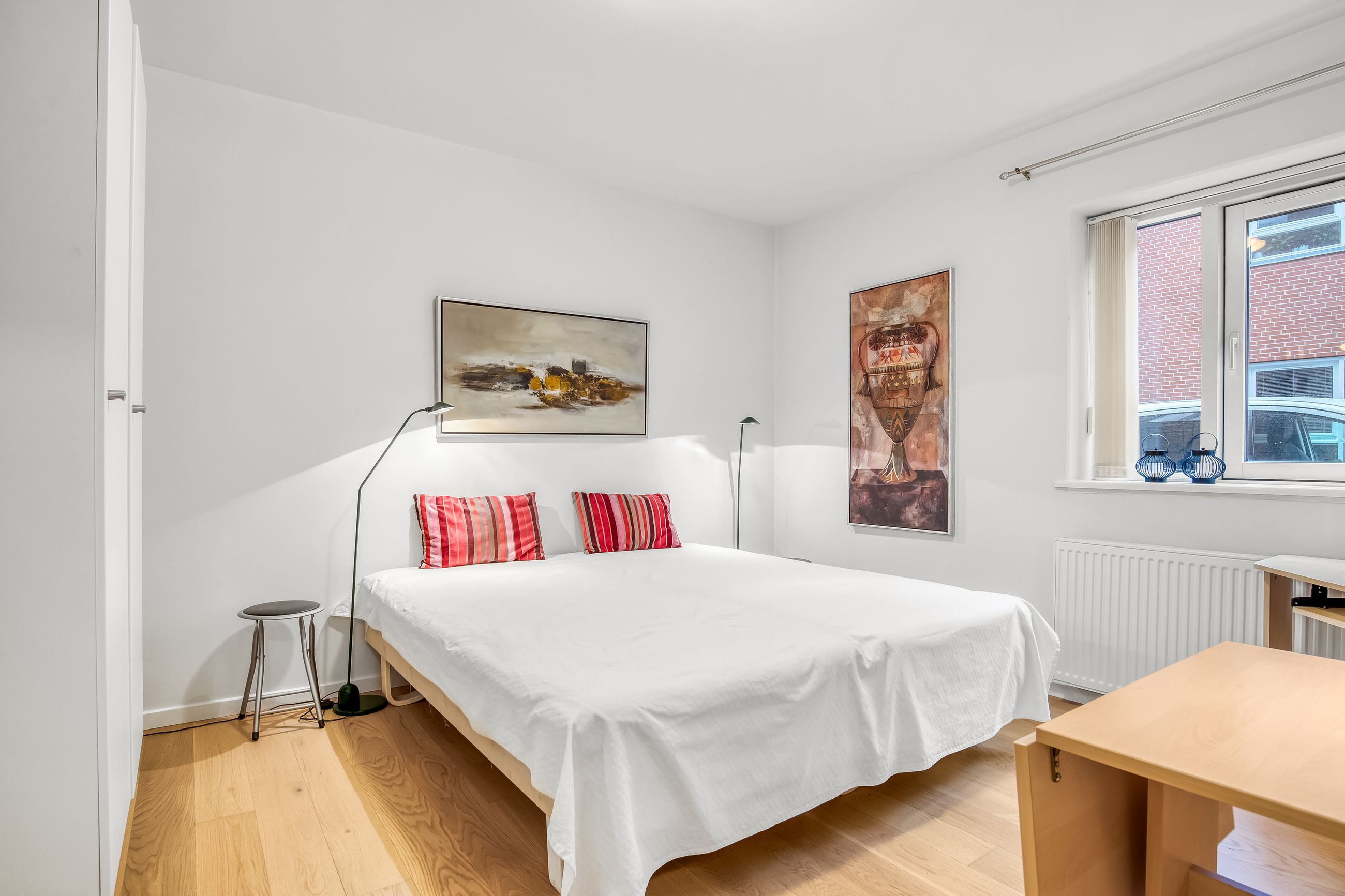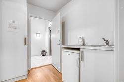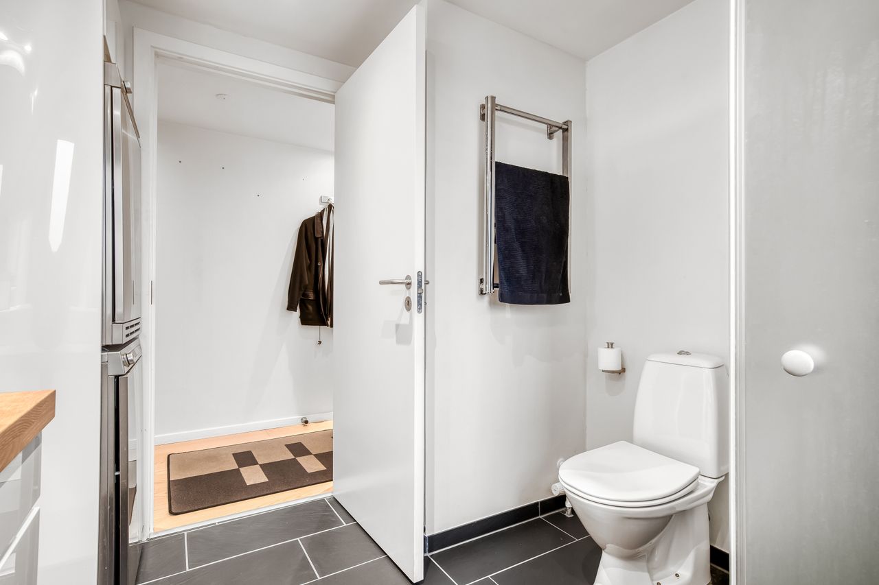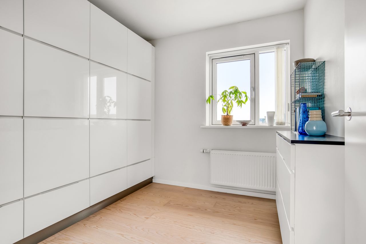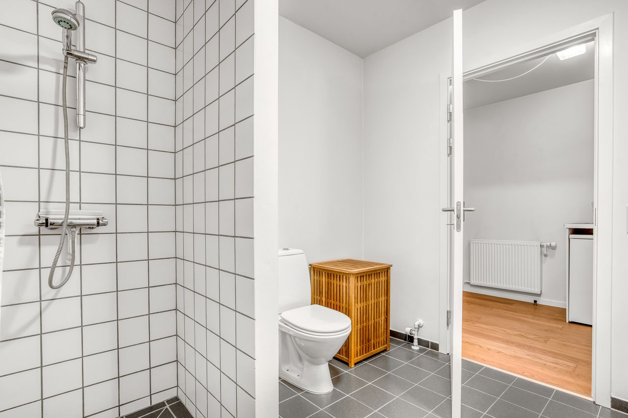 Lejligheden rummer to værelser med gode indretningsmuligheder. Hvert værelse kan let tilpasses dine behov, hvad enten det skal bruges som soveværelse, kontor eller hobbyrum. Badeværelset er udstyret med gulvvarme for ekstra komfort samt en praktisk vaskesøjle – her har du alle de nødvendige faciliteter inden for rækkevidde.