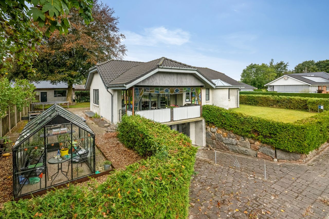 Velkommen til denne skønne villa, der byder på et boligareal på 136 kvm samt en rummelig kælder på 68 kvm. Ejendommen er opført i 1965, men har gennemgået flere opdateringer for at sikre moderne komfort og stil. I 2019 blev køkkenet fornyet, og alle vinduer blev udskiftet, hvilket giver huset et friskt og indbydende udtryk. Boligen fremstår med pæne vandskurede facader, betontagsten og de nyere vinduer sikrer både lysindfald og energieffektivitet.