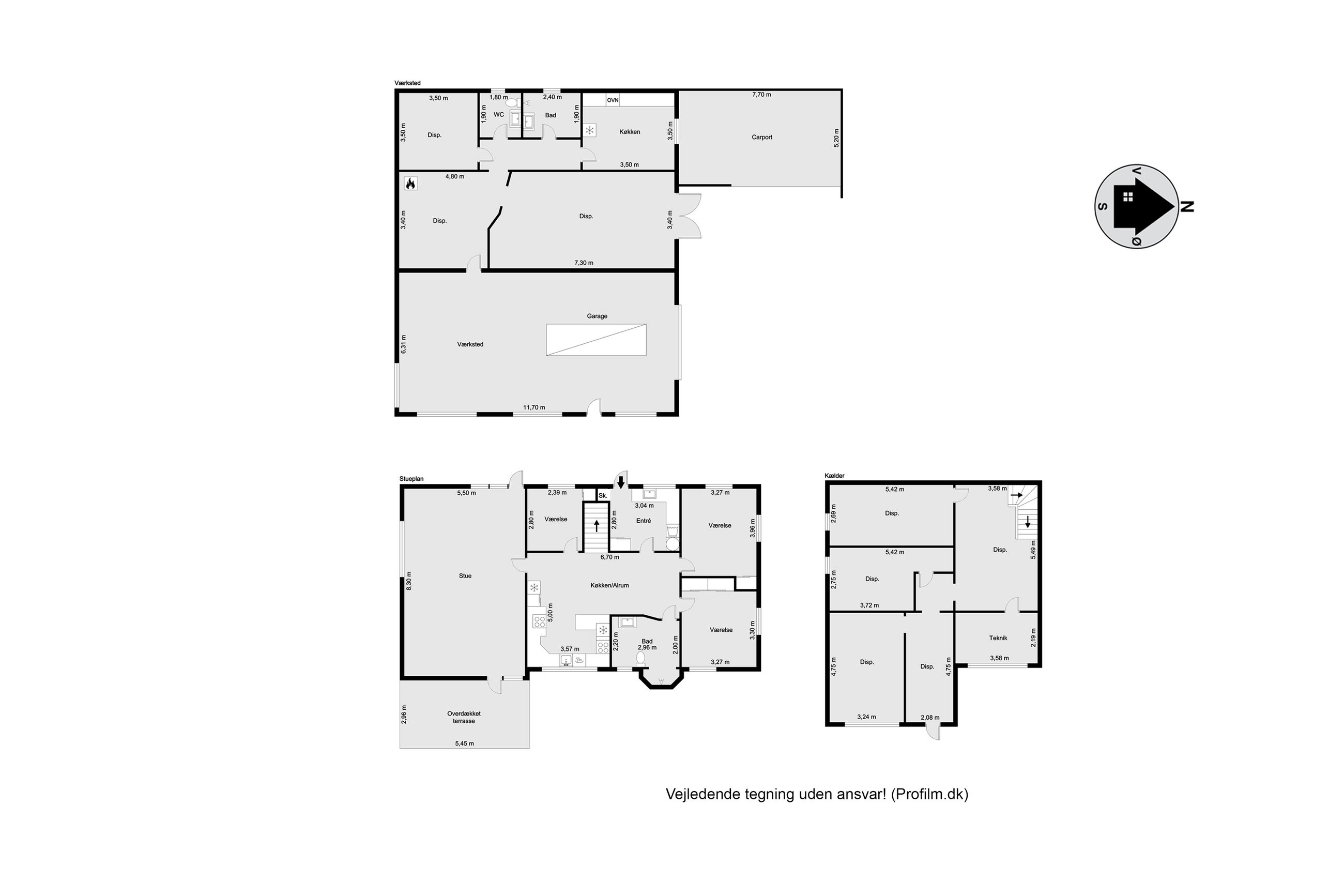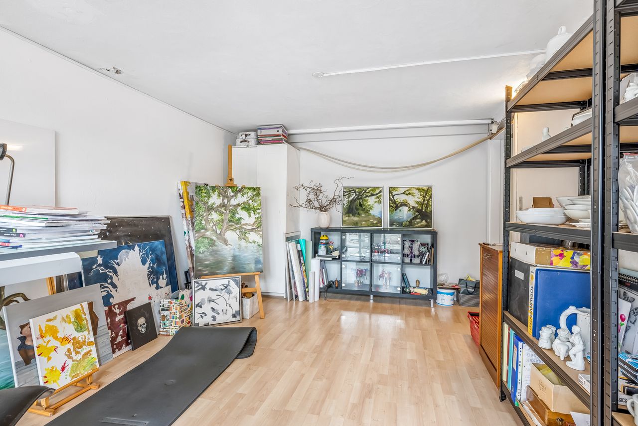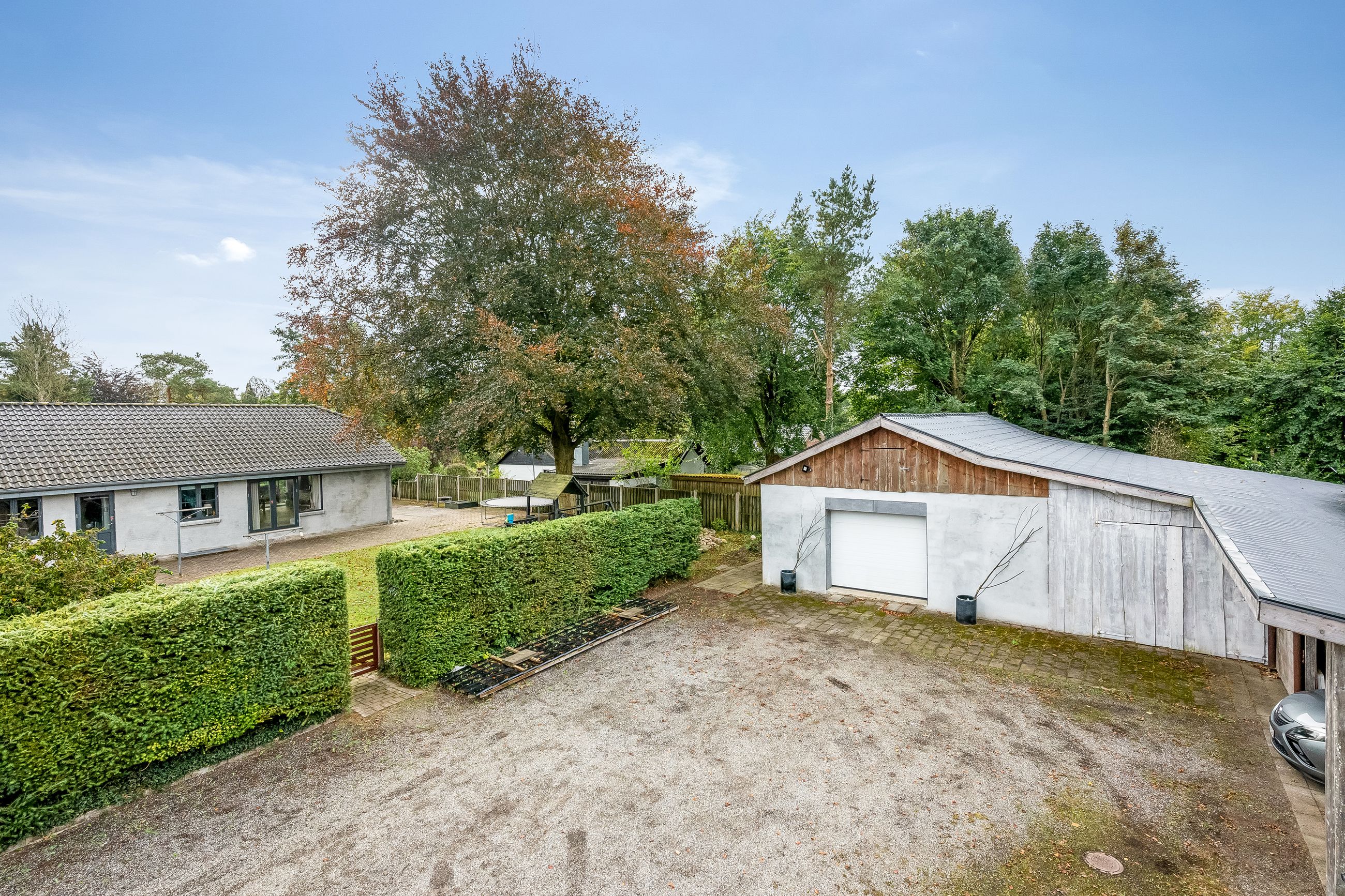 Til ejendommen hører også et garageanlæg på hele 181 kvm. Her findes både værksted/garagefaciliteter samt disponible rum, toilet og køkken – mulighederne er mange for den pladskrævende hobbyist eller håndværker! Udhuset opvarmes effektivt med en luft-til-luft varmepumpe og fremstår med nyere ståltag fra 2021. Derudover er der en træcarport på 40 kvm.