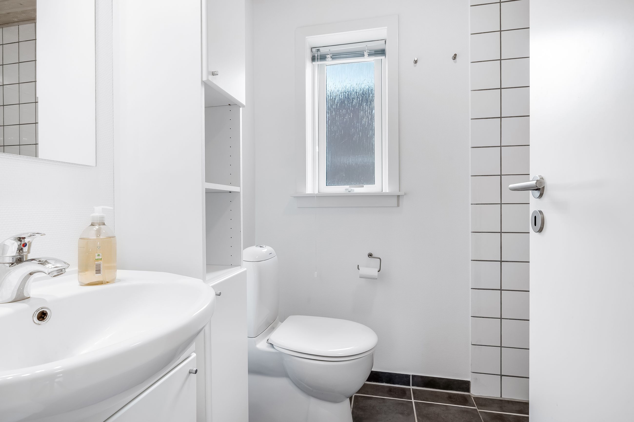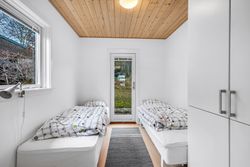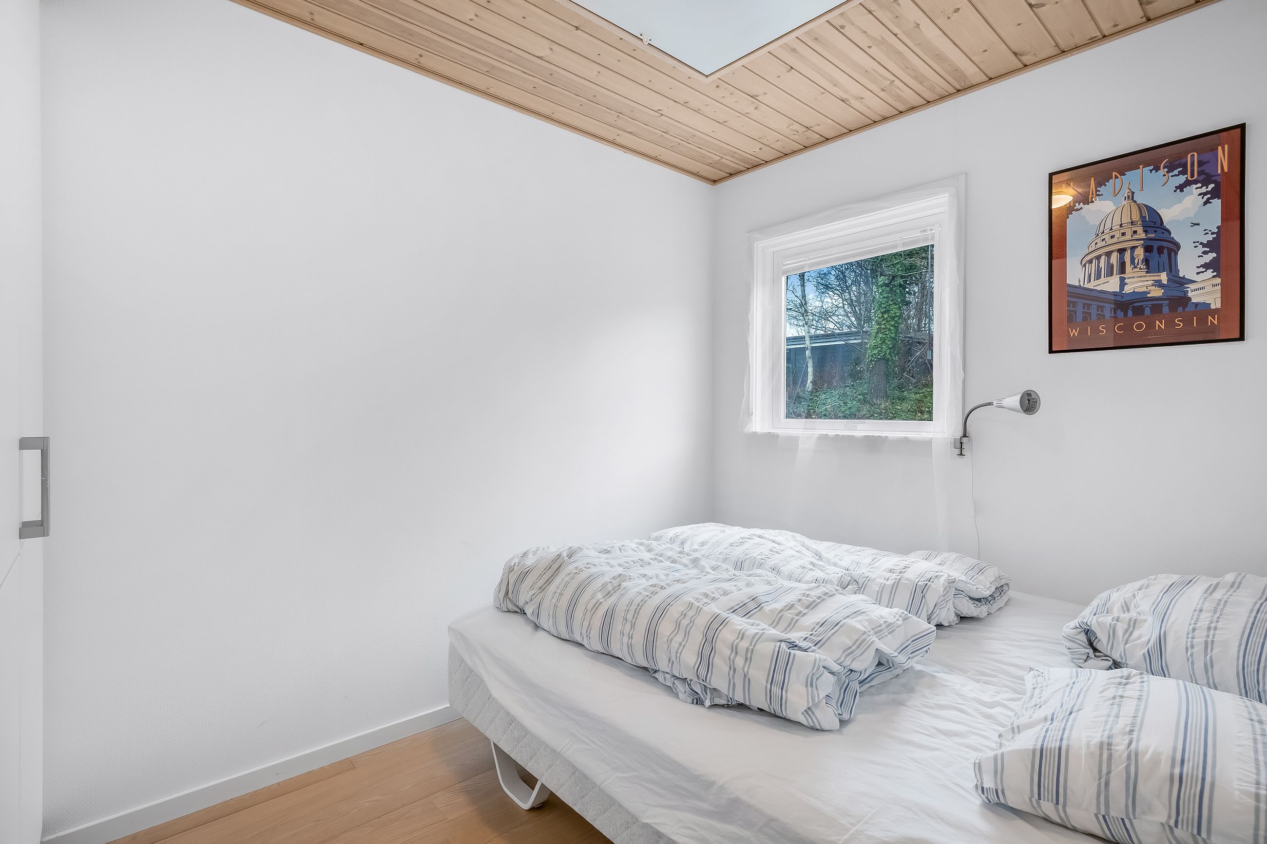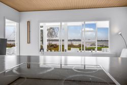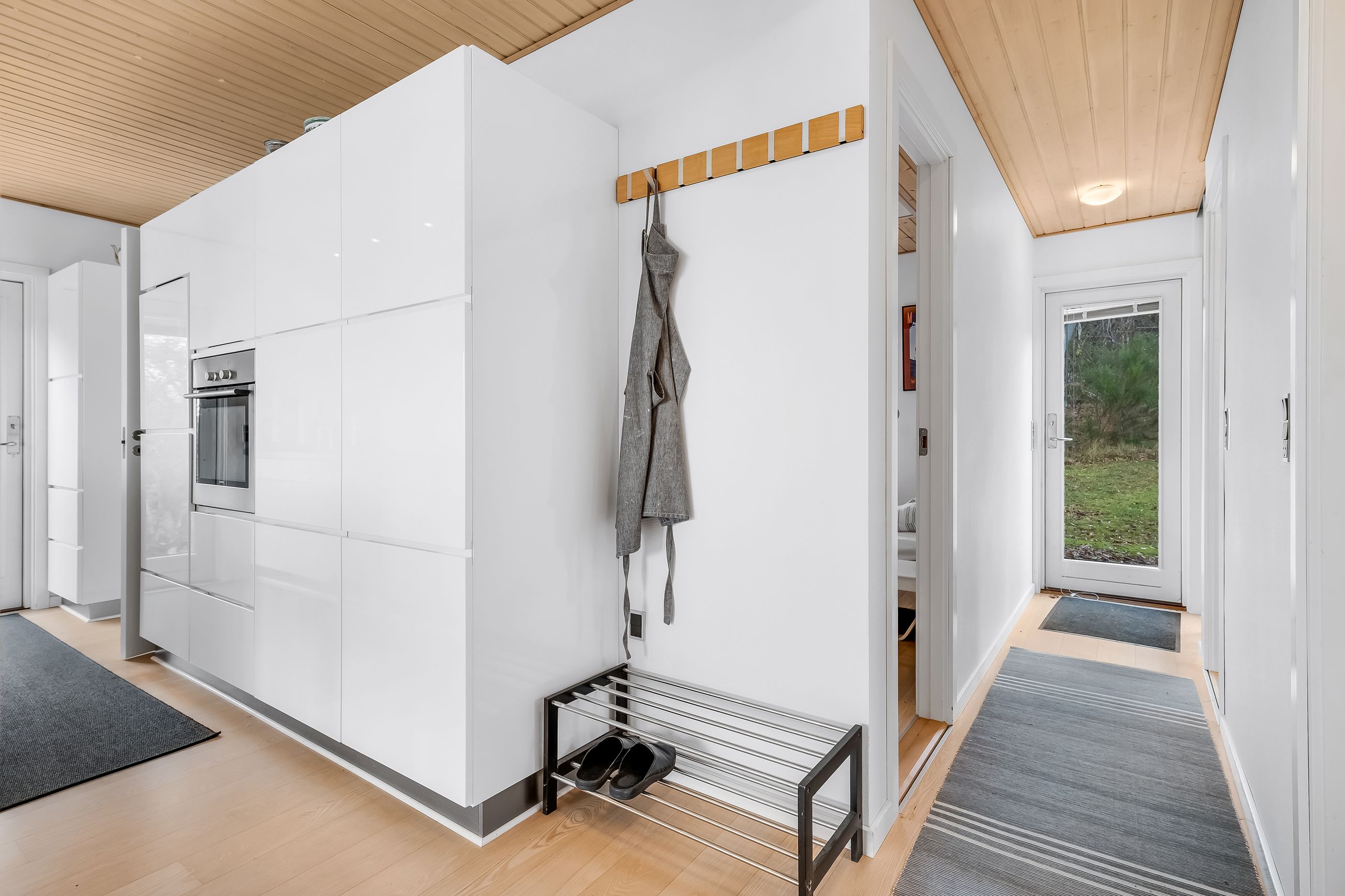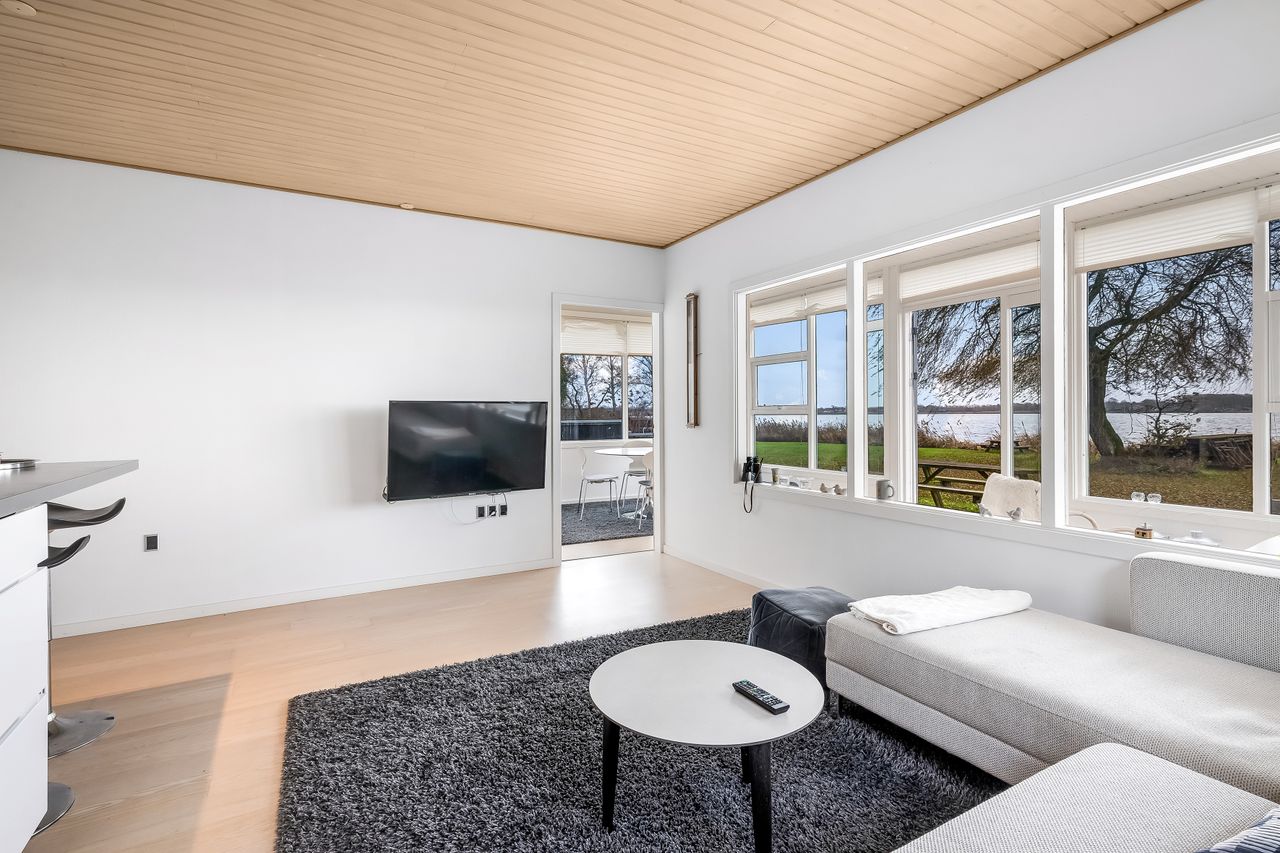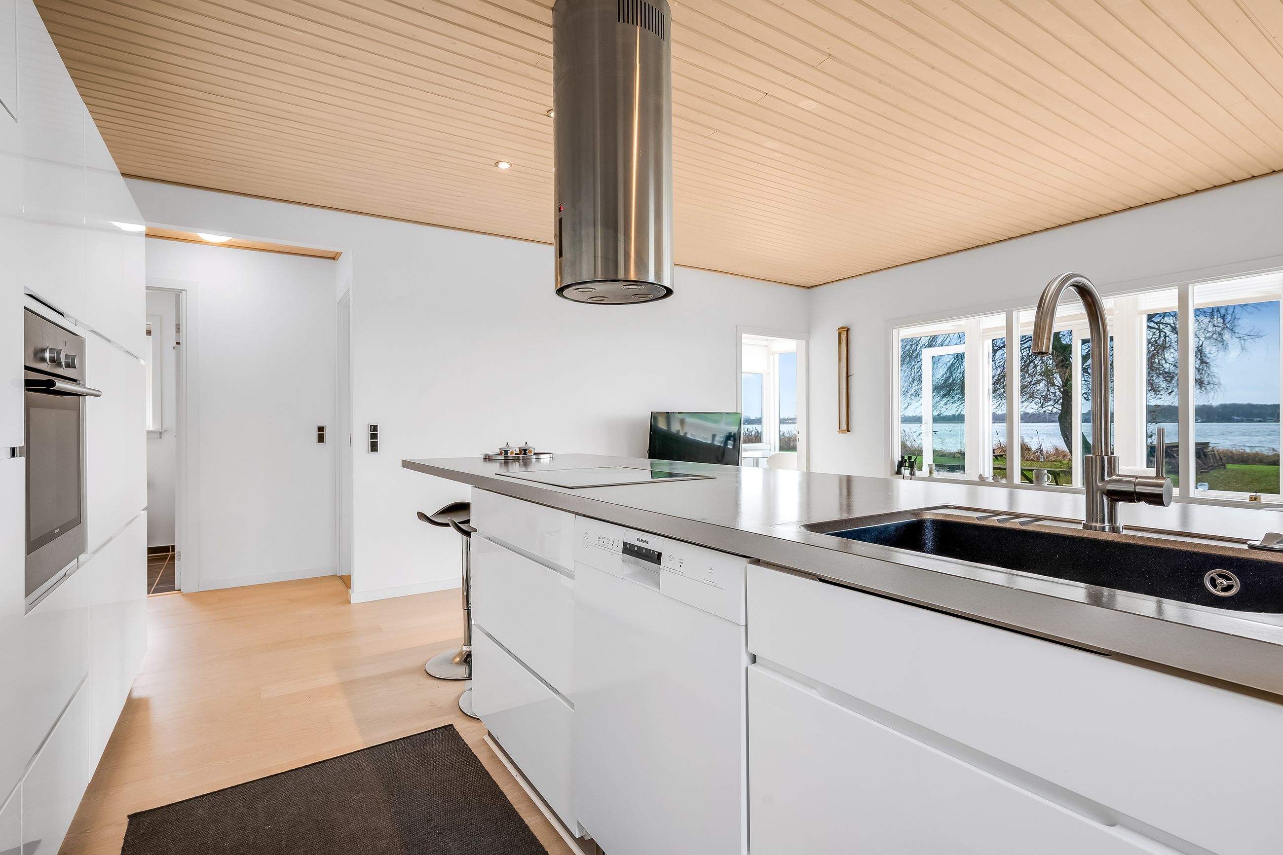 Hjertet af huset er det lyse køkken/alrum, hvor store vinduespartier giver en betagende udsigt over søen. Her kan du lade dig inspirere af de naturskønne omgivelser, mens du tilbereder måltider ved den praktiske kogeø. Boligen rummer tre rummelige soveværelser, som alle tilbyder ro og afslapning efter en dag fyldt med oplevelser ved vandet. De to moderne badeværelser sikrer desuden optimal komfort for både familie og gæster.