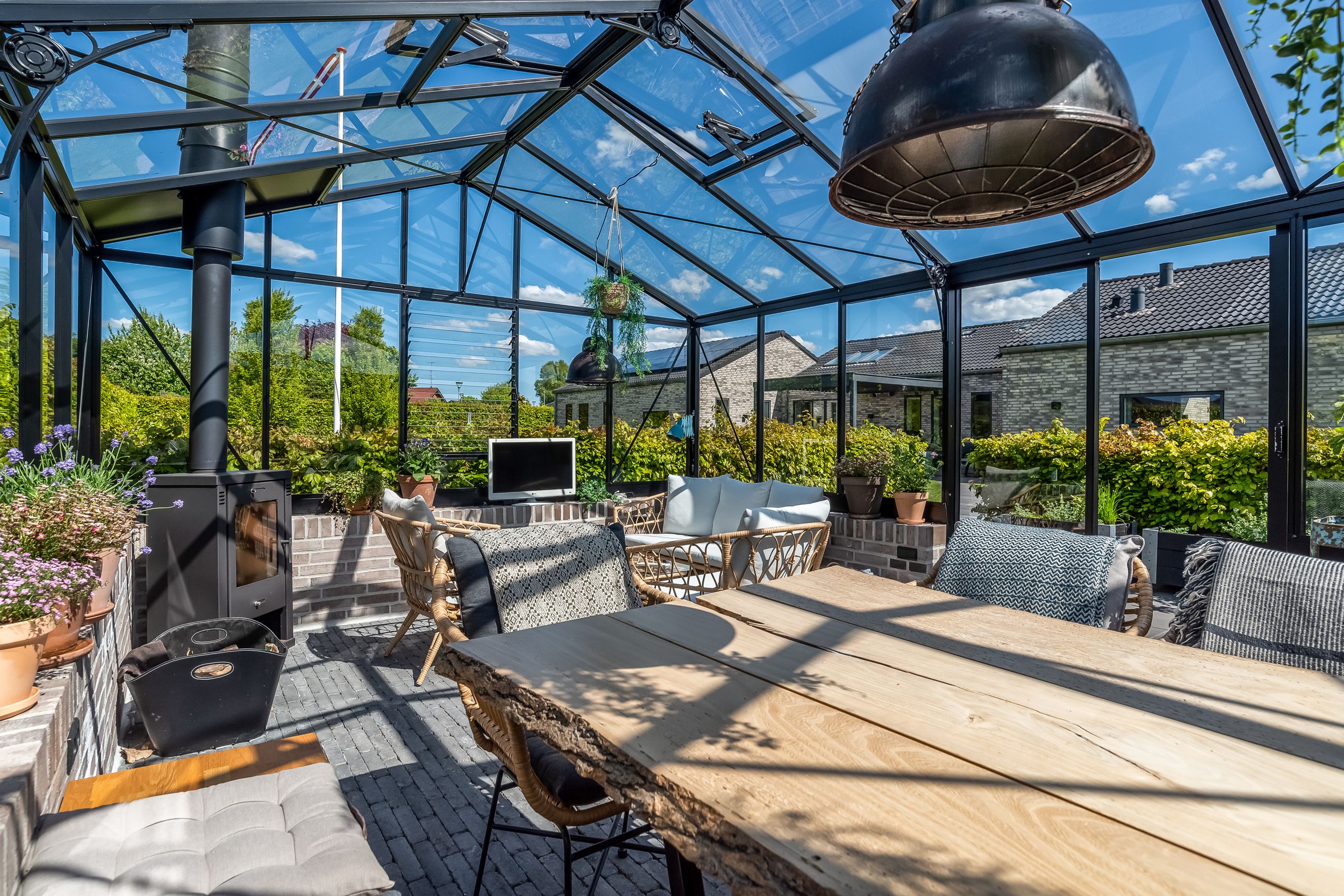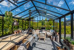 Ejendommen er beliggende i et roligt villakvarter i Hammerum med masser af luft omkring sig. Kort afstand til motorvejstilkørsel, indkøb, skole, sø m.v. Haven er smukt anlagt og inkluderer et fantastisk orangeri, som giver mulighed for at nyde udelivet hele året.