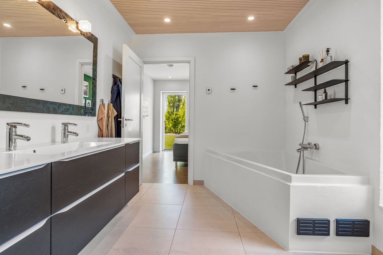 Voksenafdelingen byder på walk-in closet samt stort soveværelse med adgang til et luksuriøst badeværelse udstyret med karbad.