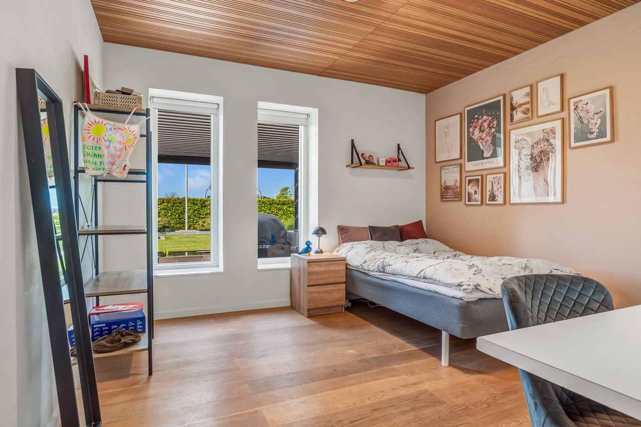 Velkommen til denne flotte arkitekttegnede villa, der strækker sig over imponerende 204 kvadratmeter. Opført i 2013, er denne ejendom bygget med en flot facadesten og byder på mange udsøgte detaljer, der vil begejstre enhver boligkøber. Beliggende for enden af en lukket stikvej, får du her en fredfyldt beliggenhed tæt på både skole, indkøbsmuligheder og den smukke natur.