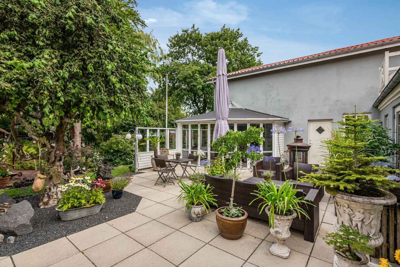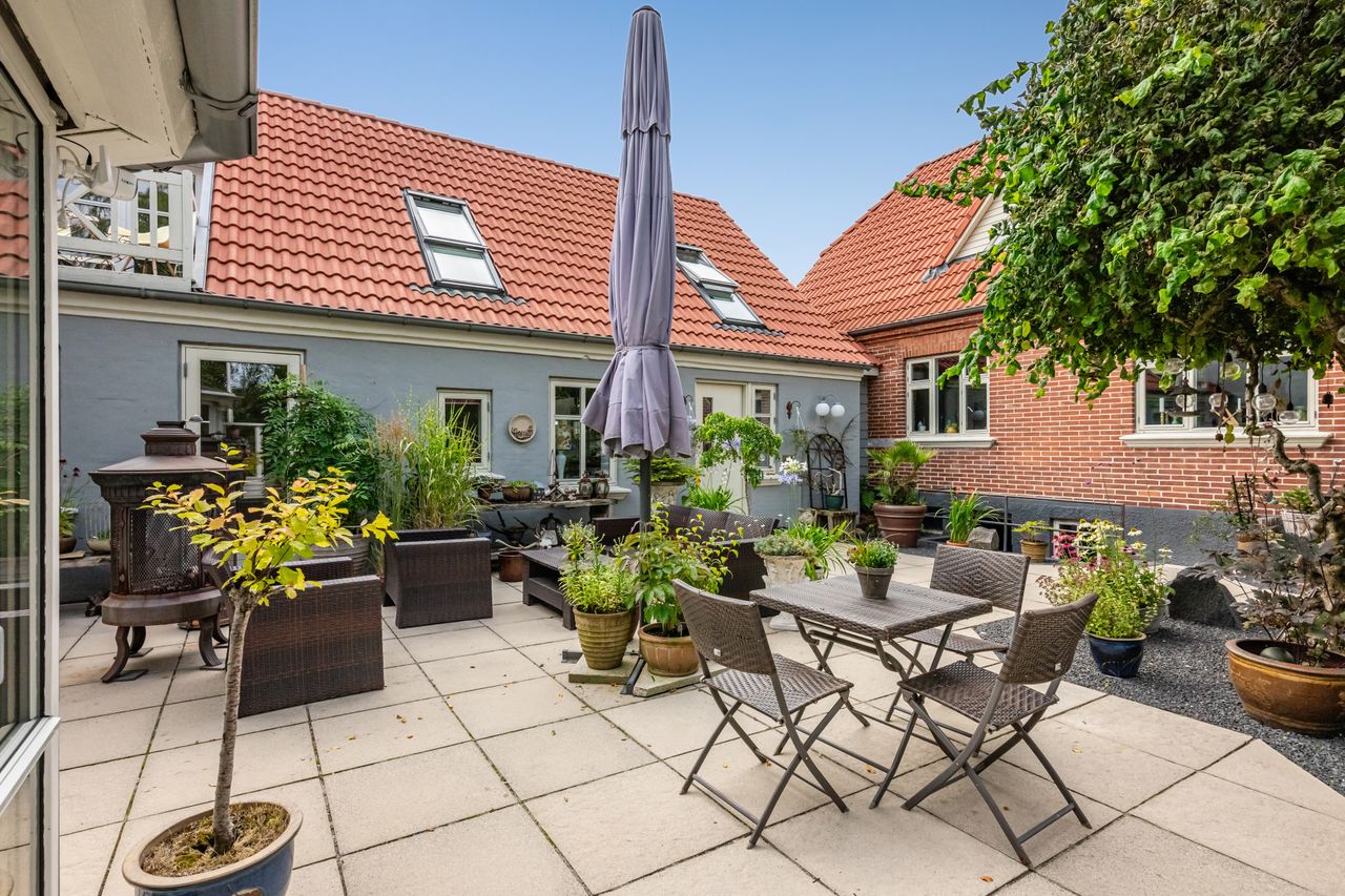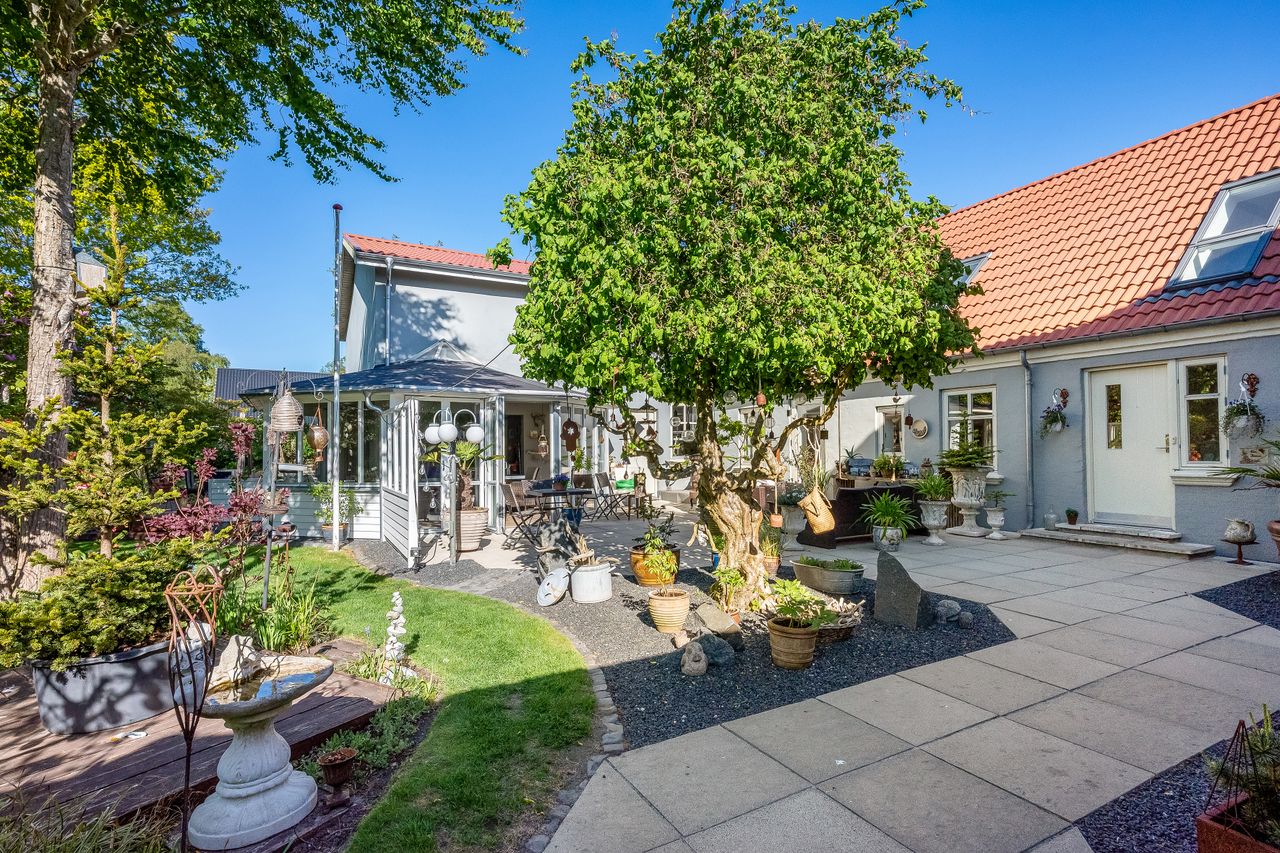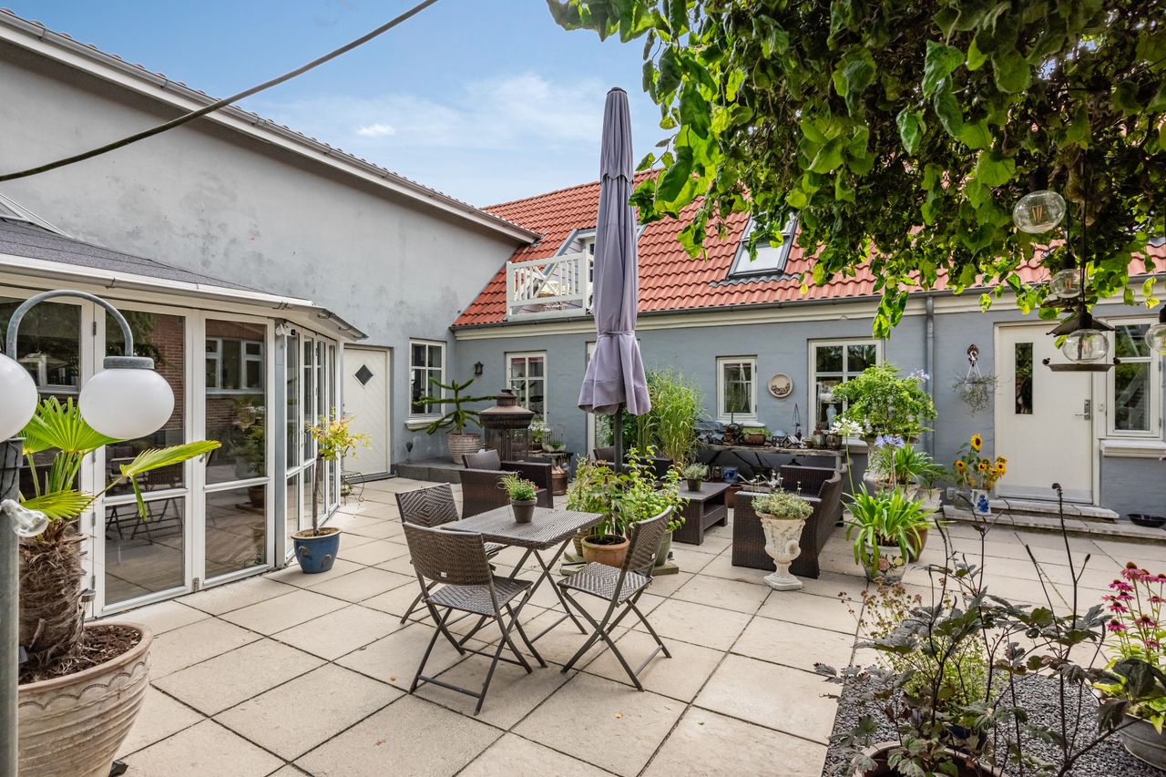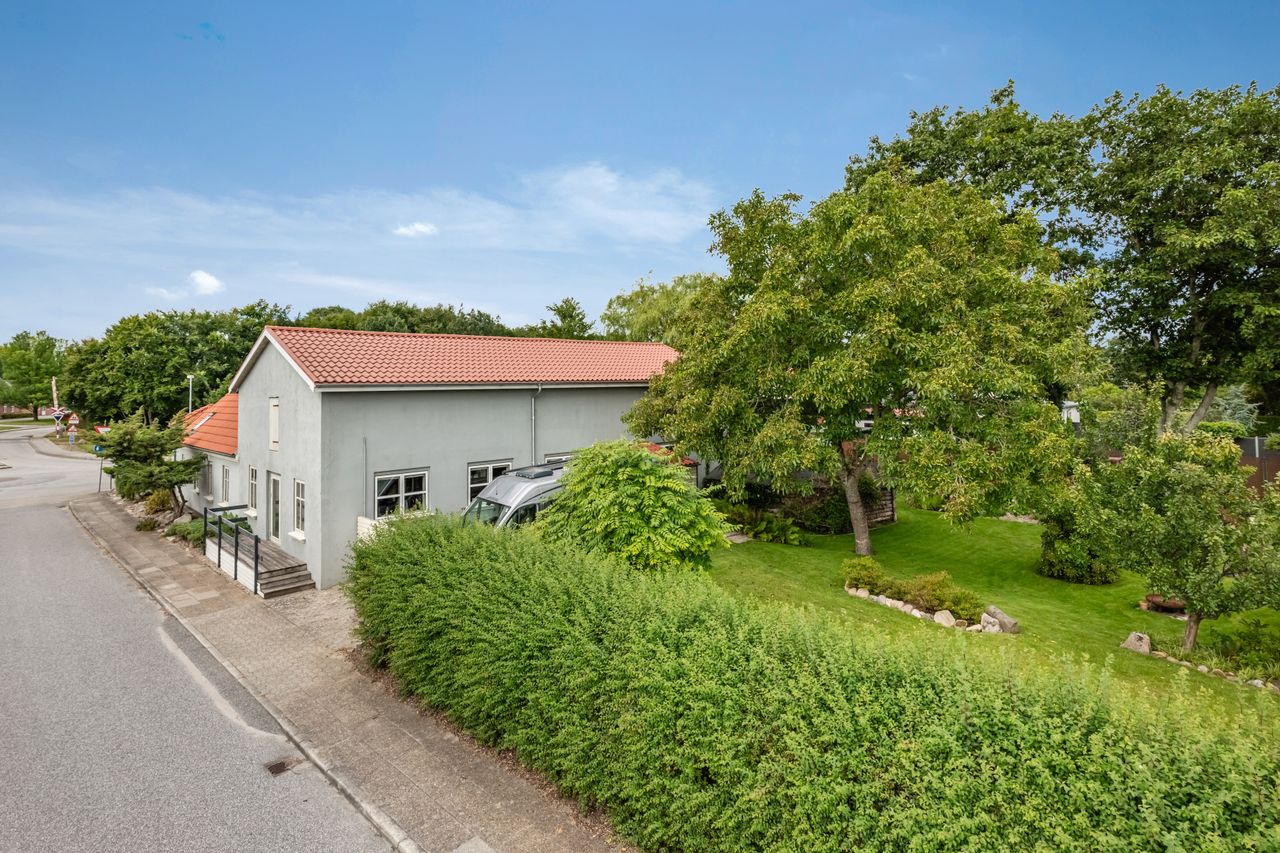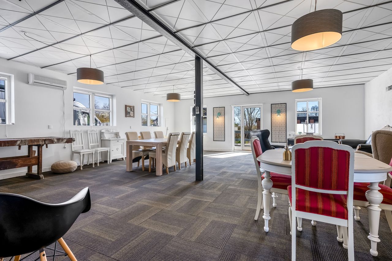 En særlig perle ved denne ejendom er det store erhvervslokale, som åbner op for utallige muligheder - hvad enten du drømmer om at drive egen virksomhed hjemmefra eller ønsker ekstra lagerplads. Udenfor finder du en dejlig gårdhave samt en velholdt have med bålplads, hvor du kan nyde de lange sommeraftener.