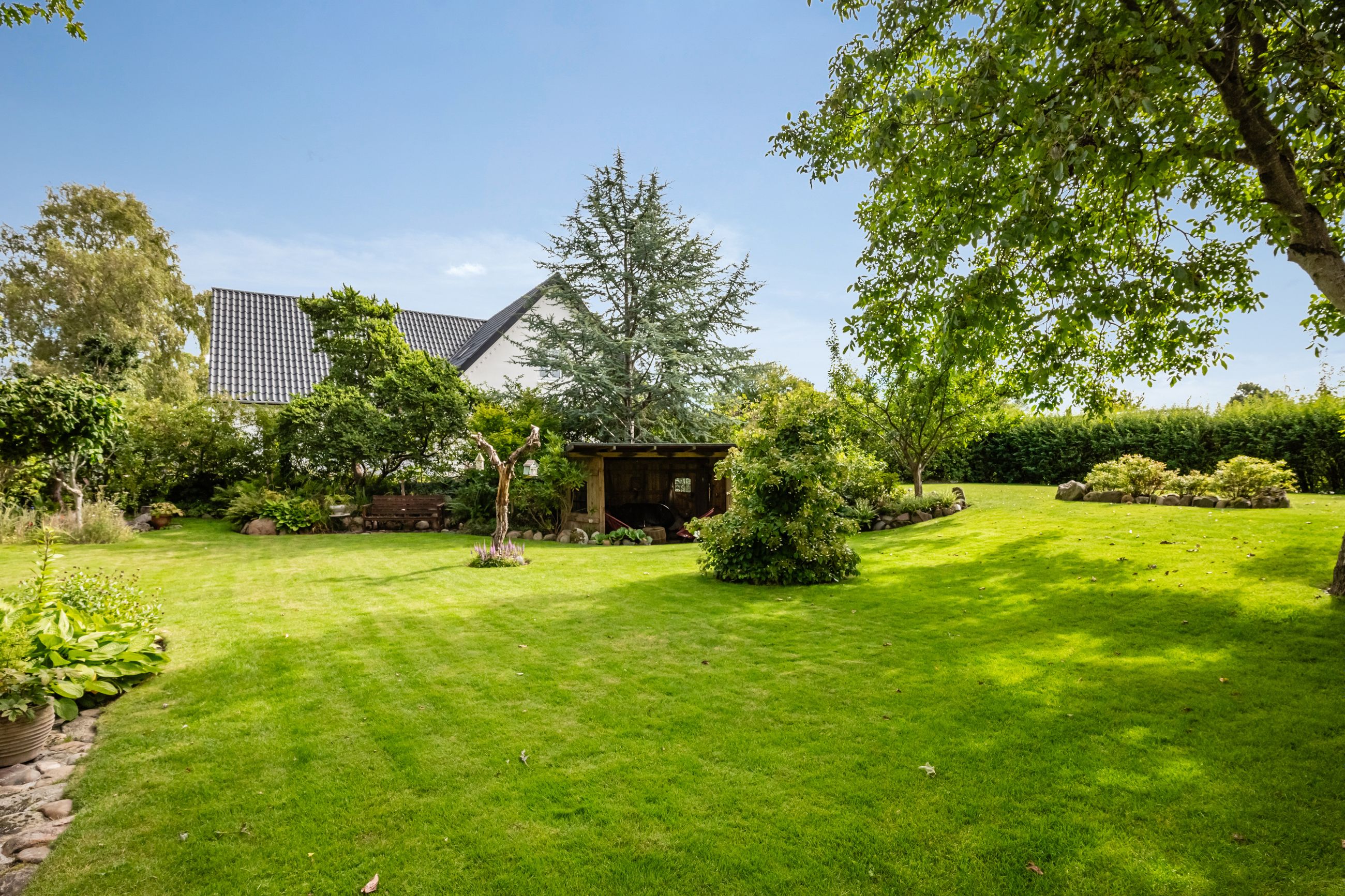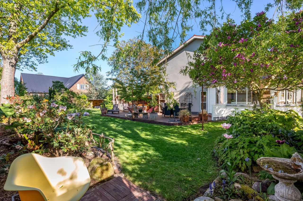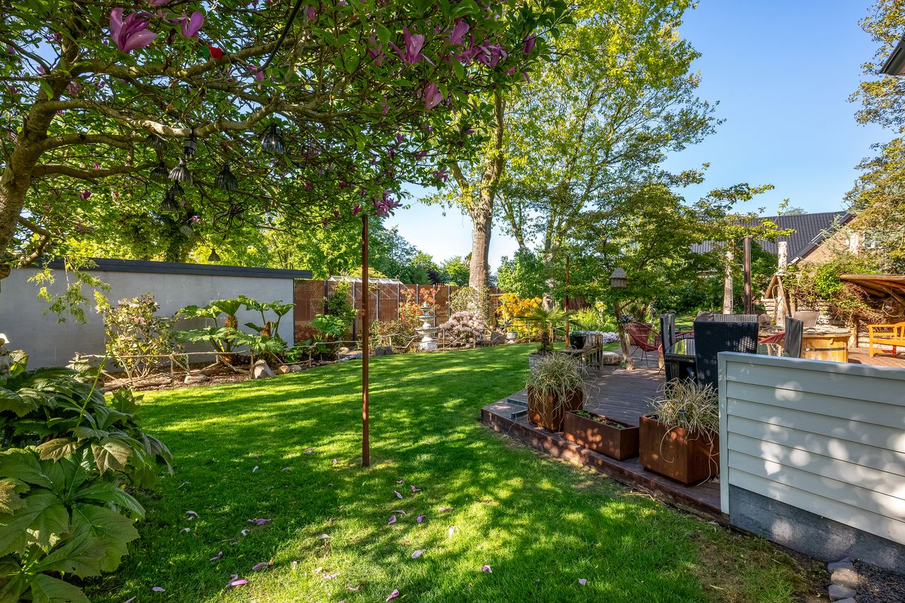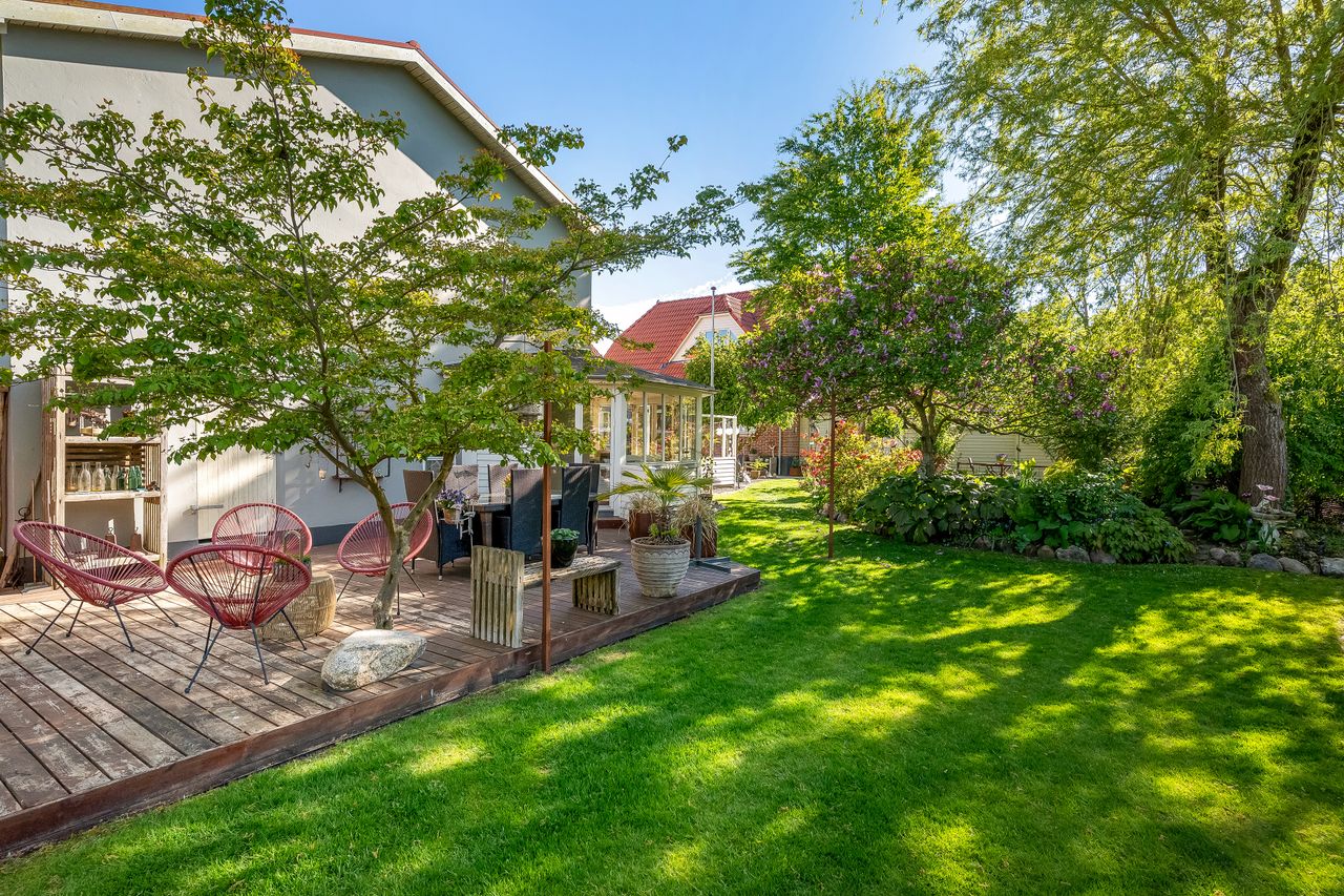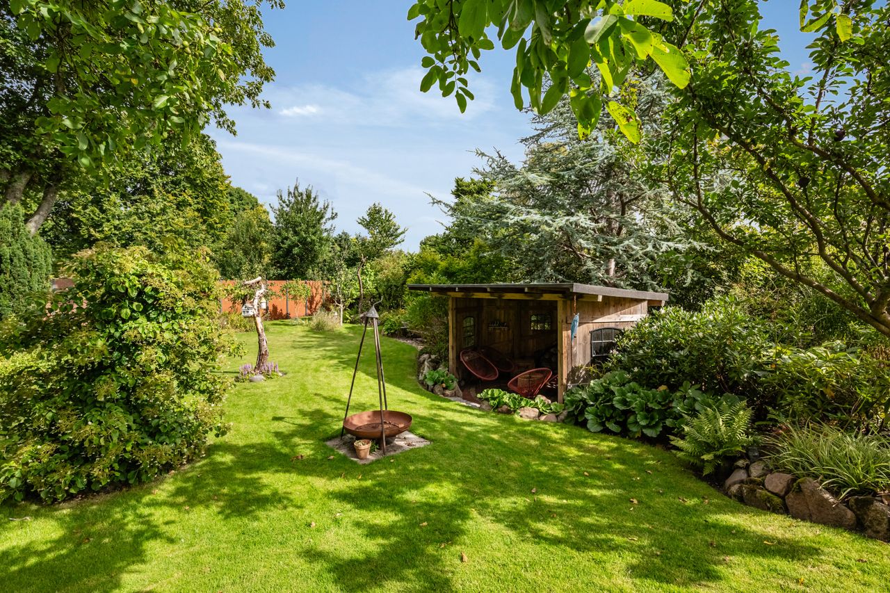 En særlig perle ved denne ejendom er det store erhvervslokale, som åbner op for utallige muligheder - hvad enten du drømmer om at drive egen virksomhed hjemmefra eller ønsker ekstra lagerplads. Udenfor finder du en dejlig gårdhave samt en velholdt have med bålplads, hvor du kan nyde de lange sommeraftener.