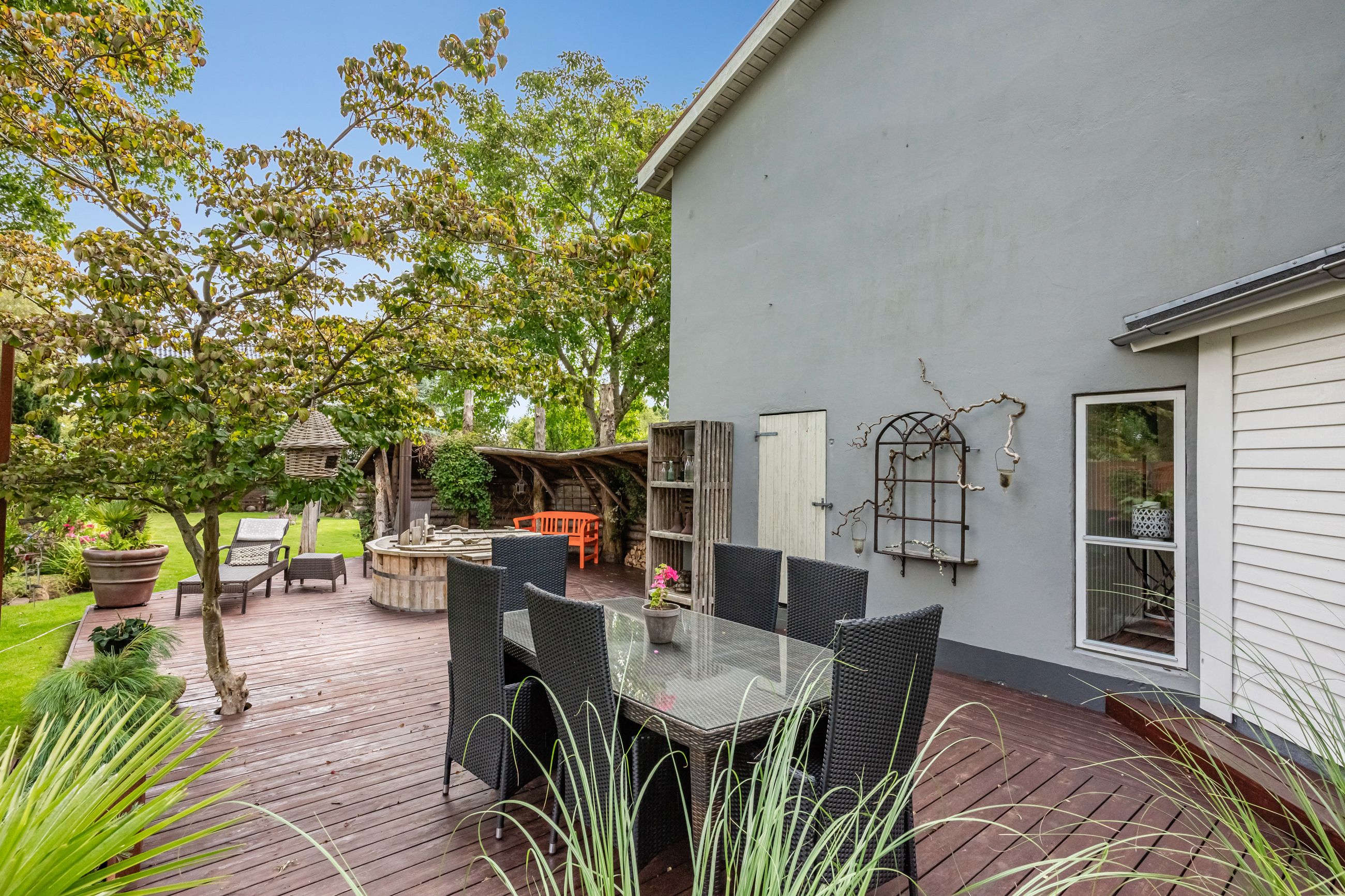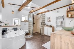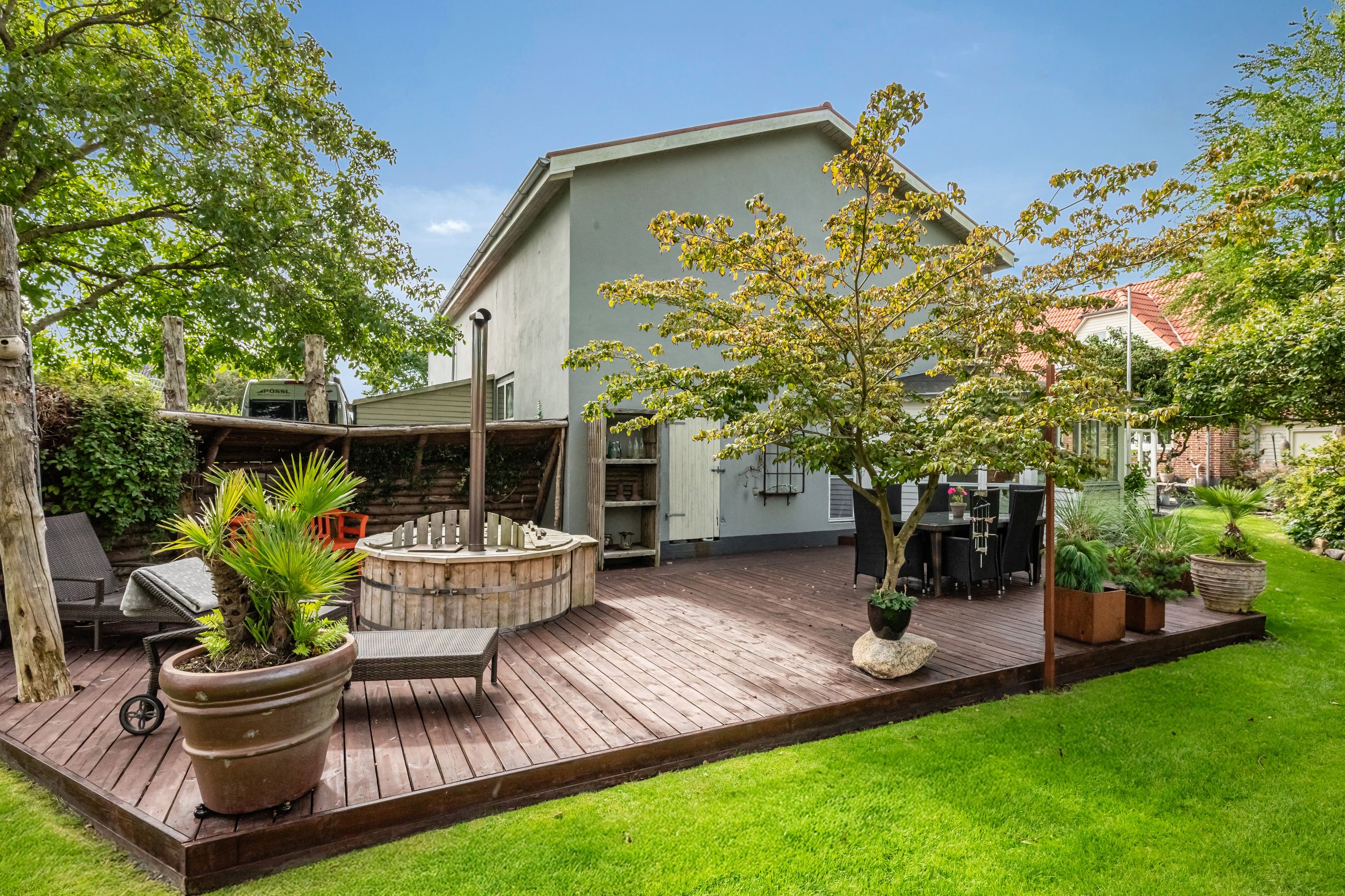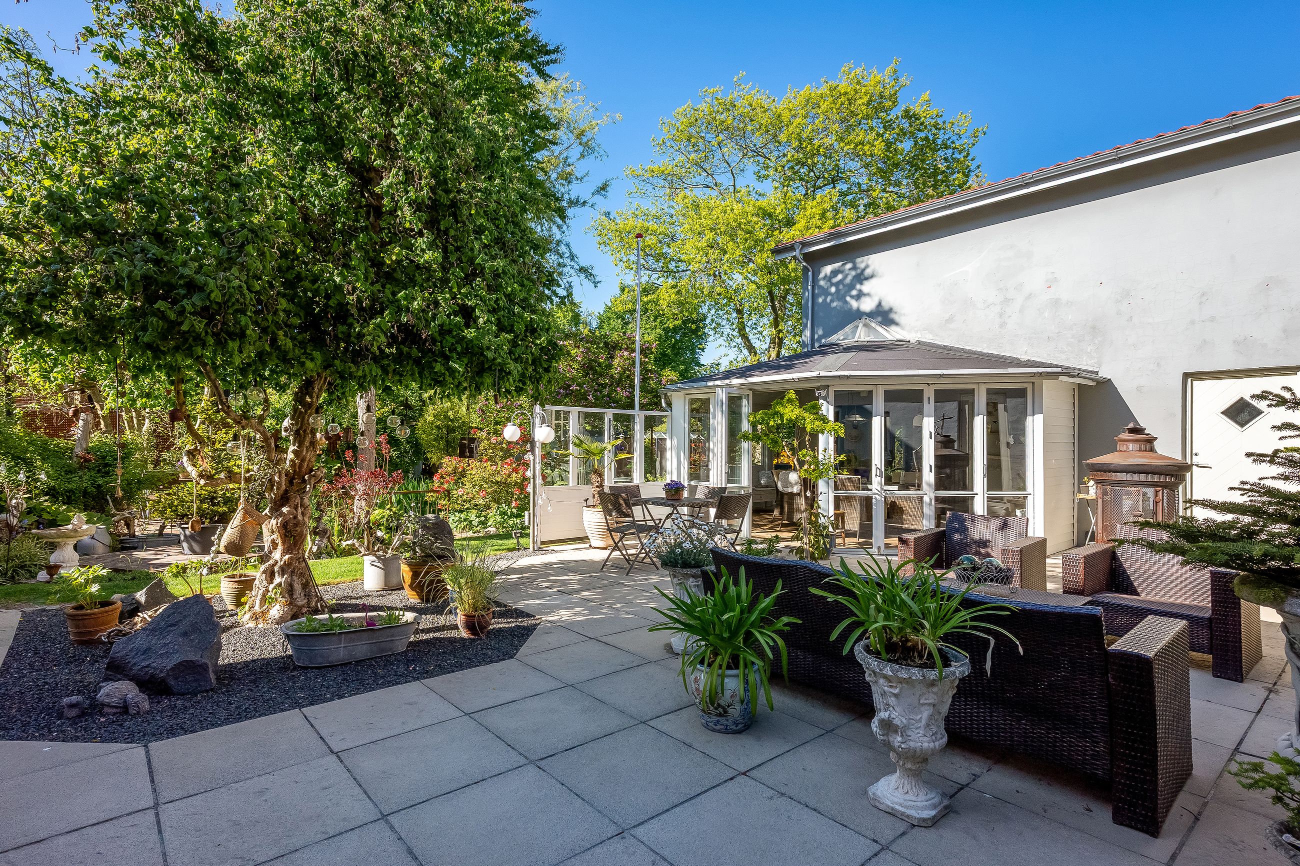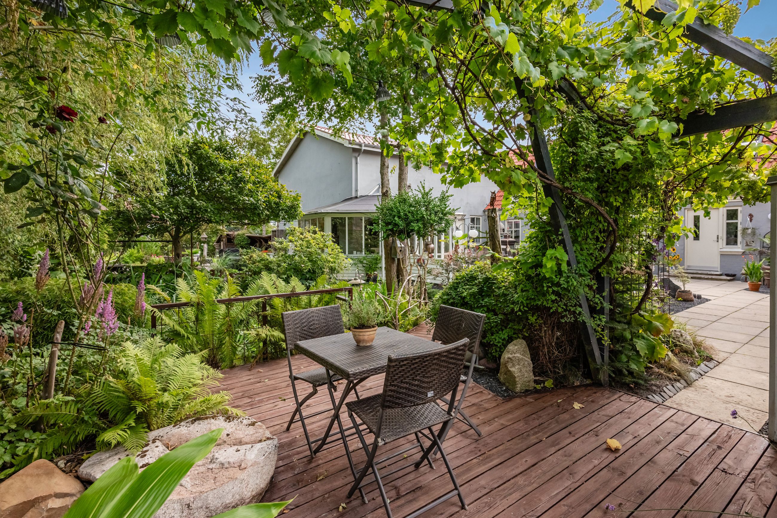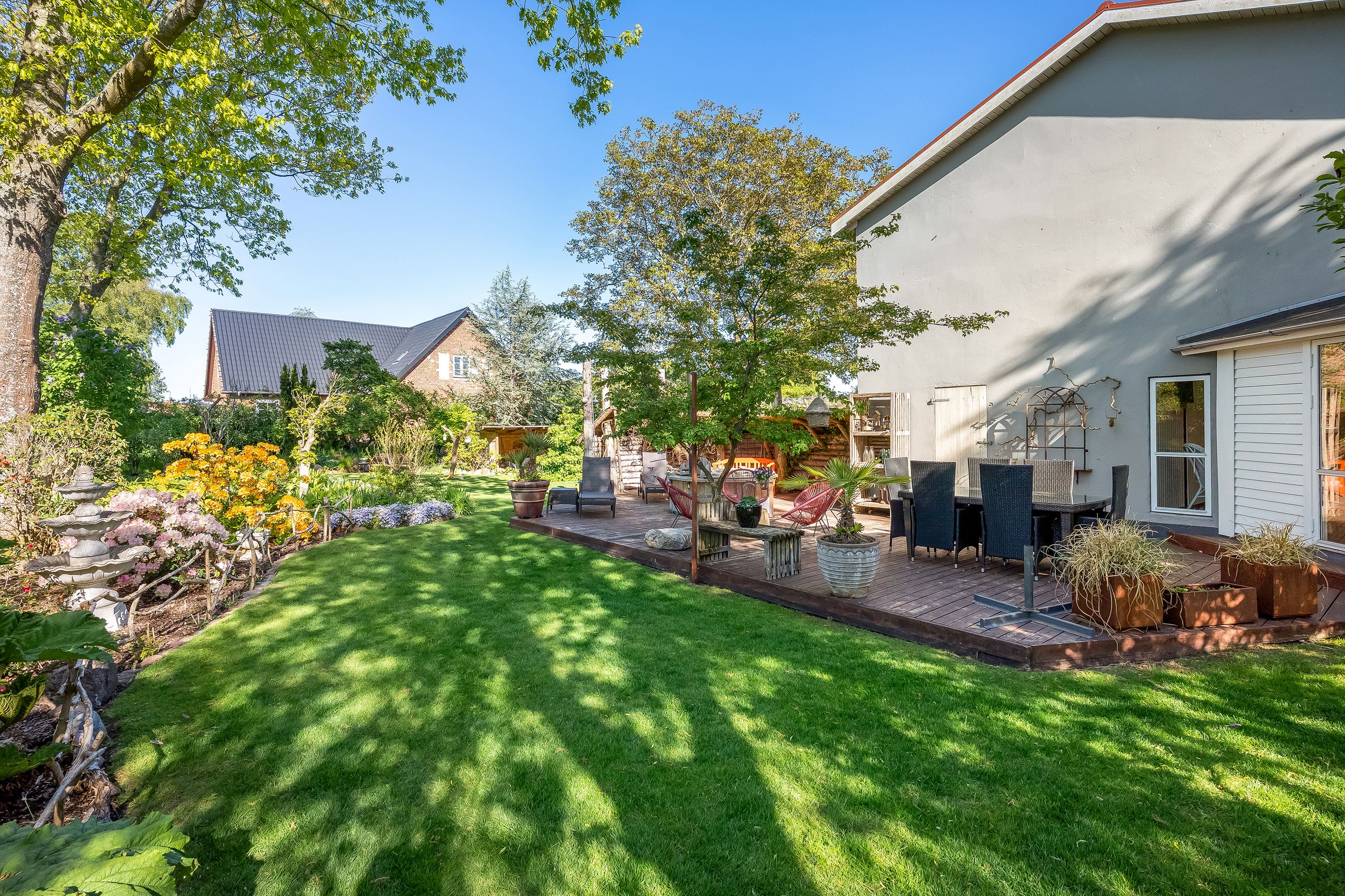 En særlig perle ved denne ejendom er det store erhvervslokale, som åbner op for utallige muligheder - hvad enten du drømmer om at drive egen virksomhed hjemmefra eller ønsker ekstra lagerplads. Udenfor finder du en dejlig gårdhave samt en velholdt have med bålplads, hvor du kan nyde de lange sommeraftener.