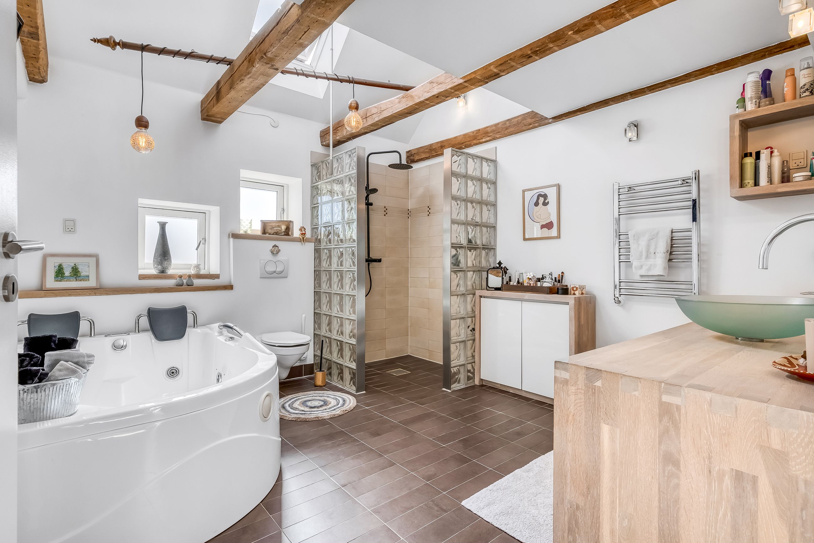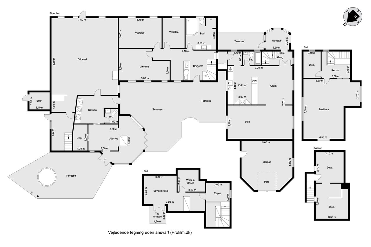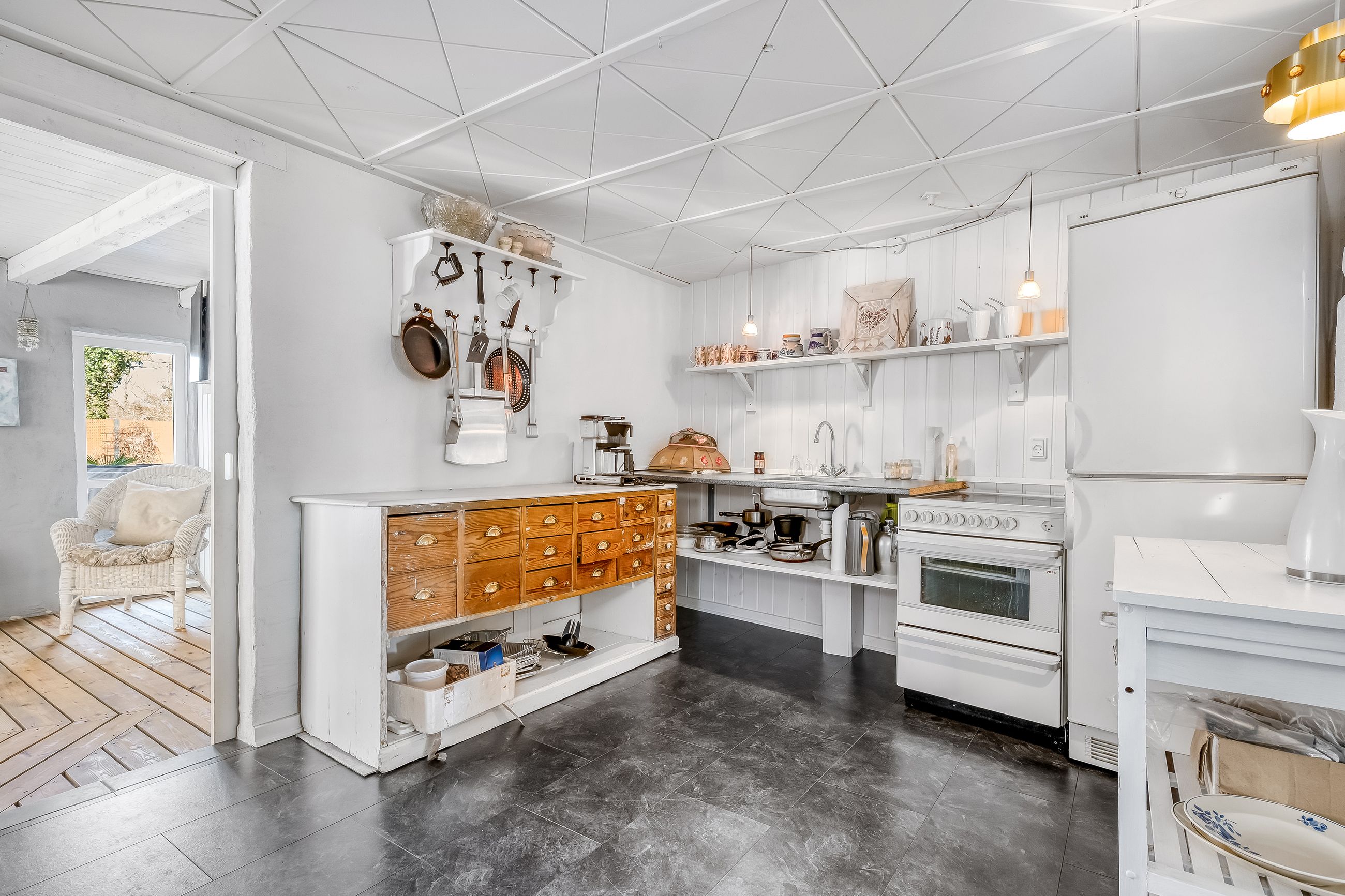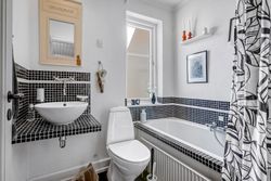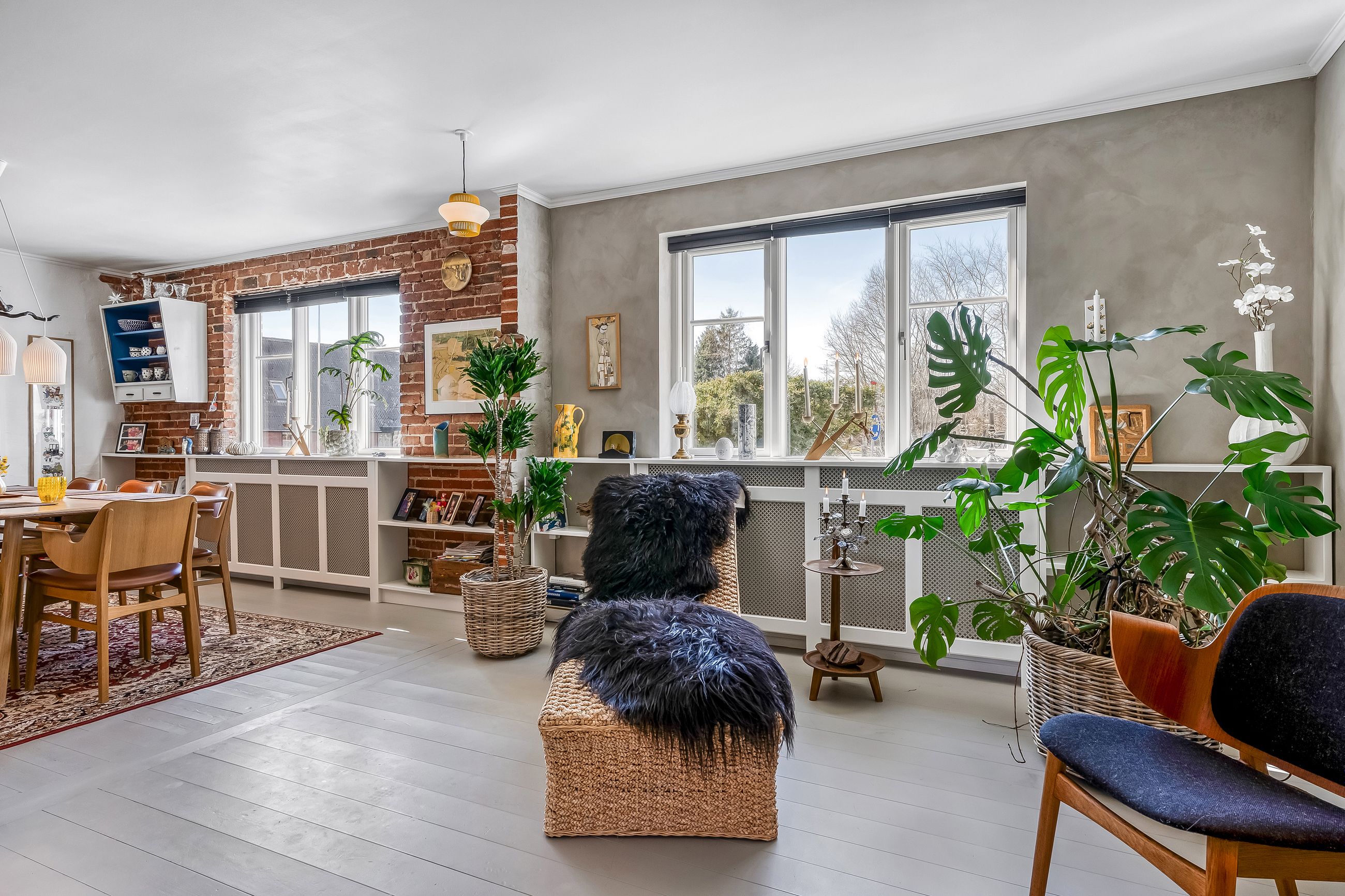 Indretningen strækker sig over flere plan og imponerer med et flot indgangsparti, der leder videre til moderne badeværelser og en stor stue. Her er plads til både afslapning og sociale sammenkomster. De store soverum tilbyder rigelig plads til hele familien eller gæsterne, mens de gode opholdsrum giver mulighed for kreativ udfoldelse eller leg.