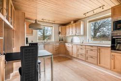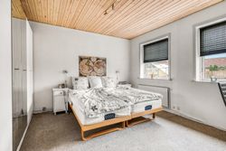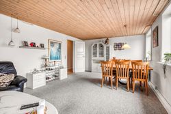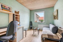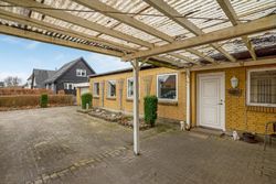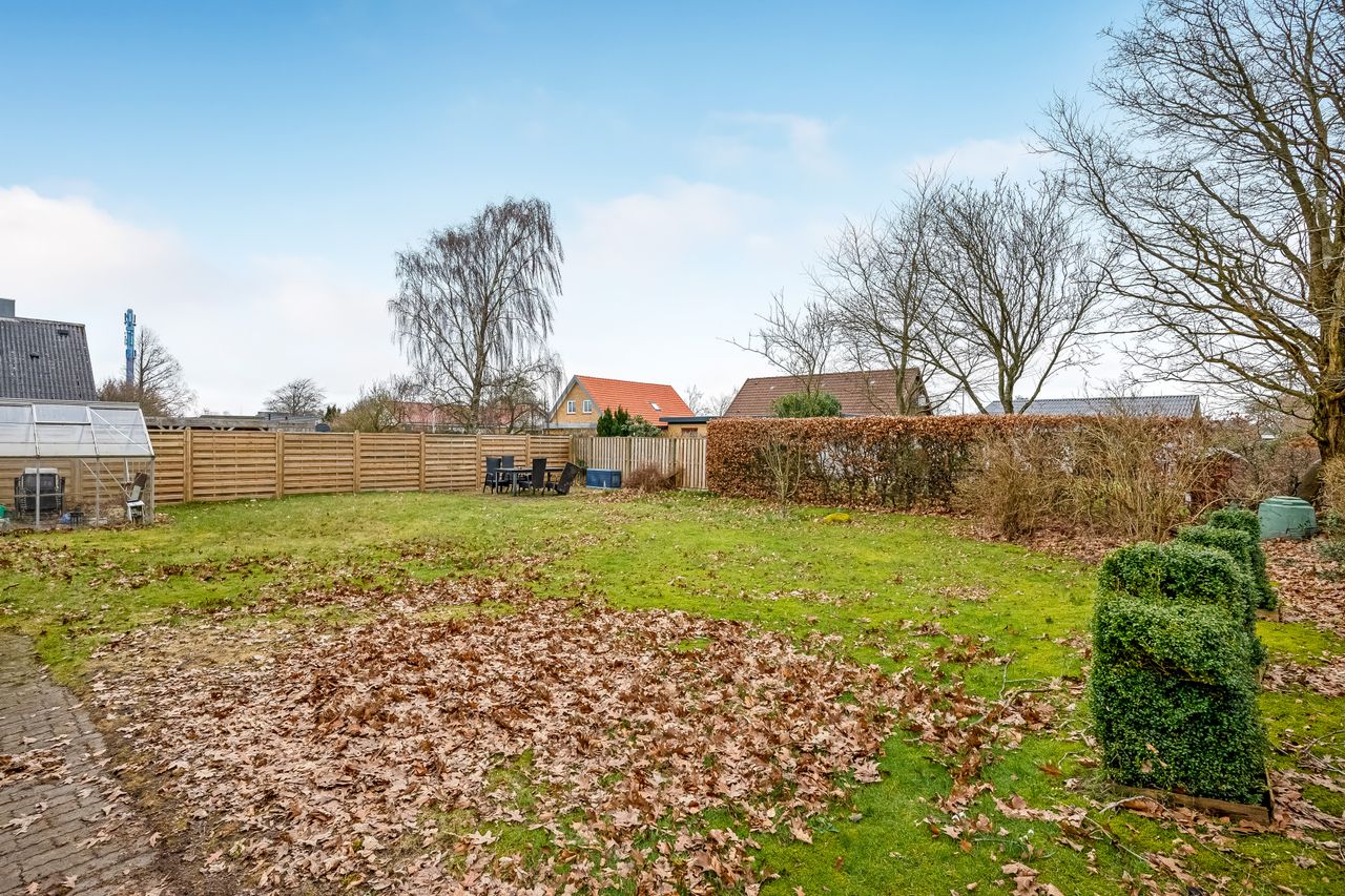 Indenfor finder du et spisekøkken, hvor der er plads til hele familien omkring bordet. Det funktionelle bryggers gør hverdagen lettere med ekstra opbevaringsplads og vaskefaciliteter. Den lyse stue indbyder til hyggelige stunder med familie og venner, mens badeværelset med niche tilbyder komfortabel daglig brug.