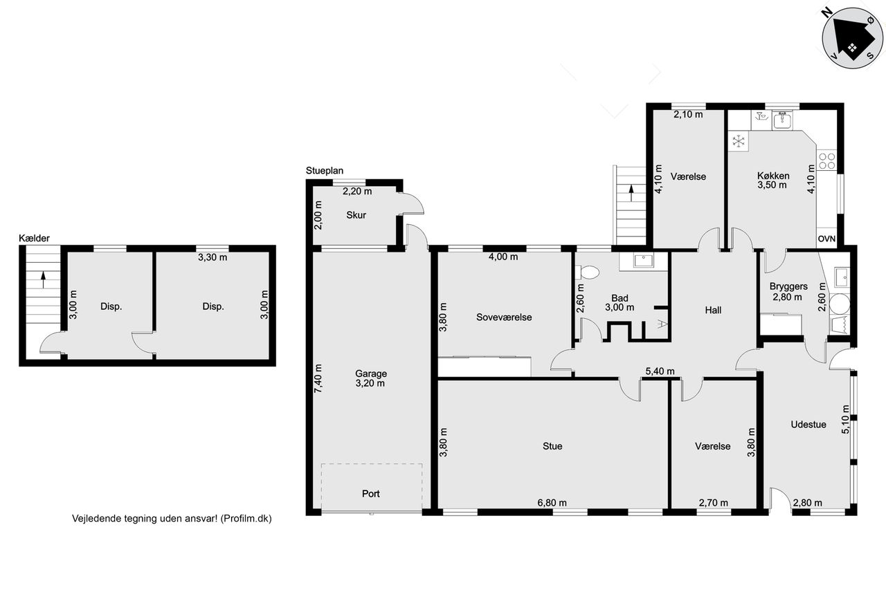 Villaen rummer to værelser samt et soveværelse, hvilket gør den ideel for både parret eller den lille familie. Udestuen giver en fantastisk mulighed for at nyde lidt udeliv året rundt, uanset vejret udenfor. Derudover er der også en garage samt en mindre kælder, som kan bruges til opbevaring eller værksted.